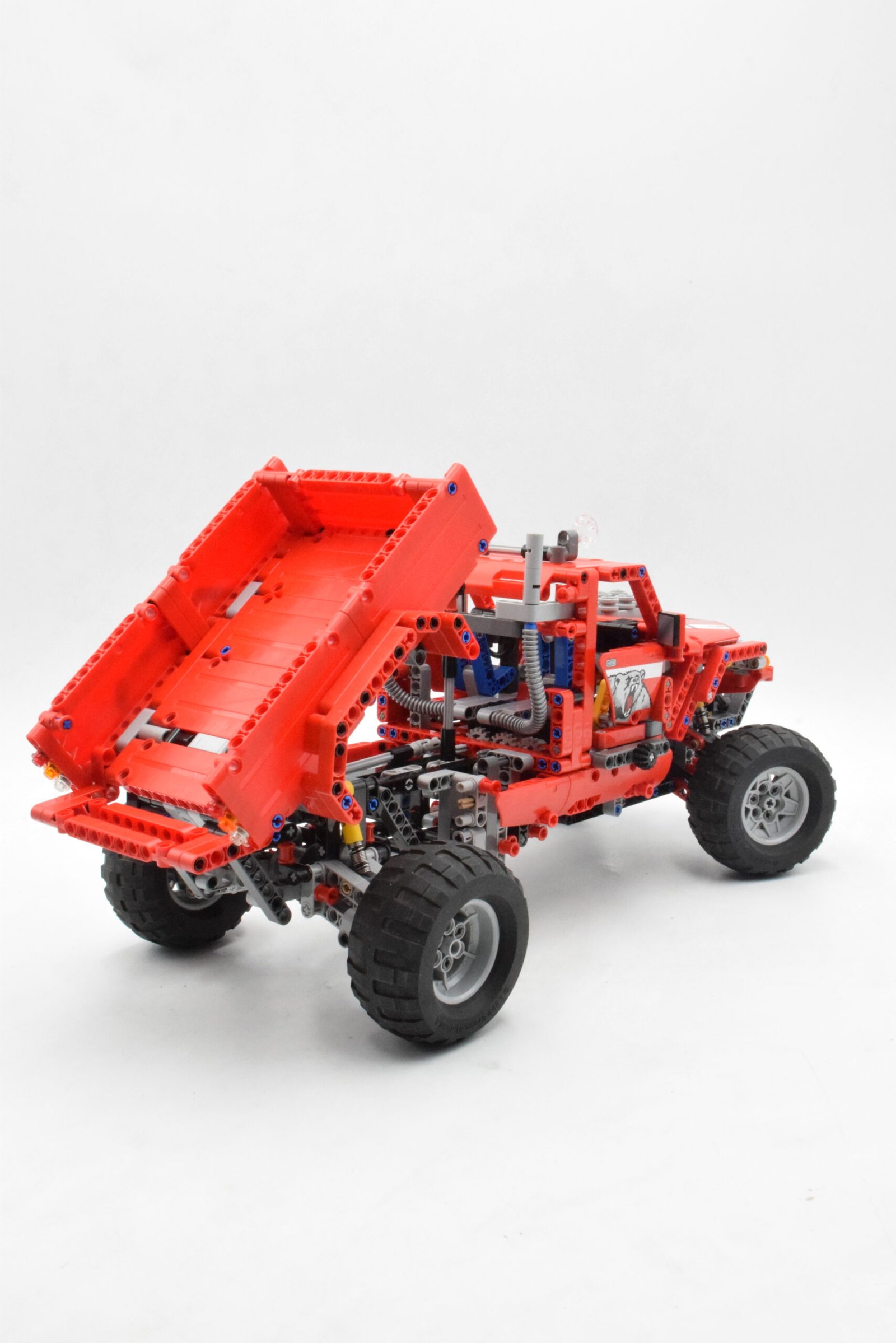 Composé de 1 063 pièces, ce pick-up 4×4 affiche un design musclé avec une carrosserie rouge éclatante, des phares fonctionnels, des portes ouvrantes, un capot relevable, et une plateforme arrière basculante. Le modèle intègre également une suspension indépendante sur les quatre roues, un treuil avant fonctionnel, et une direction réaliste, pour un maximum d’authenticité et de jouabilité.