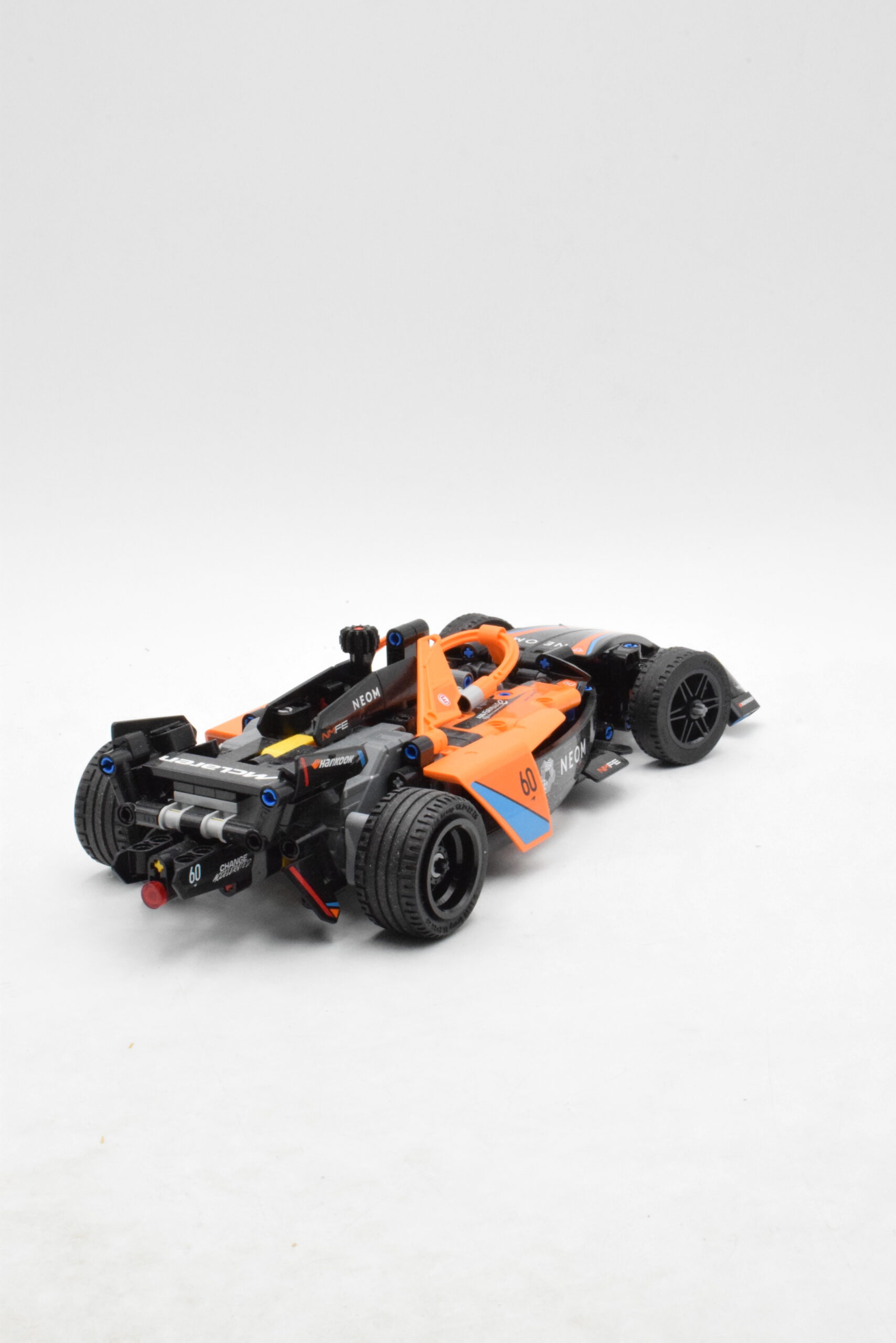 La voiture est équipée d’une double fonction pull-back : tirez le vaisseau vers l’arrière dans les rails et relâchez pour le faire filer. Elle comporte aussi une direction active pour orienter les roues et offrir une expérience réaliste de pilotage. Les détails visuels sont remarquables : livrée noire avec éléments orange néon qui rappellent le style visuel du team NEOM McLaren.