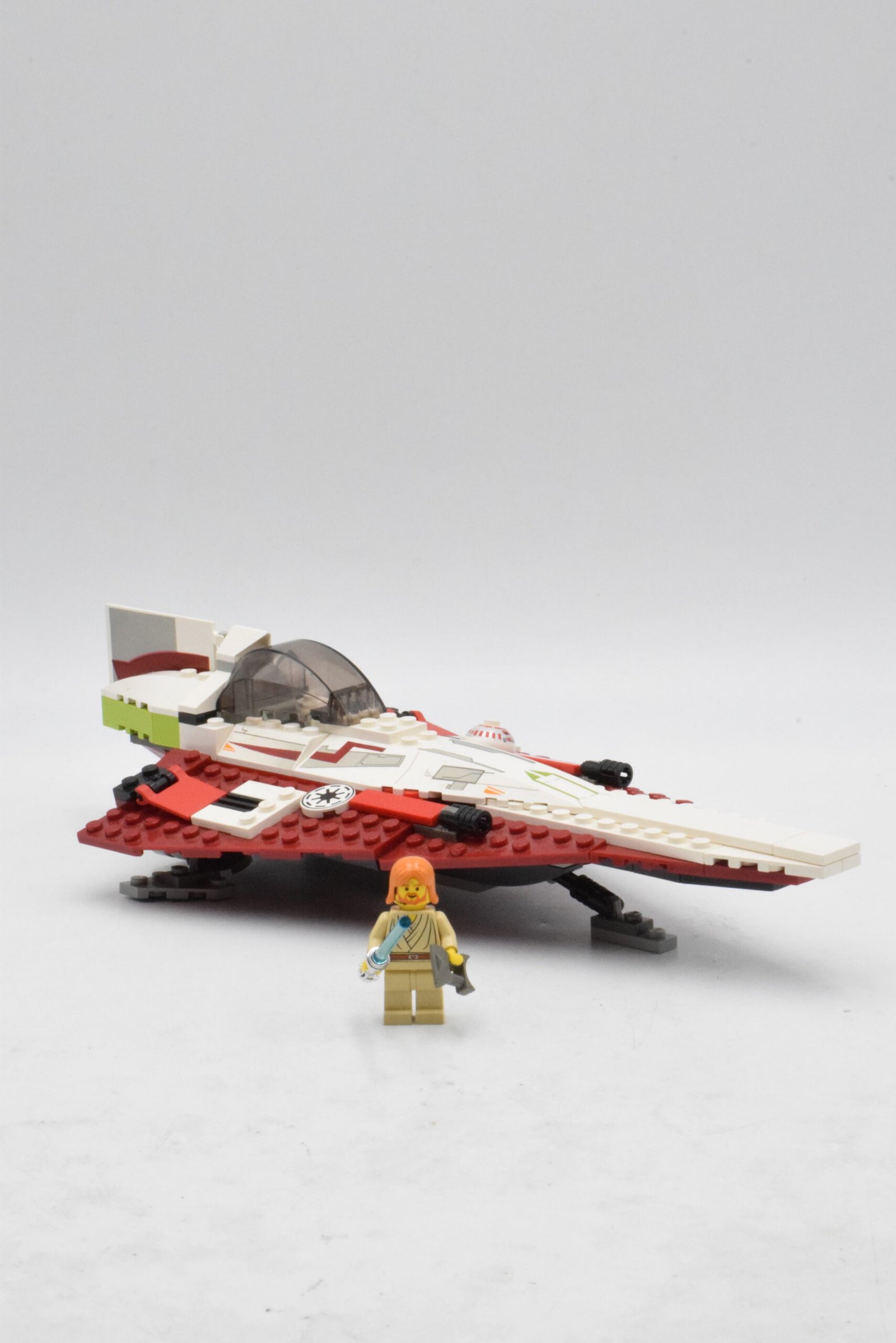 Le set inclut une minifigurine d’Obi-Wan Kenobi, dans sa tenue d’Episode II, équipée de son sabre laser bleu. Un élément R4-P17 intégré dans la carlingue représente l’astromech du Jedi, indispensable pour la navigation hyperspatiale. Bien que le set soit principalement axé sur l’exposition et le jeu imaginatif, il demeure un modèle culte pour les collectionneurs grâce à son charme rétro et son importance dans la chronologie Star Wars.