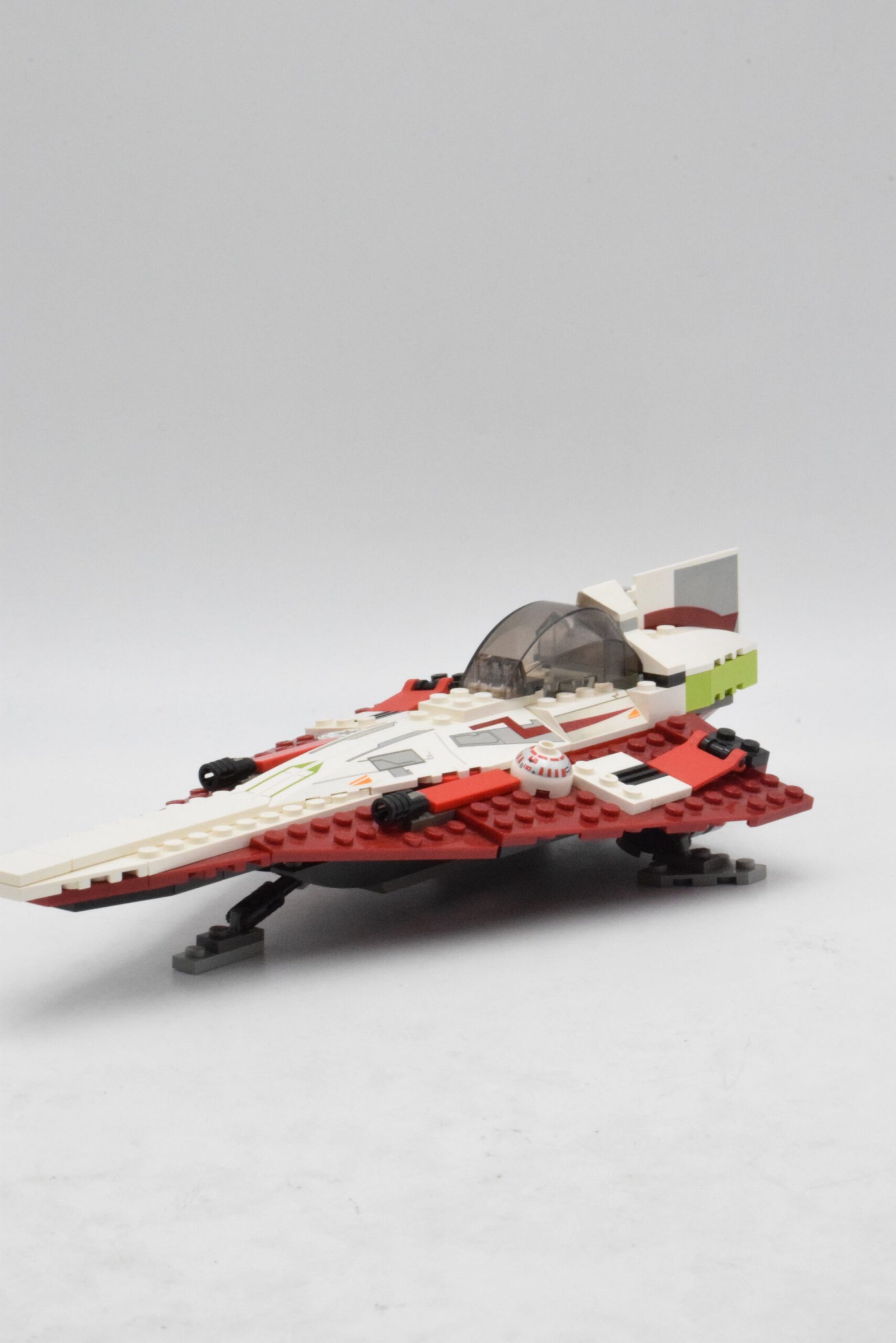Composé de 139 pièces, le set offre une construction simple mais fidèle, parfaitement représentative des débuts de la prélogie dans l’univers LEGO. Le Jedi Starfighter présente une silhouette élancée, une verrière ouvrante permettant d’installer Obi-Wan, ainsi qu’un design rouge et blanc inspiré de son apparence à l’écran. Le nez du vaisseau peut être retiré pour simuler le compartiment interne, tandis que les éléments latéraux imitent les ailes stabilisatrices caractéristiques du modèle Delta-7.