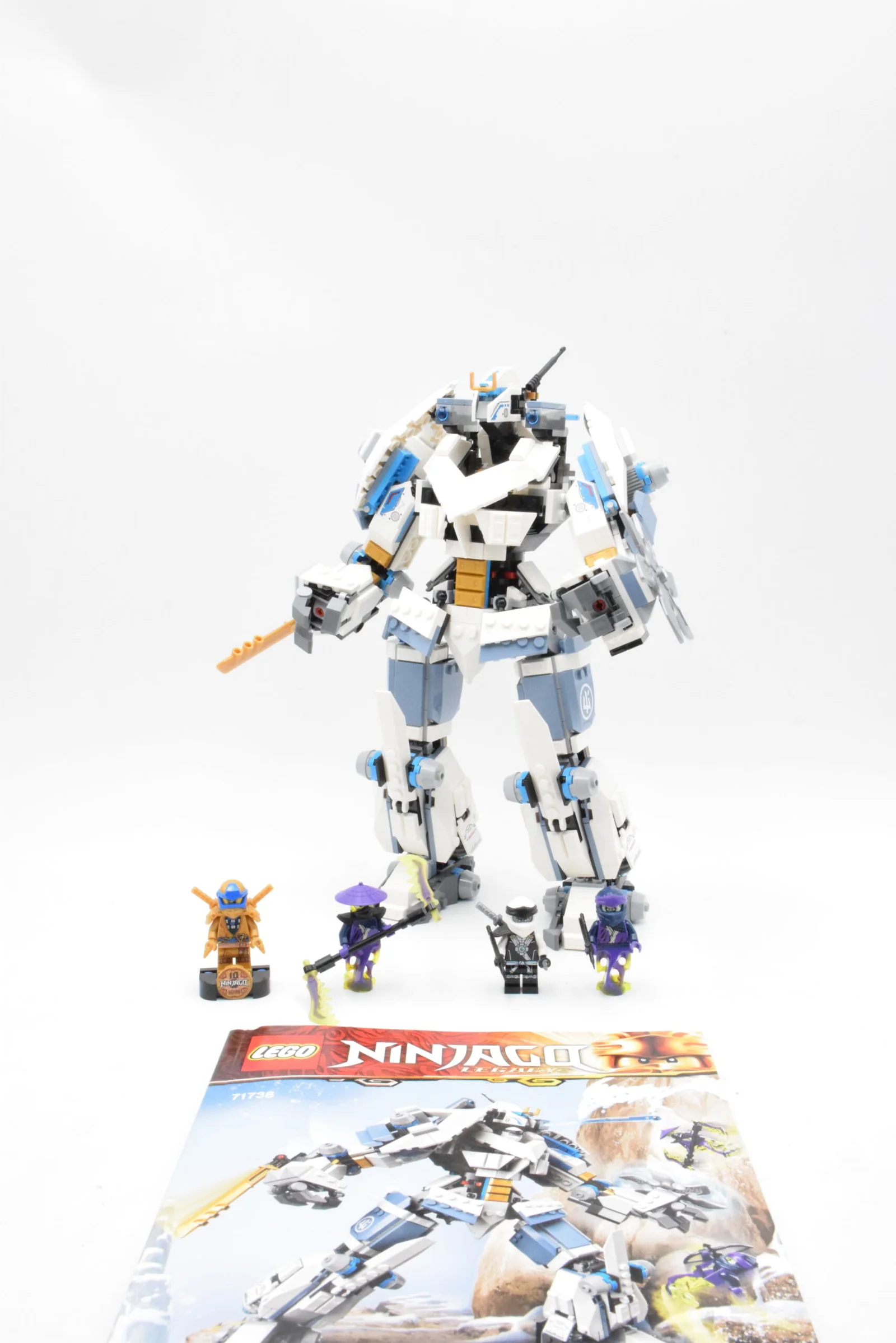Le robot Titan se distingue par sa grande taille, ses bras et jambes entièrement articulés et son cockpit intégré permettant d’installer Zane aux commandes. Les détails mécaniques, les couleurs emblématiques et les éléments transparents rappellent parfaitement le thème de la glace, signature du personnage. Les armes intégrées renforcent l’aspect offensif du mécha et permettent de recréer des scènes de combat dynamiques et immersives.