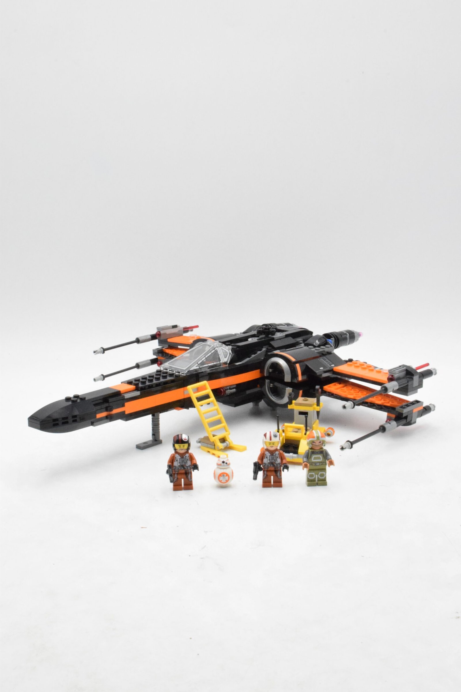 Sorti en 2015, ce set de 717 pièces propose une version élégante et fidèle du T-70 X-Wing Starfighter, avec son design noir et orange distinctif. Le vaisseau dispose d’ailes mobiles en position d’attaque X, d’un train d’atterrissage rétractable, d’un cockpit ouvrant pour accueillir Poe, et de canons à ressorts pour des batailles aériennes épiques.