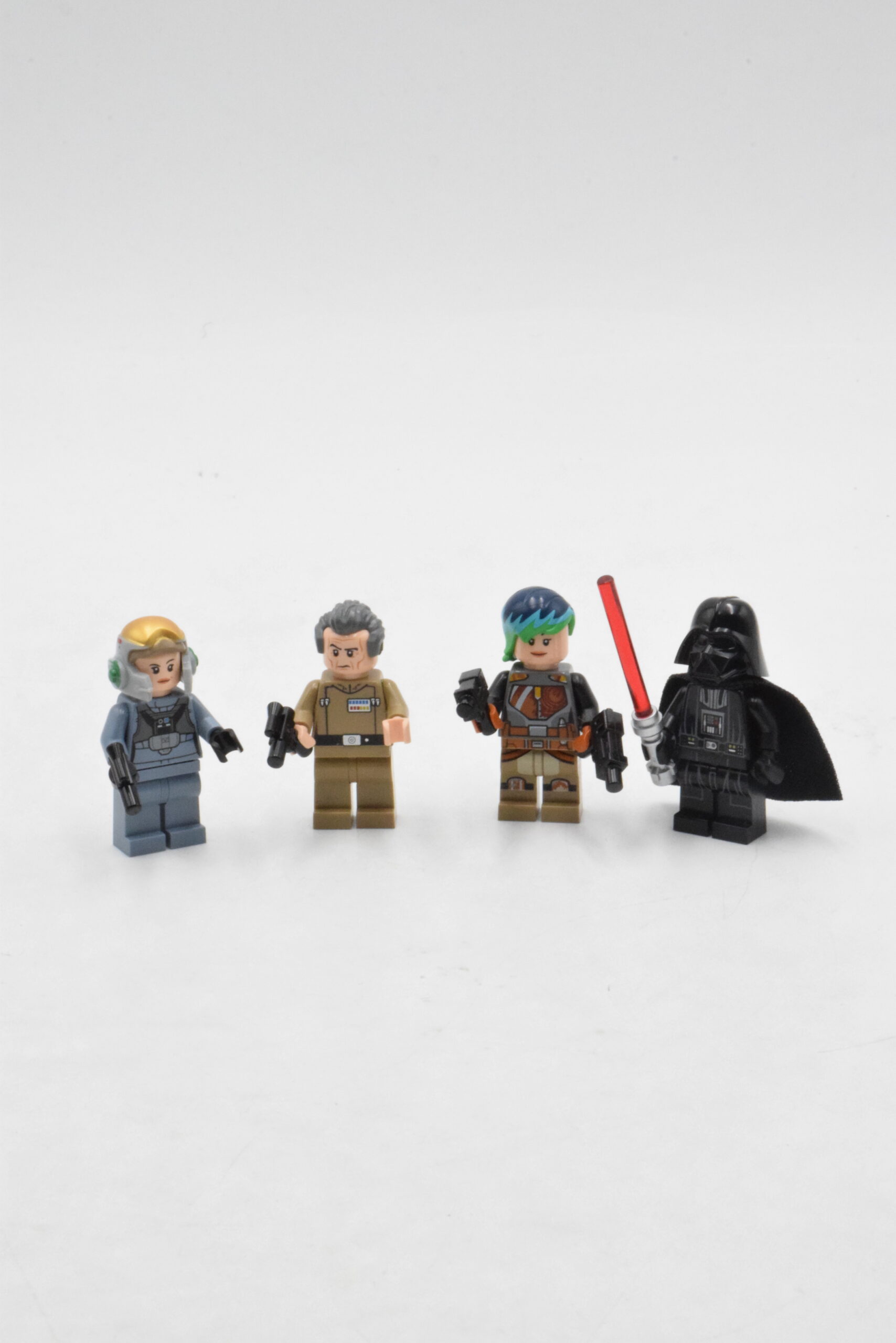 Le set comprend quatre minifigurines emblématiques : Dark Vador avec son sabre laser rouge, un pilote A-Wing, Sabine Wren et le Grand Moff Tarkin. Ensemble, ils permettent de recréer des affrontements épiques ou d’imaginer de nouvelles missions dans l’univers Star Wars Rebels.