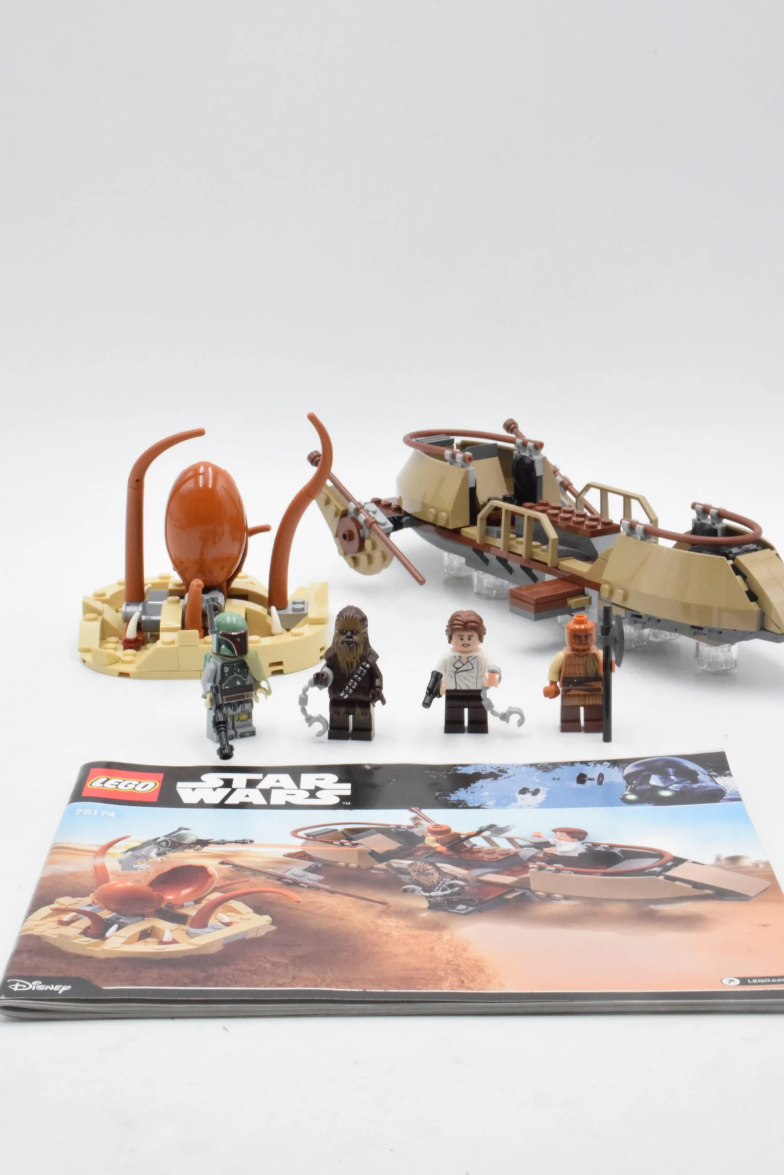 Le set inclut quatre figurines LEGO Star Wars : Luke Skywalker (Jedi), Han Solo, Chewbacca et un garde de Jabba. Chacune est équipée d’armes et d’accessoires emblématiques, comme le sabre laser vert de Luke ou le blaster de Han.