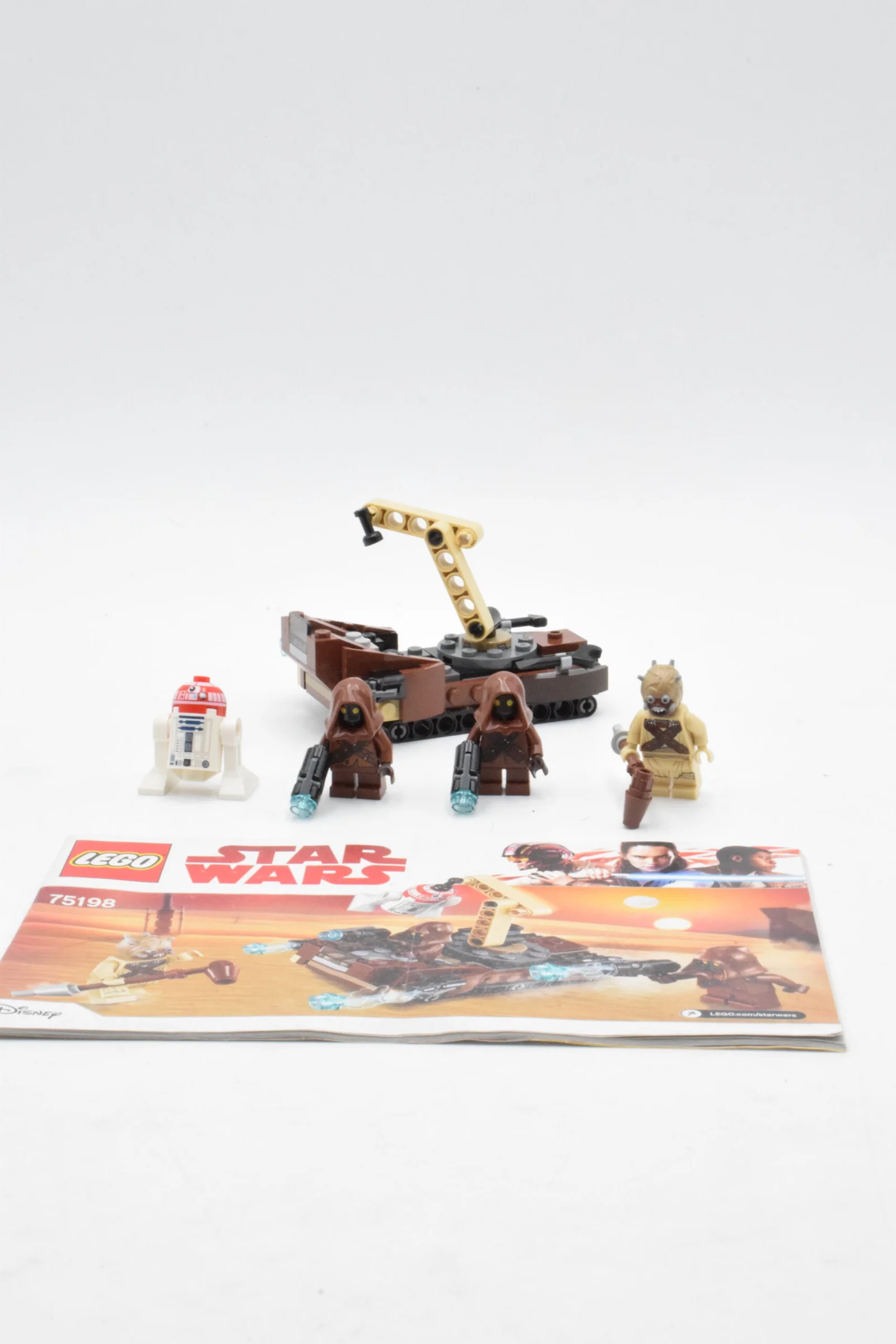 Le set comprend 97 pièces, dont un speeder terrestre armé de lance-tenons et un poste de tir mobile. Il inclut 4 minifigurines : un Tusken Raider, un officier Jawas, un astromech R5-series et un soldat des forces de la République. L’association de ces personnages inhabituels permet d’imaginer des affrontements uniques et créatifs dans les dunes de sable de Tatooine.