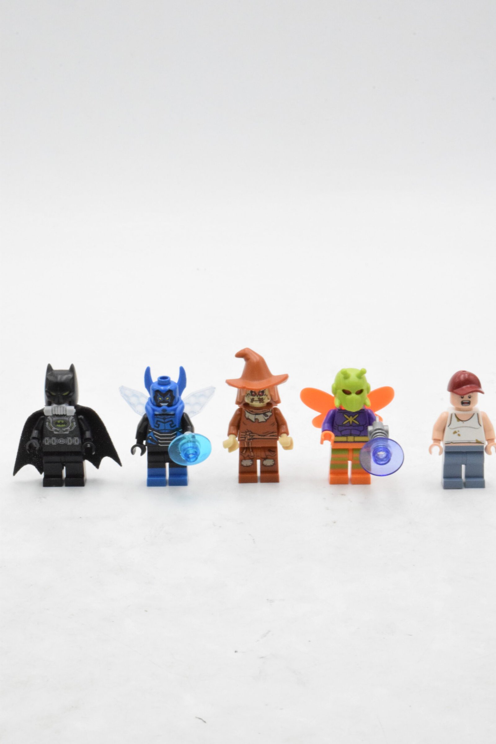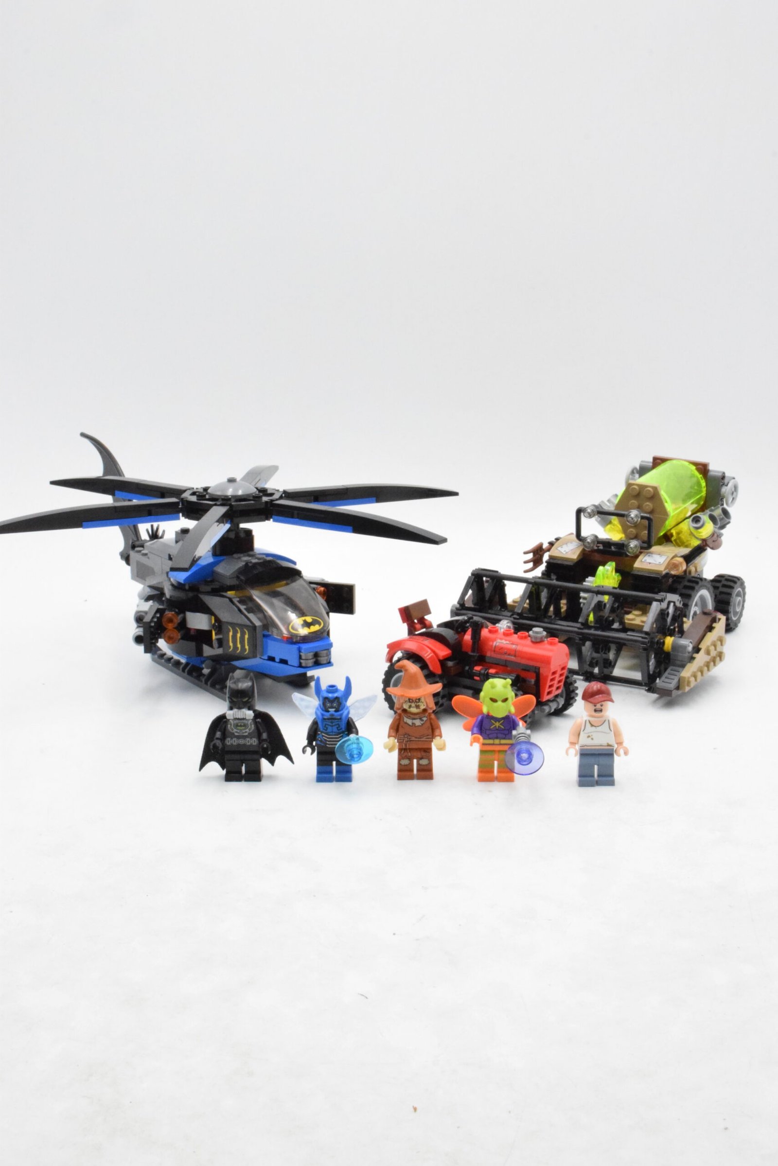 L’élément central du set est le moissonneur modifié de l’Épouvantail, une machine agricole détournée en véhicule de terreur. Le design associe roues massives, scies rotatives, réservoirs toxiques et cabine ouverte, évoquant parfaitement les créations dangereuses du super-vilain. Ses couleurs sombres et ses accessoires orange accentuent la thématique de la peur et du poison.