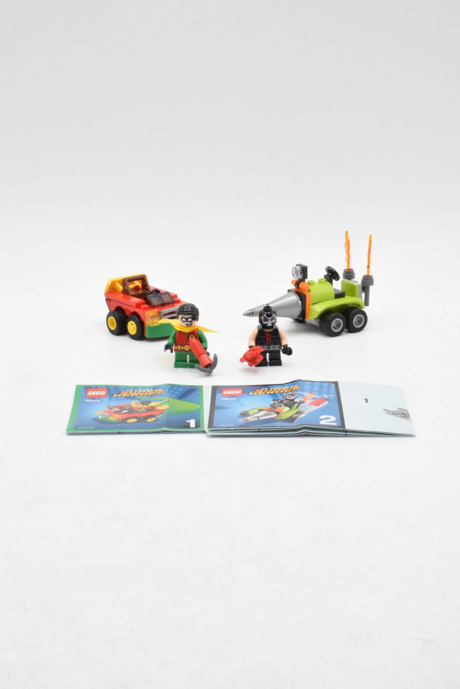 Le set comprend deux véhicules stylisés : la micro-mobile rouge de Robin, avec des détails jaunes et un énorme logo « R » à l’avant, et le micro-tank gris et vert de Bane, doté de roues surdimensionnées pour une allure menaçante. Chaque véhicule est parfaitement adapté aux figurines et est équipé de roues solides pour un jeu fluide sur toutes surfaces. Leur style exagéré, propre à la gamme Mighty Micros, ajoute une touche unique à toute collection LEGO.
