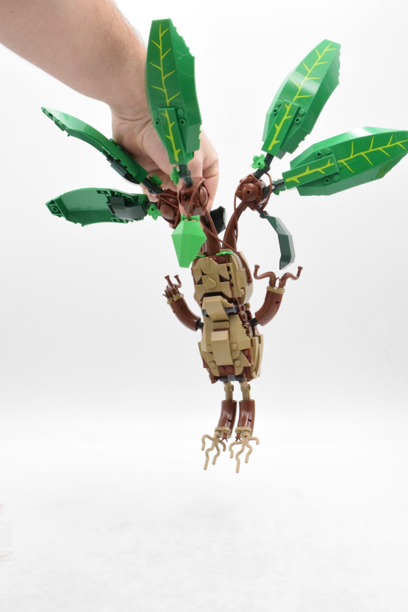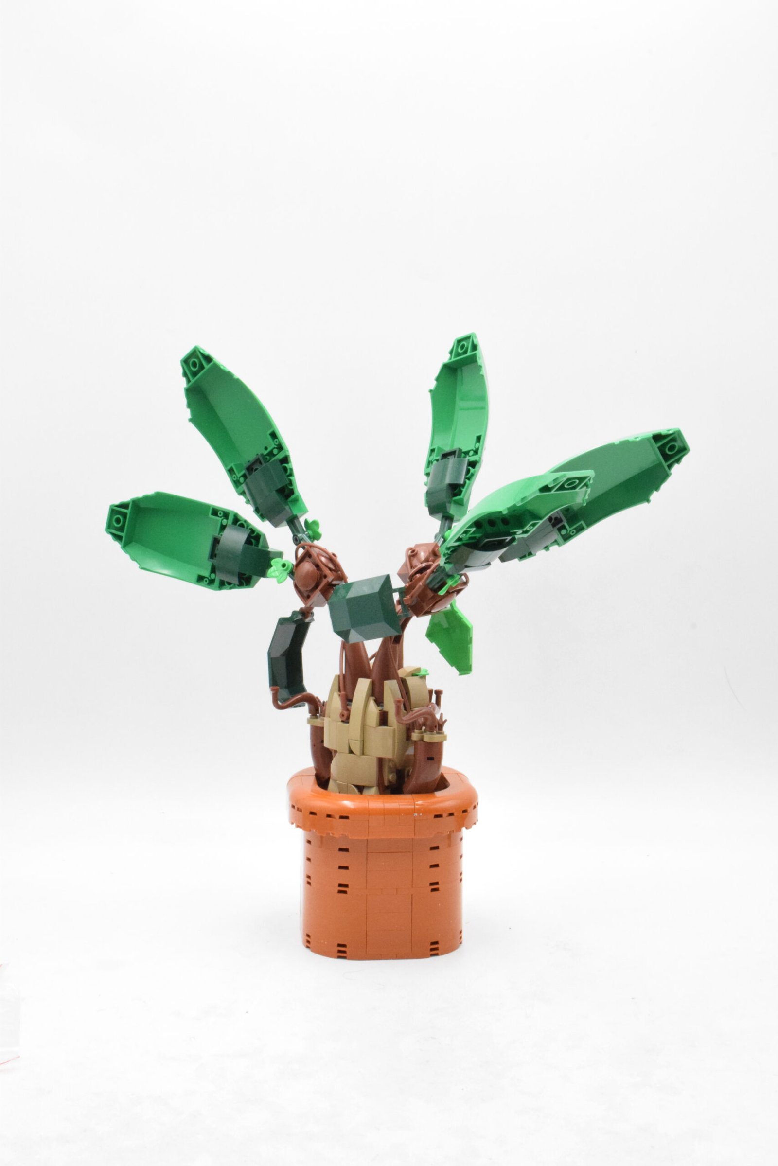 La mandragore est représentée avec un haut niveau de détail, incluant ses feuilles texturées, ses racines travaillées et son expression caractéristique. Le modèle est installé dans un pot de fleur à construire, fidèle à ceux utilisés lors des leçons d’herbologie. Les différentes parties sont articulées, permettant de varier les positions et de renforcer l’aspect vivant de la plante. Cette conception soignée offre un excellent équilibre entre réalisme, créativité et esthétique LEGO.