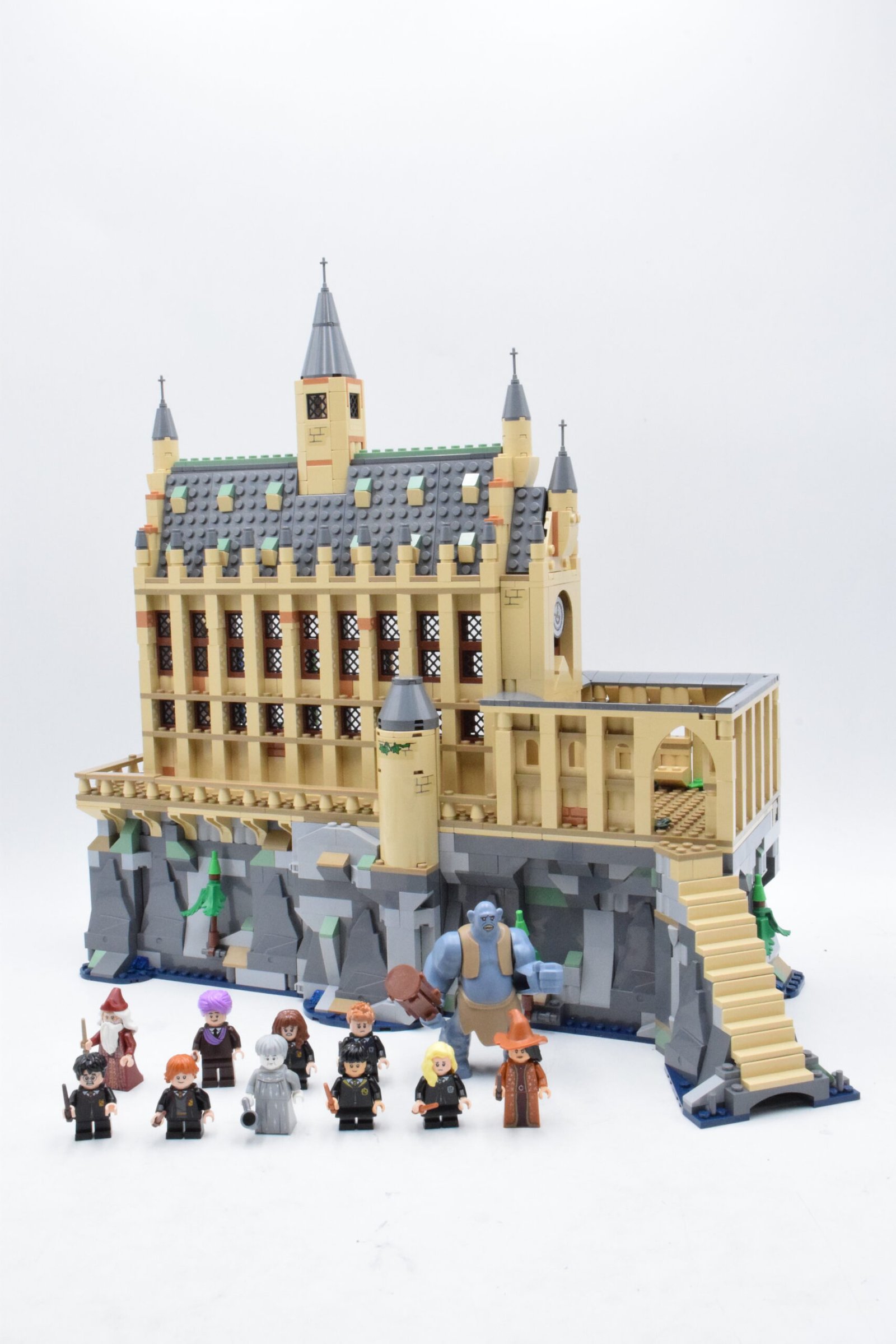 Composé de 1 732 pièces, ce set présente une Grande Salle revisitée, dotée de hautes fenêtres gothiques, de bannières interchangeables selon les maisons, et d’une disposition qui rappelle les célèbres banquets du château. La partie extérieure inclut également une tour attenante, un quai d’arrivée au bord du lac et des éléments architecturaux fidèles au film, permettant d’exposer le modèle sous plusieurs angles.