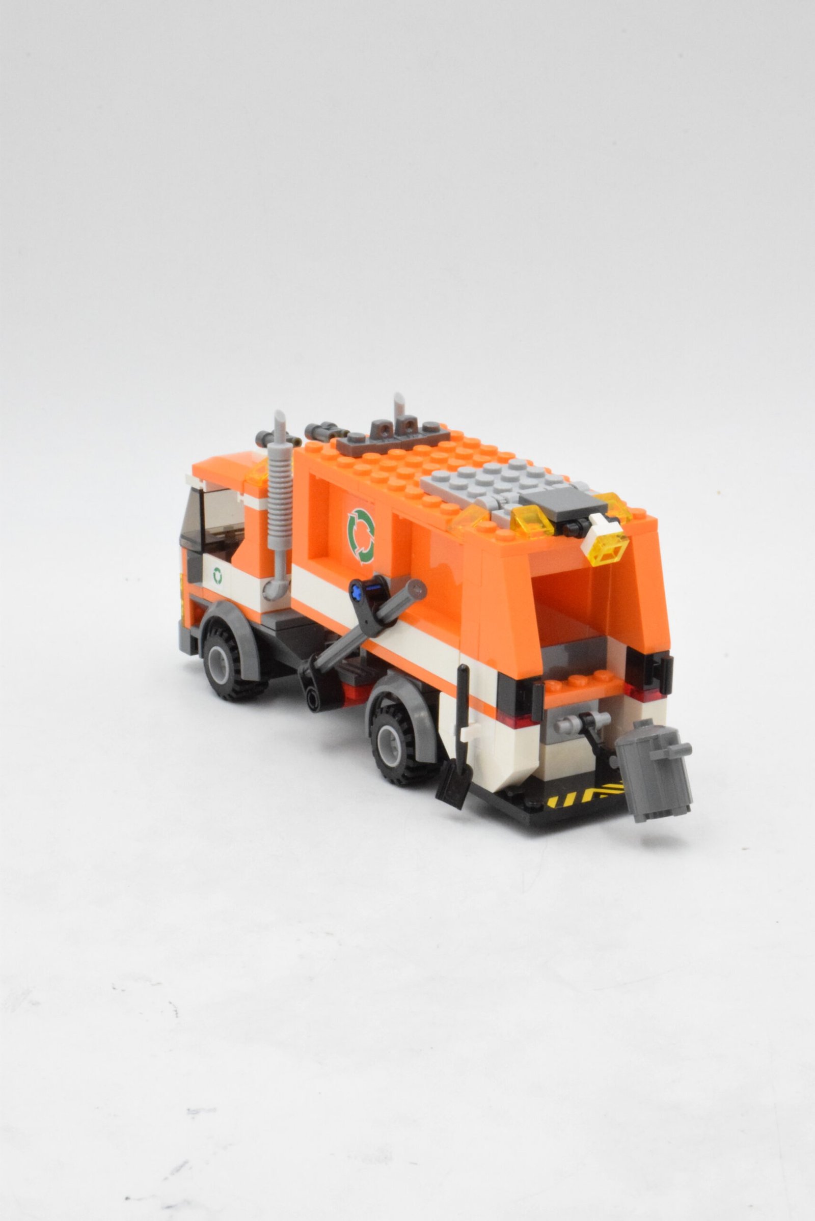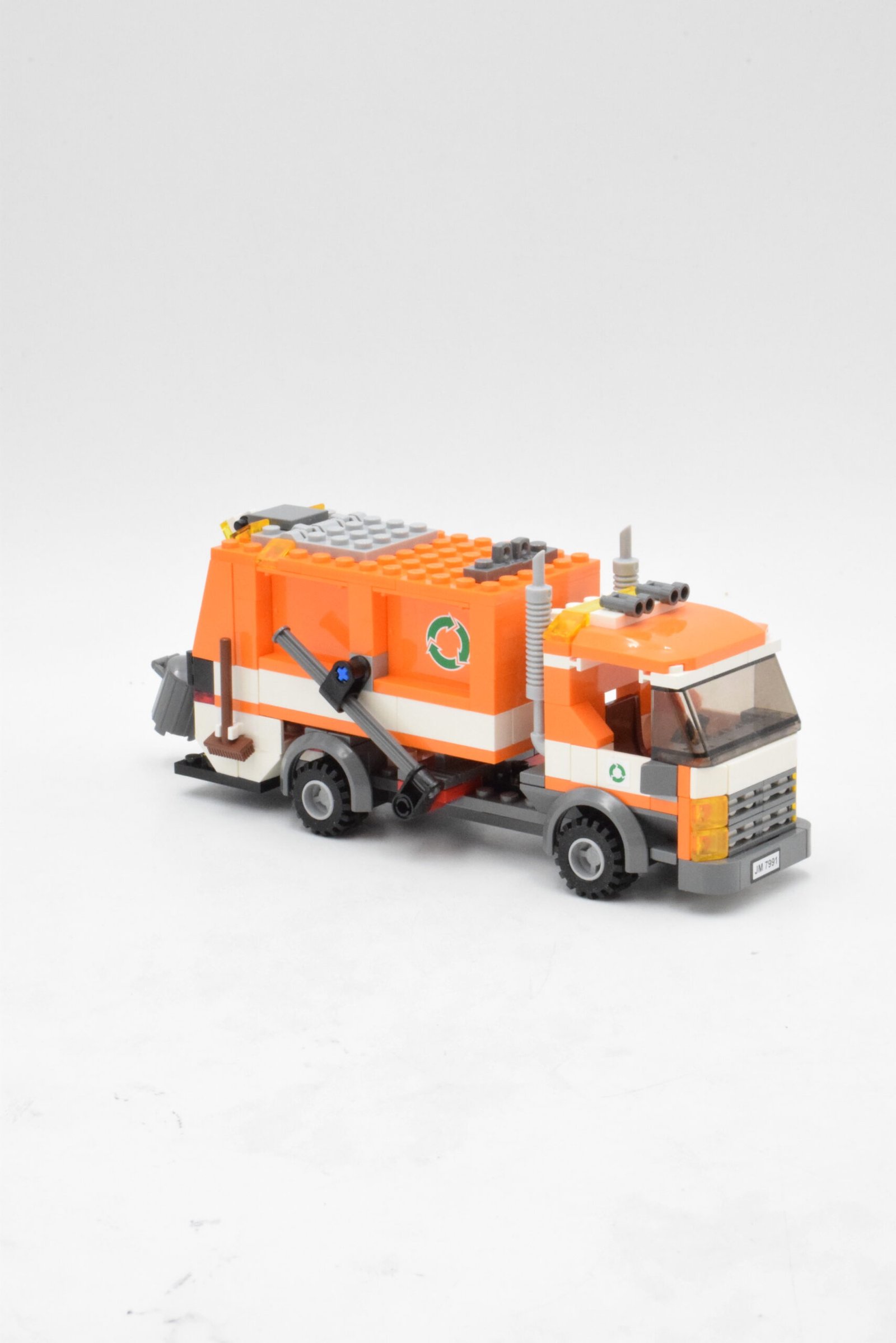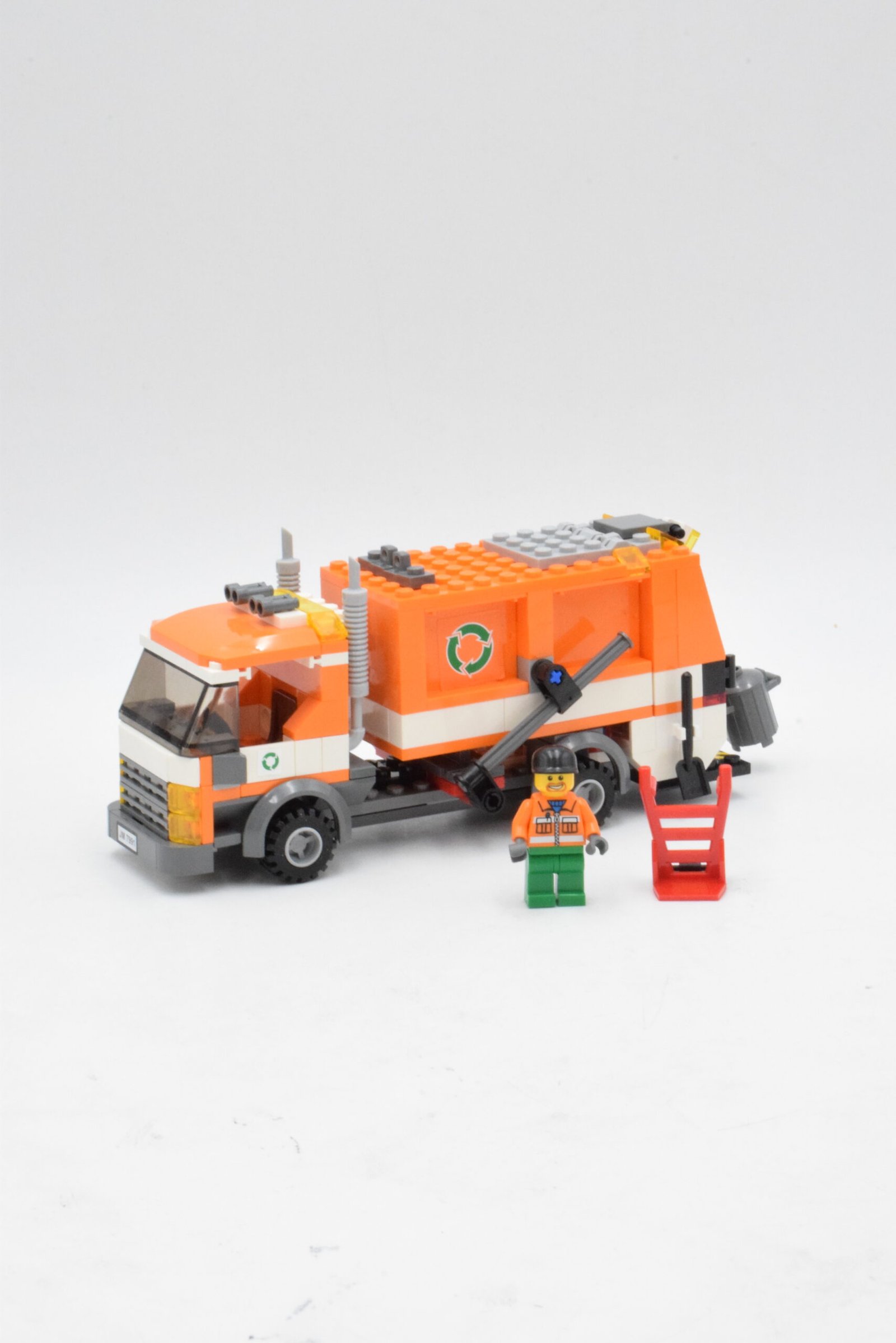 Composé de 208 pièces, le modèle présente un camion-benne vert et blanc doté d’un système de bascule arrière fonctionnel pour vider les déchets, ainsi que d’une cabine ouvrante et de poubelles à roulettes. Le design fidèle au style LEGO City de l’époque en fait un véhicule solide, coloré et parfait pour compléter une scène urbaine animée.