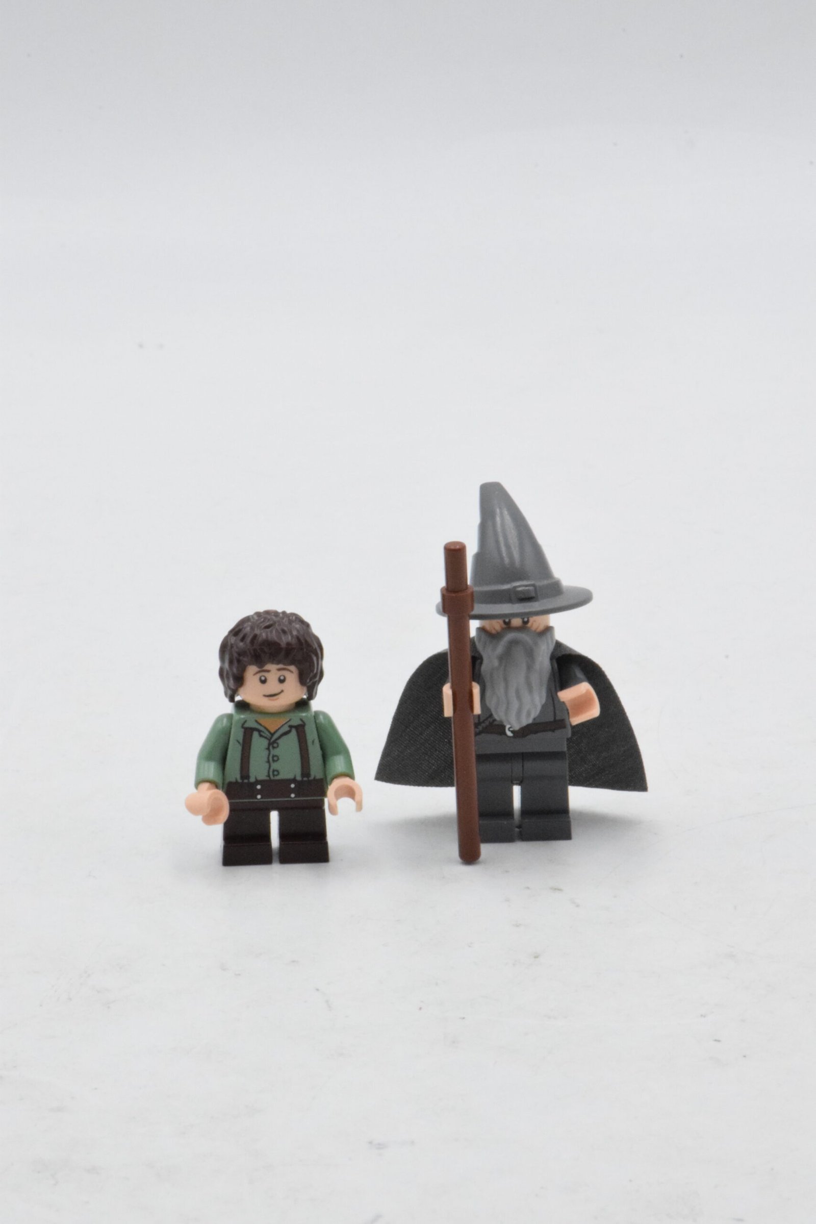 Le set inclut quatre minifigurines très appréciées : Gandalf le Gris, avec son bâton et son chapeau pointu ; Frodon Sacquet ; Sam Gamegie ; et Merry. Les impressions soignées des visages et des tenues reflètent fidèlement les personnages du film et permettent de recréer des scènes conviviales ou d’imaginer de nouvelles aventures en Comté.