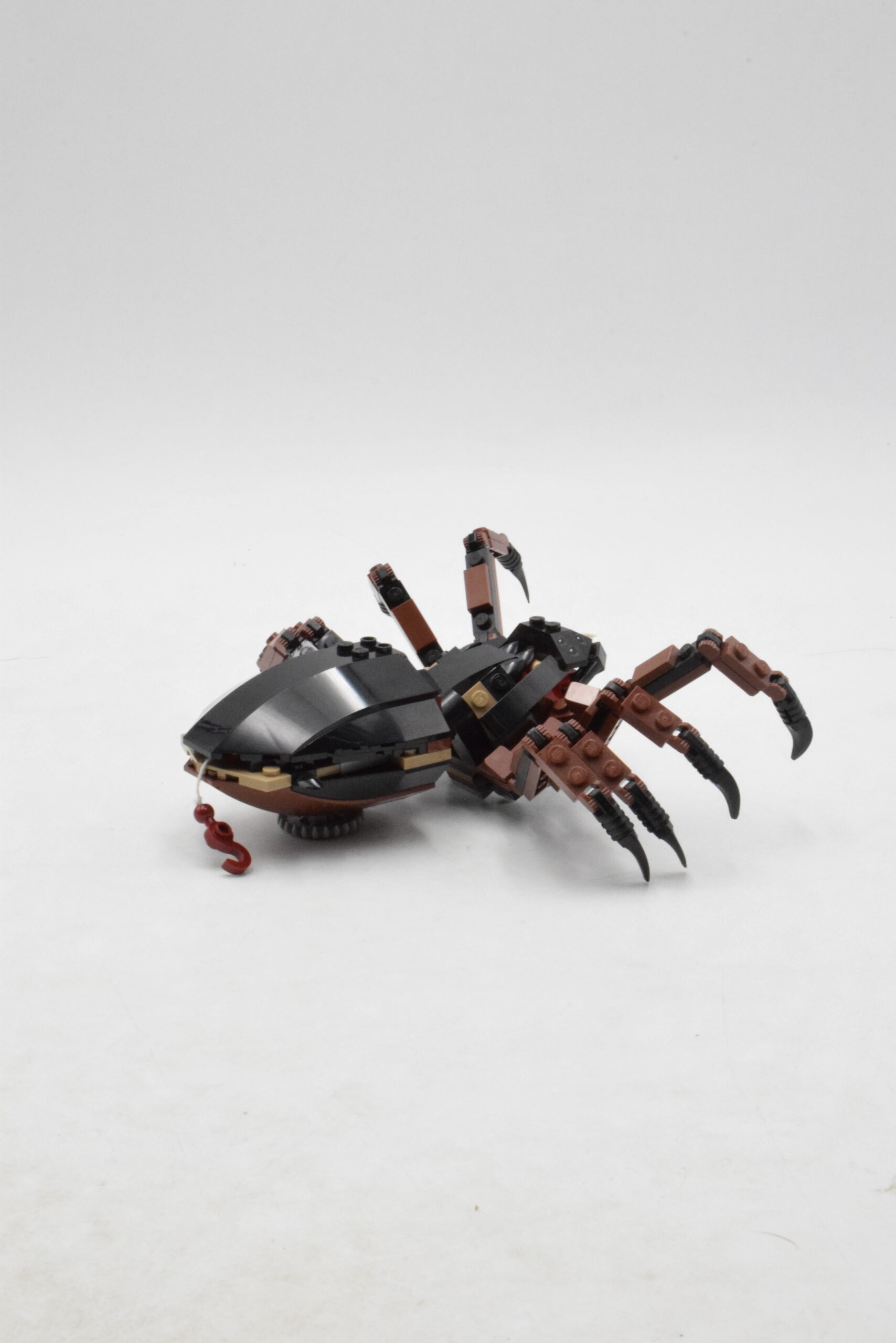 Avec ses circa 300 pièces, ce coffret propose une construction immersive qui recrée l’ambiance inquiétante des montagnes de Mordor. La figurine articulée d’Arachne, avec ses grandes pattes mobiles et ses crocs menaçants, constitue la pièce maîtresse du set et permet de recréer la scène dramatique où elle piège Frodon dans sa toile.