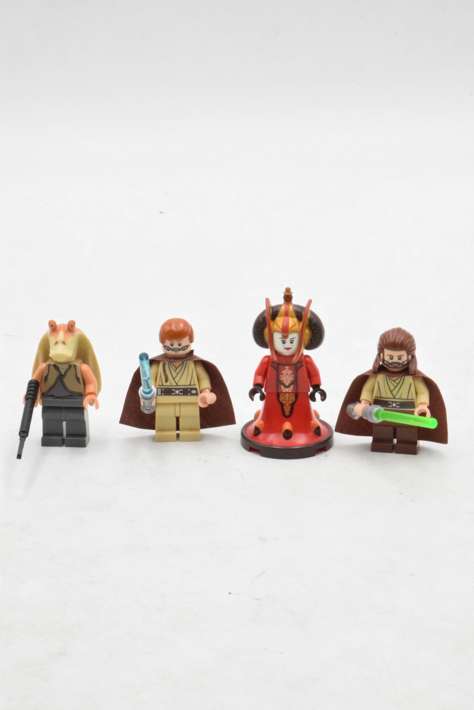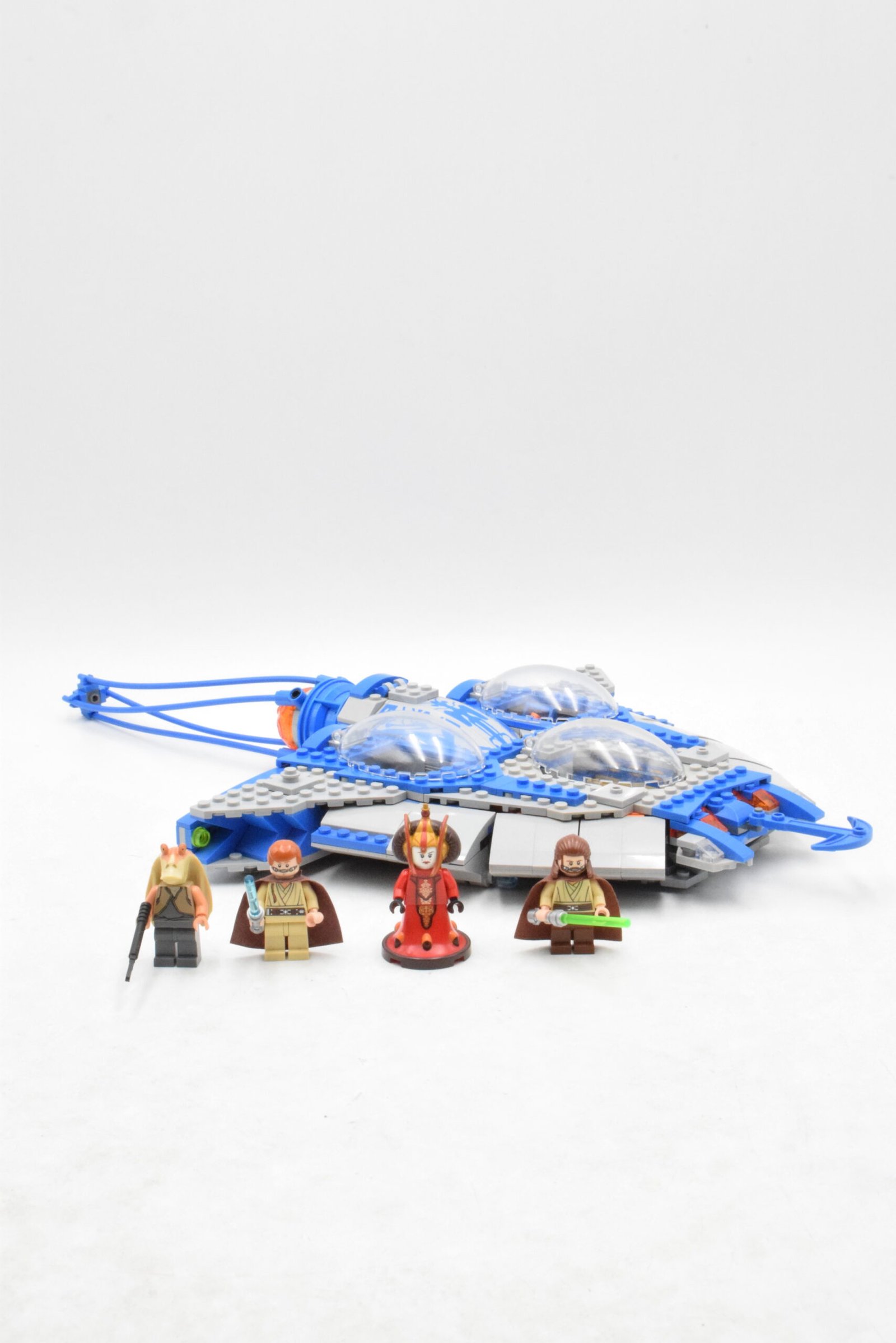 Le set inclut Jar Jar Binks, Obi-Wan Kenobi et Qui-Gon Jinn, tous équipés de tenues adaptées à l’environnement aquatique. Les Jedi sont accompagnés de leurs sabres laser, permettant de recréer des moments clés du film ou d’imaginer de nouvelles aventures sous-marines.