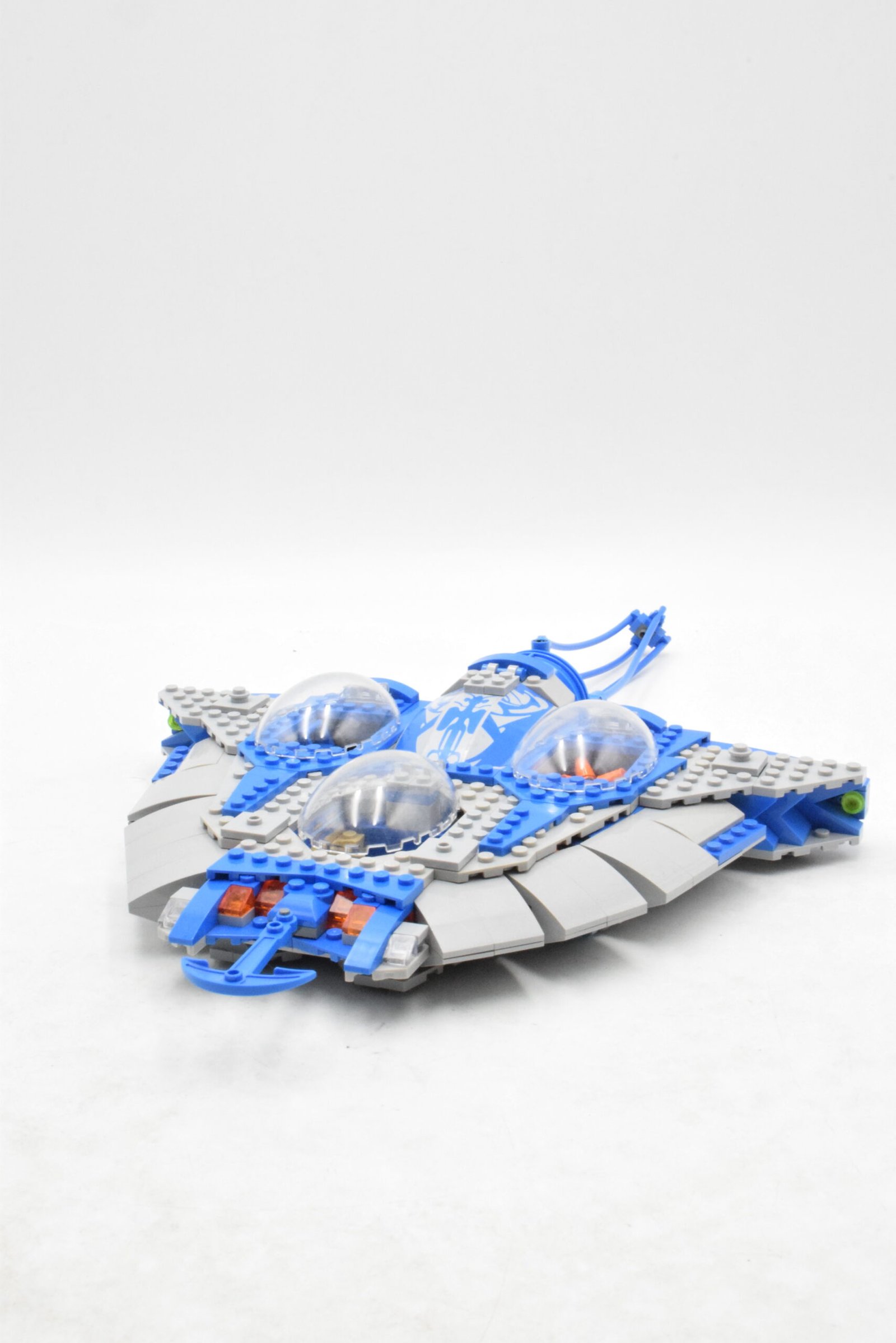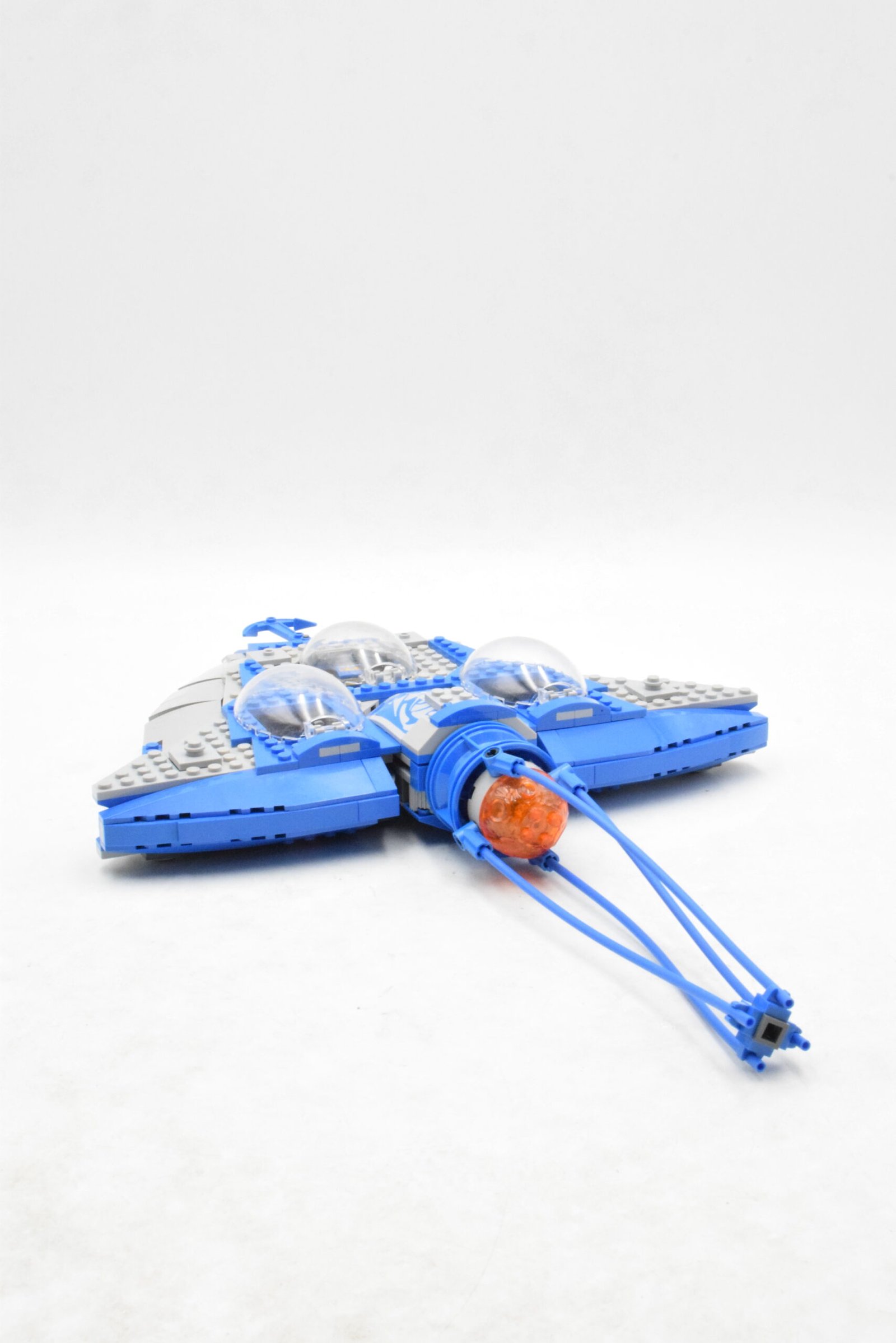 Le sous-marin Gungan adopte une forme organique fidèle à l’esthétique de la civilisation Gungan. Sa coque arrondie et ses couleurs sable, marron et vert rappellent les matériaux naturels utilisés par ce peuple amphibie. Le cockpit transparent permet d’installer les minifigurines, tandis que les propulseurs arrière et les ailerons latéraux renforcent l’illusion de déplacement sous-marin. Le modèle intègre également des missiles à tenons, ajoutant une dimension d’action aux scènes d’exploration.