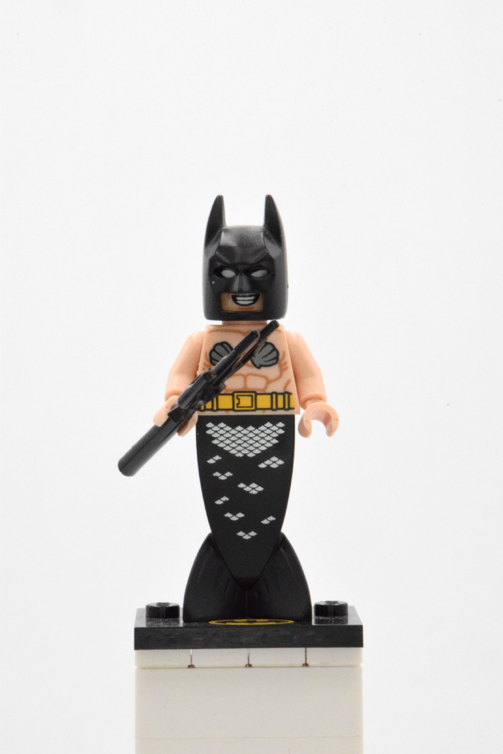 La minifigurine Mermaid Batman, issue de The LEGO Batman Movie Collectible Minifigures Series 2, est l’une des variantes les plus absurdes, décalées et irrésistiblement drôles du Chevalier Noir. Mêlant l’austérité légendaire de Batman à l’esthétique aquatique d’une sirène, cette minifig incarne parfaitement l’humour délirant et le ton parodique du film.