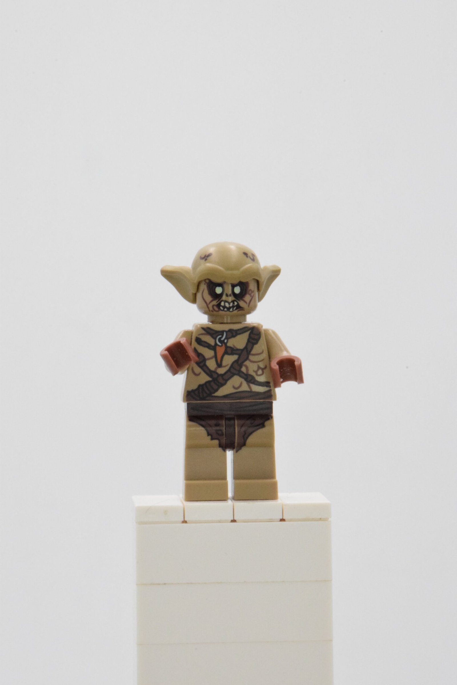 Sortie en 2012 dans le set LEGO 79010 – The Goblin King Battle, cette version du Goblin Soldier se distingue par sa peau beige grisâtre, son torse imprimé d’os et de cicatrices, et son visage grimaçant marqué par la souffrance et la cruauté. Son apparence asymétrique et ses détails organiques recréent à la perfection l’esthétique des gobelins du film.