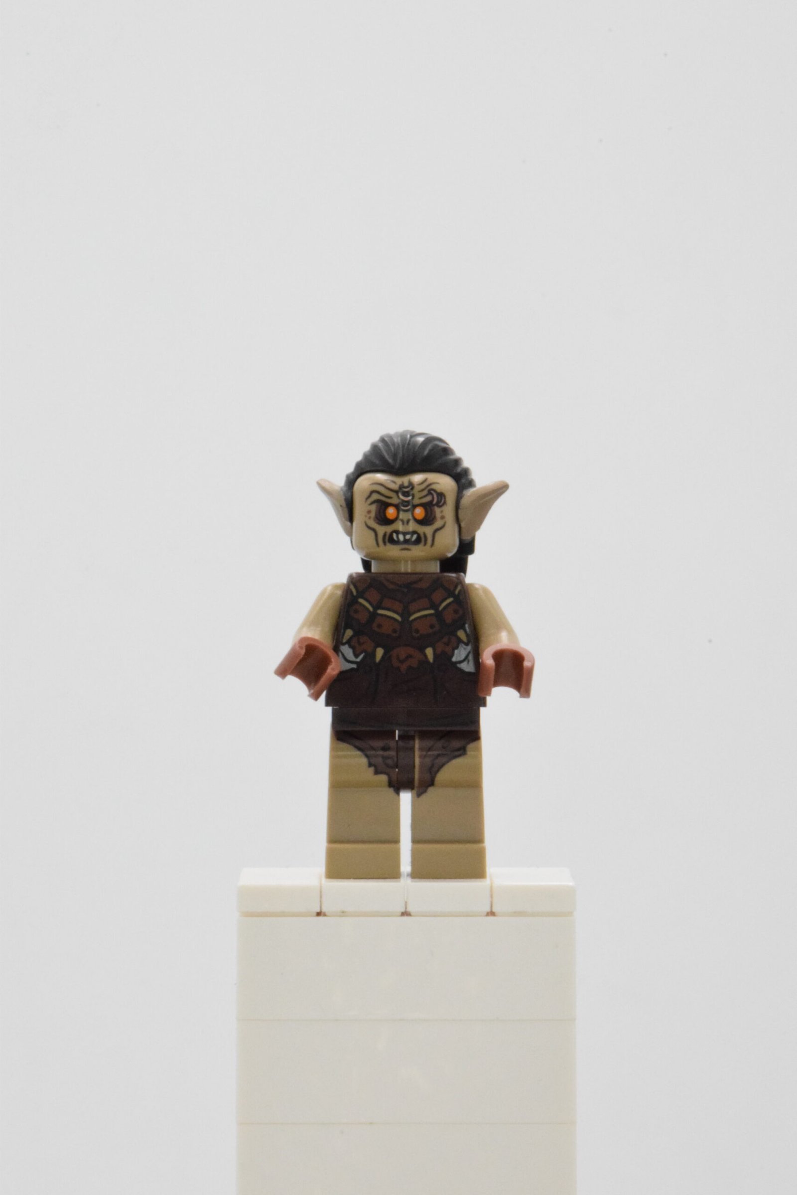 Sortie en 2013 dans les sets LEGO 79002 – Attack of the Wargs et LEGO 79014 – La Bataille de Dol Guldur, cette figurine se distingue par son torse imprimé de cicatrices et d’armure usée, son visage féroce marqué de peinture de guerre, et sa peau brun sombre typique des orques chasseurs.