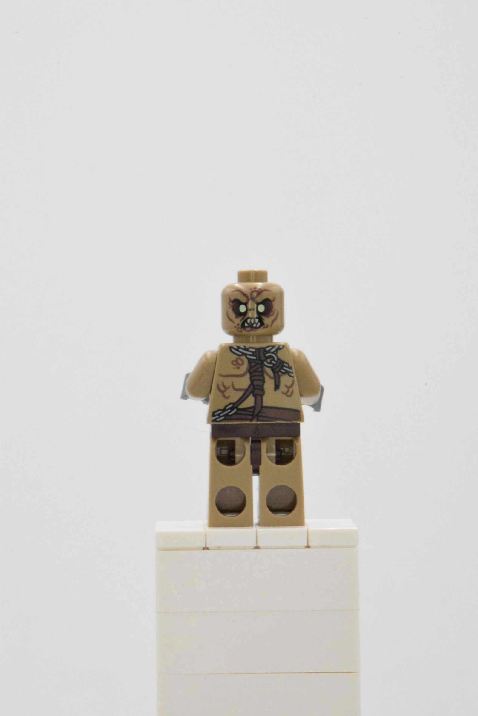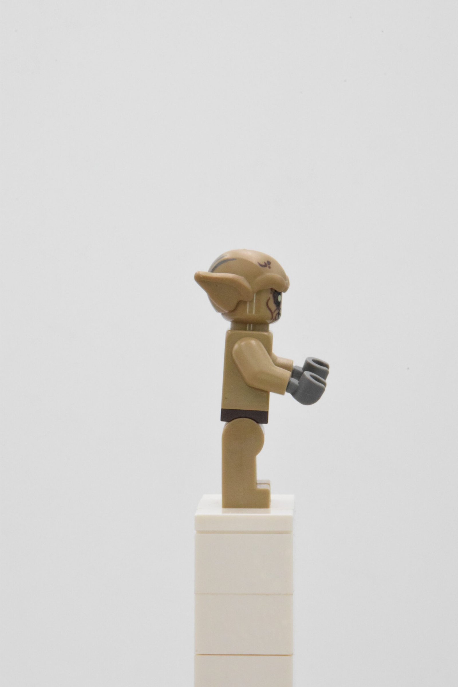 Sortie en 2012 dans le set LEGO 79010 – The Goblin King Battle, cette version du Goblin Soldier se distingue par sa peau beige pâle, son torse imprimé d’os, de blessures et de lambeaux de tissu, et son visage effrayant orné d’yeux jaunes et de dents acérées. Les détails fins de ses cicatrices et de son torse décharné soulignent parfaitement le style glauque et corrompu de ces créatures.