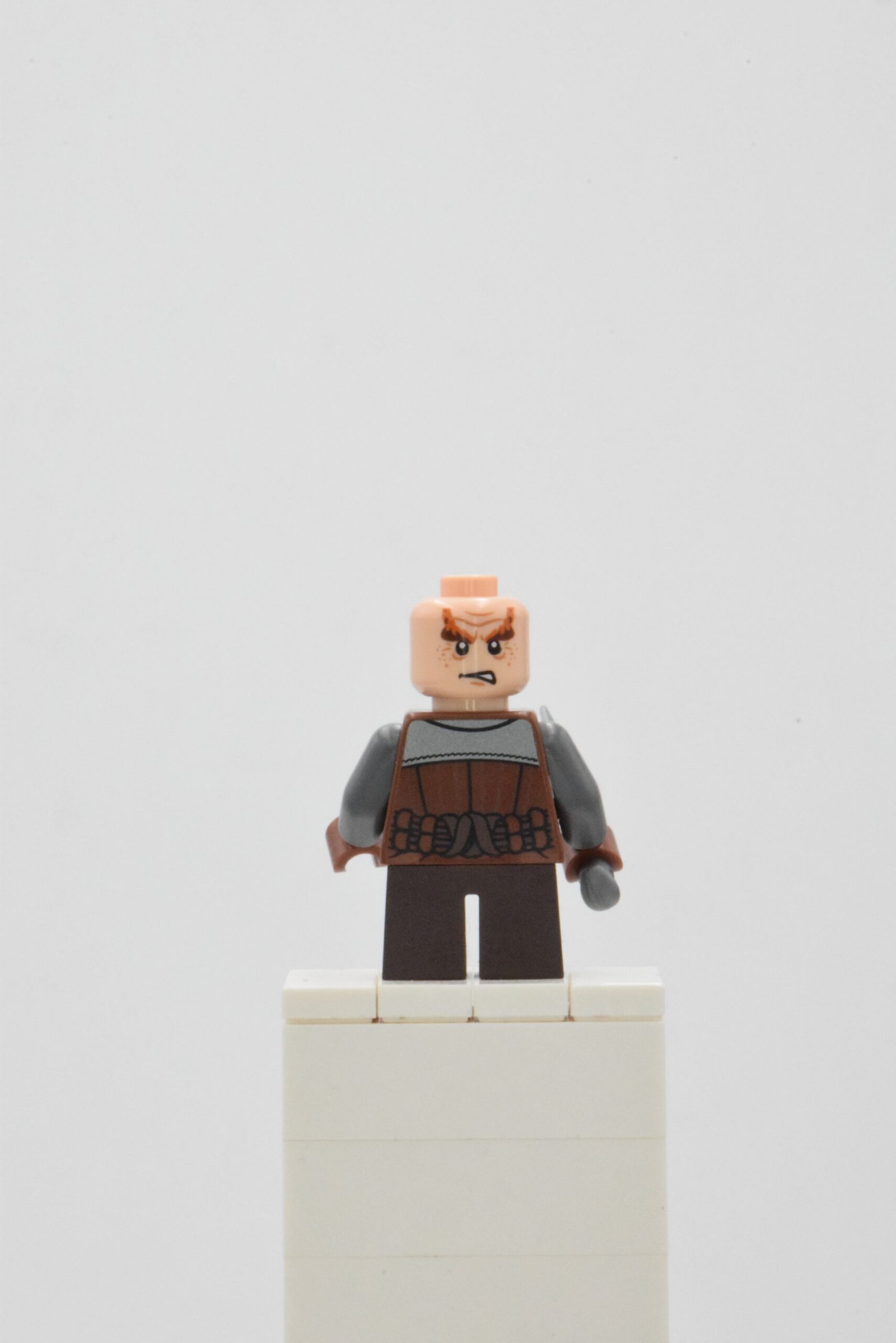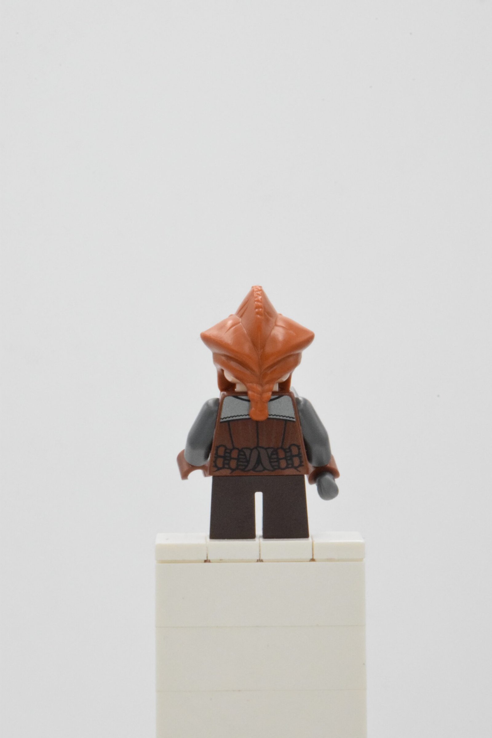Sortie en 2012 dans le set LEGO 79003 – An Unexpected Gathering, cette version de Nori arbore une tenue marron et violet foncé richement imprimée, agrémentée de détails dorés et de motifs géométriques rappelant le style nain. Sa chevelure et barbe rousses moulées en une seule pièce, formant une étoile tridimensionnelle, sont l’une des créations les plus originales de la gamme LEGO The Hobbit.