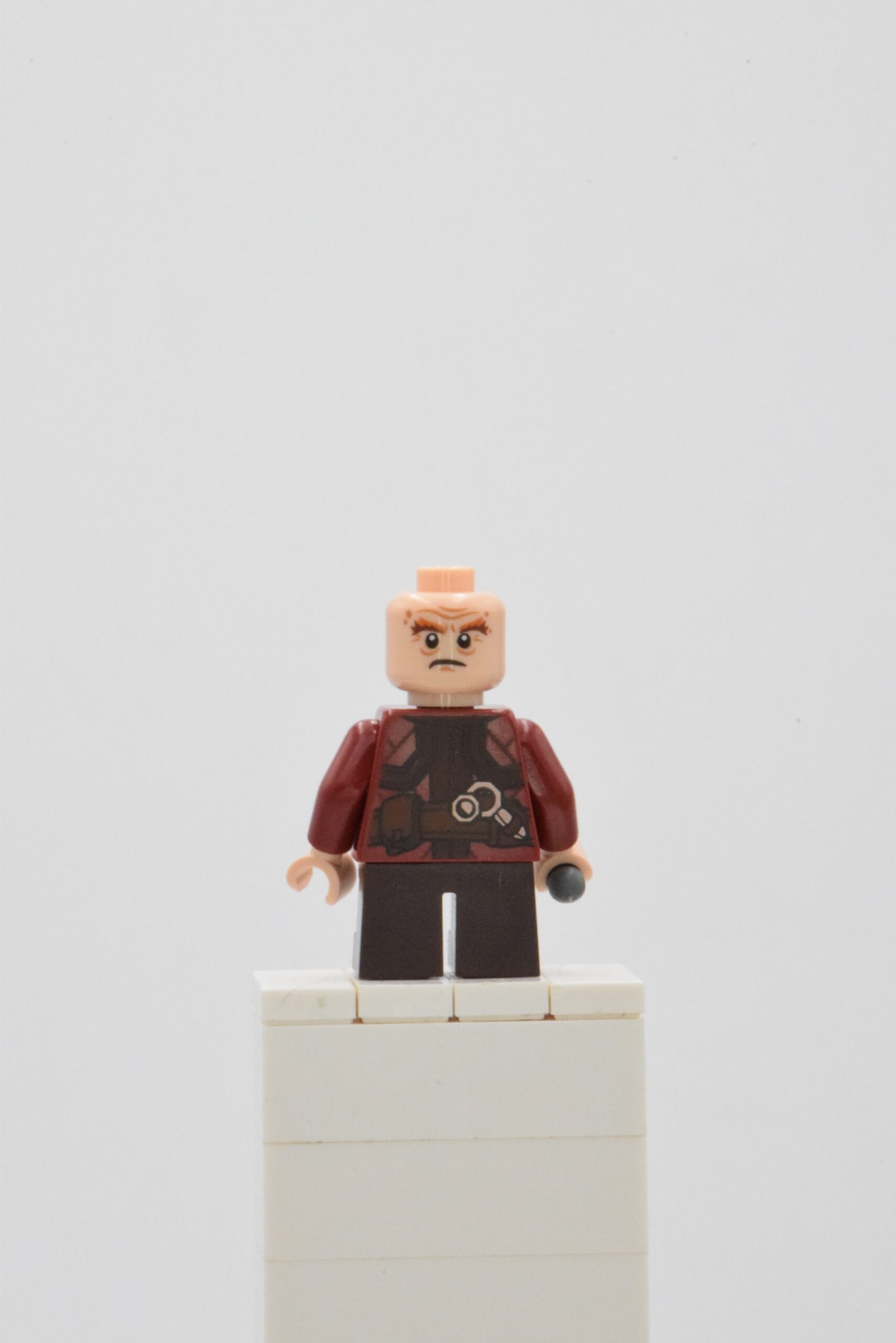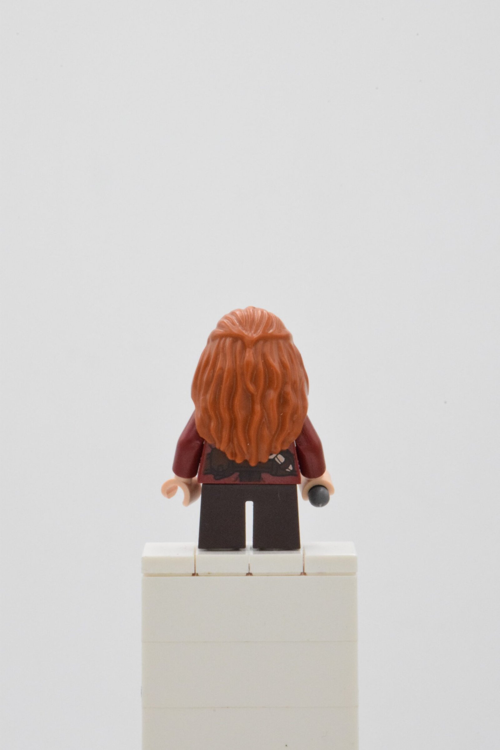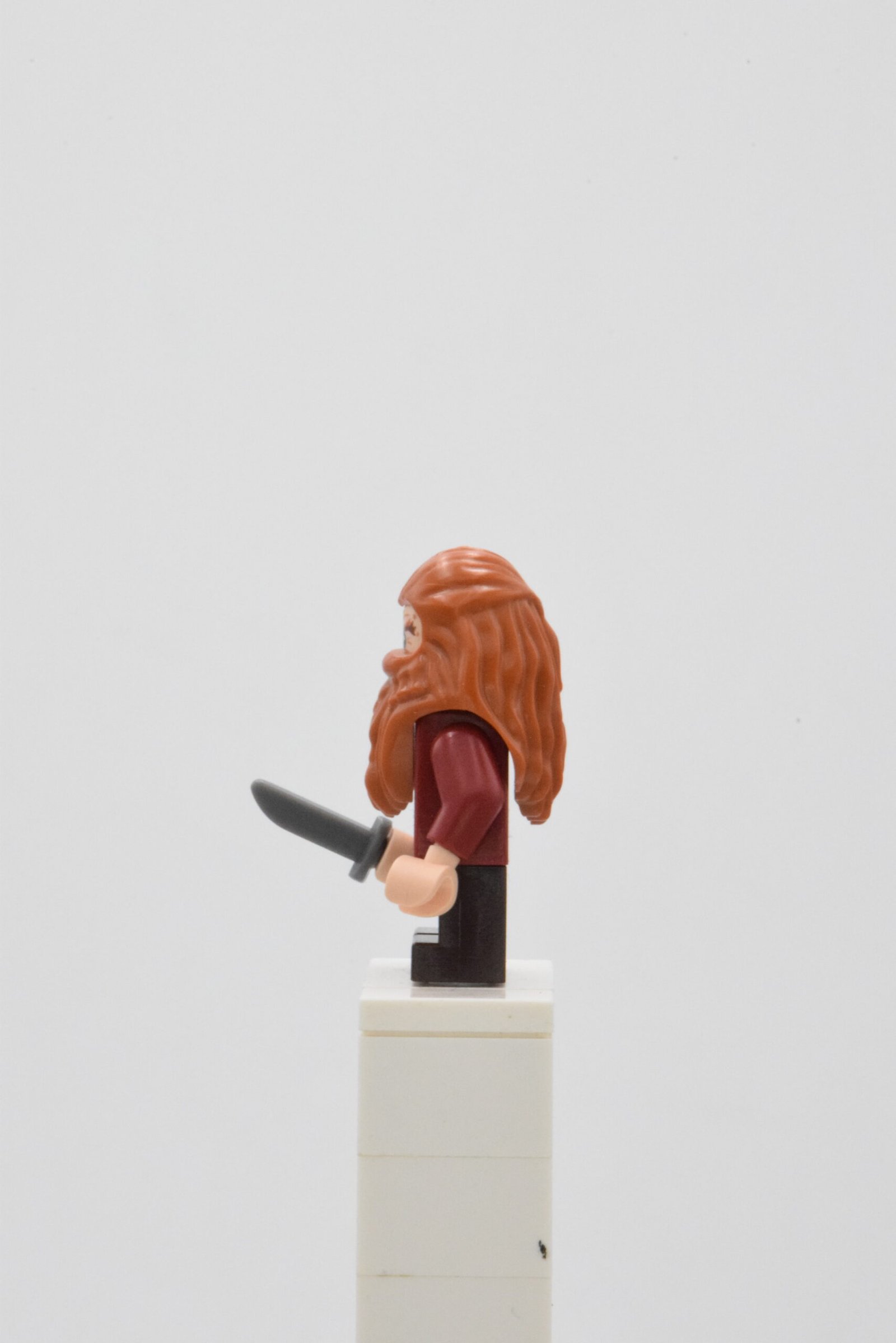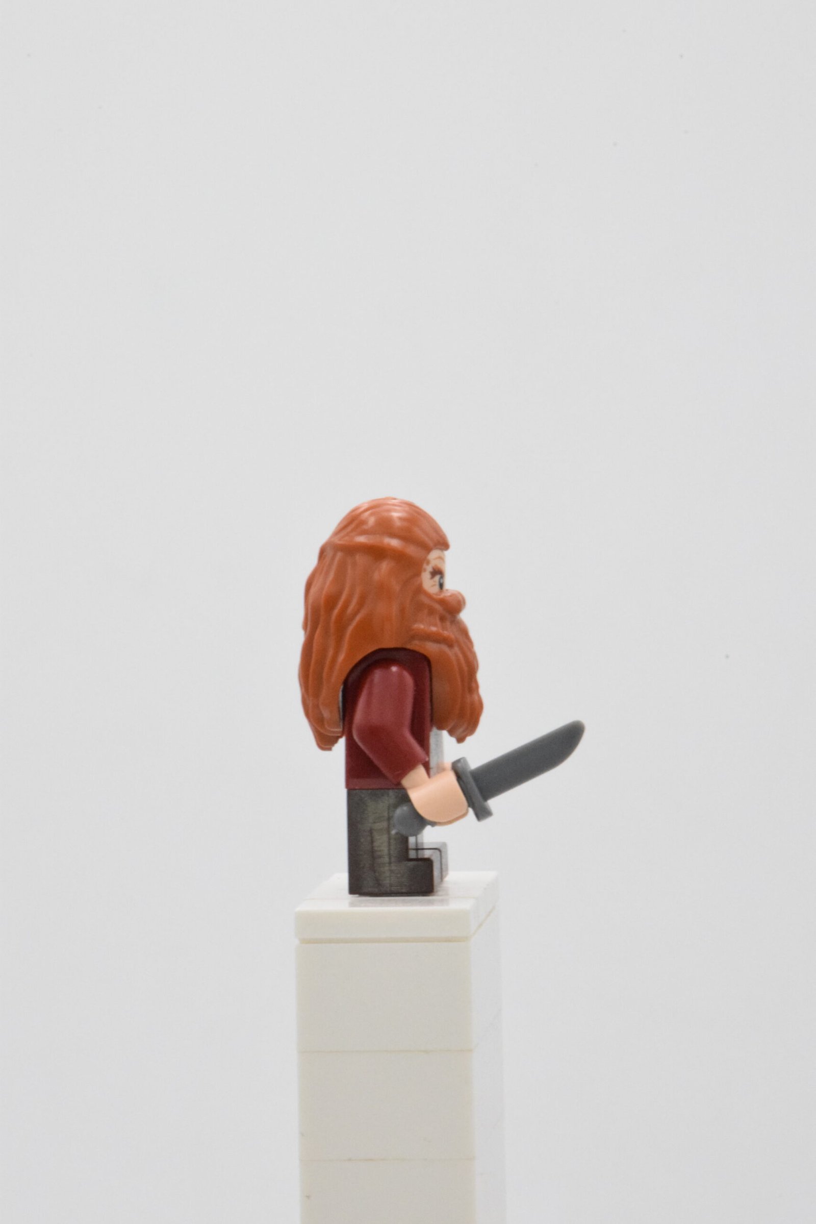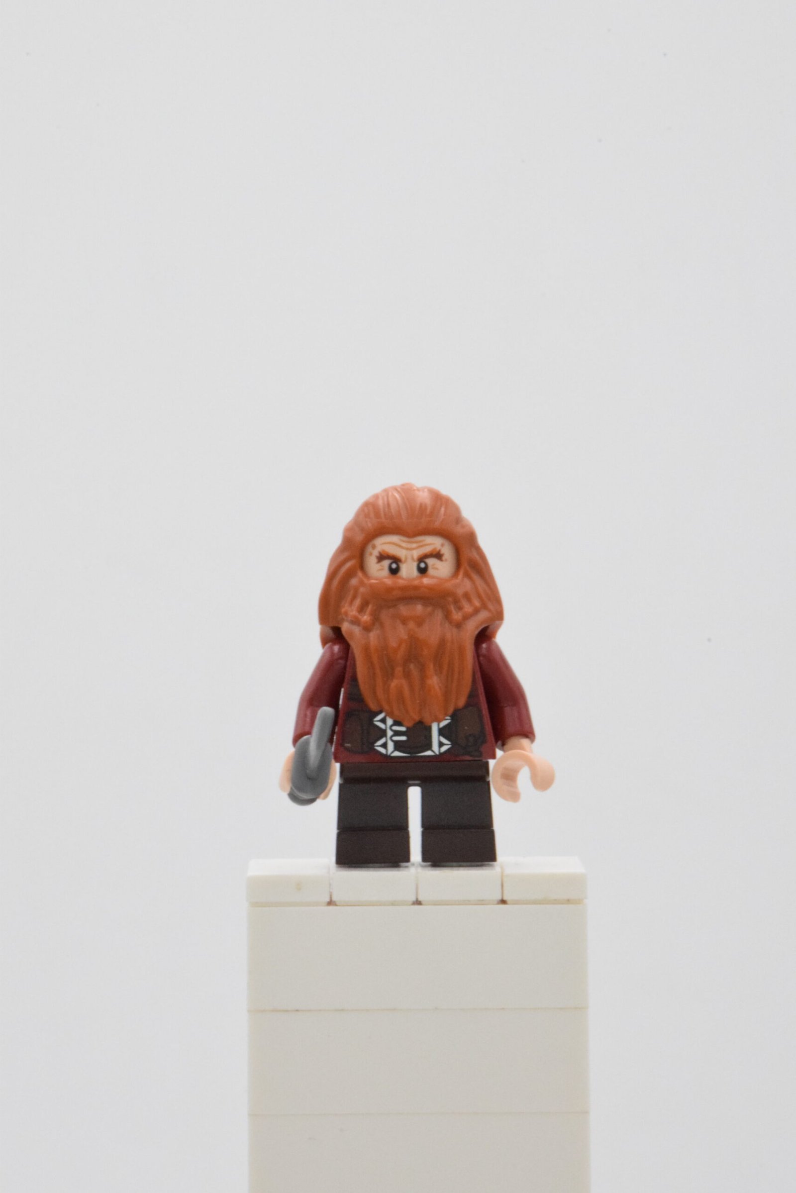 Sortie en 2012 dans le set LEGO 79013 – Lake-town Chase, cette figurine unique se distingue par son torse richement imprimé, illustrant une armure naine détaillée, ainsi qu’une barbe rousse amovible et un visage double expression (calme et combatif). Le design minutieux reflète parfaitement l’esthétique des nains de la Montagne Solitaire.