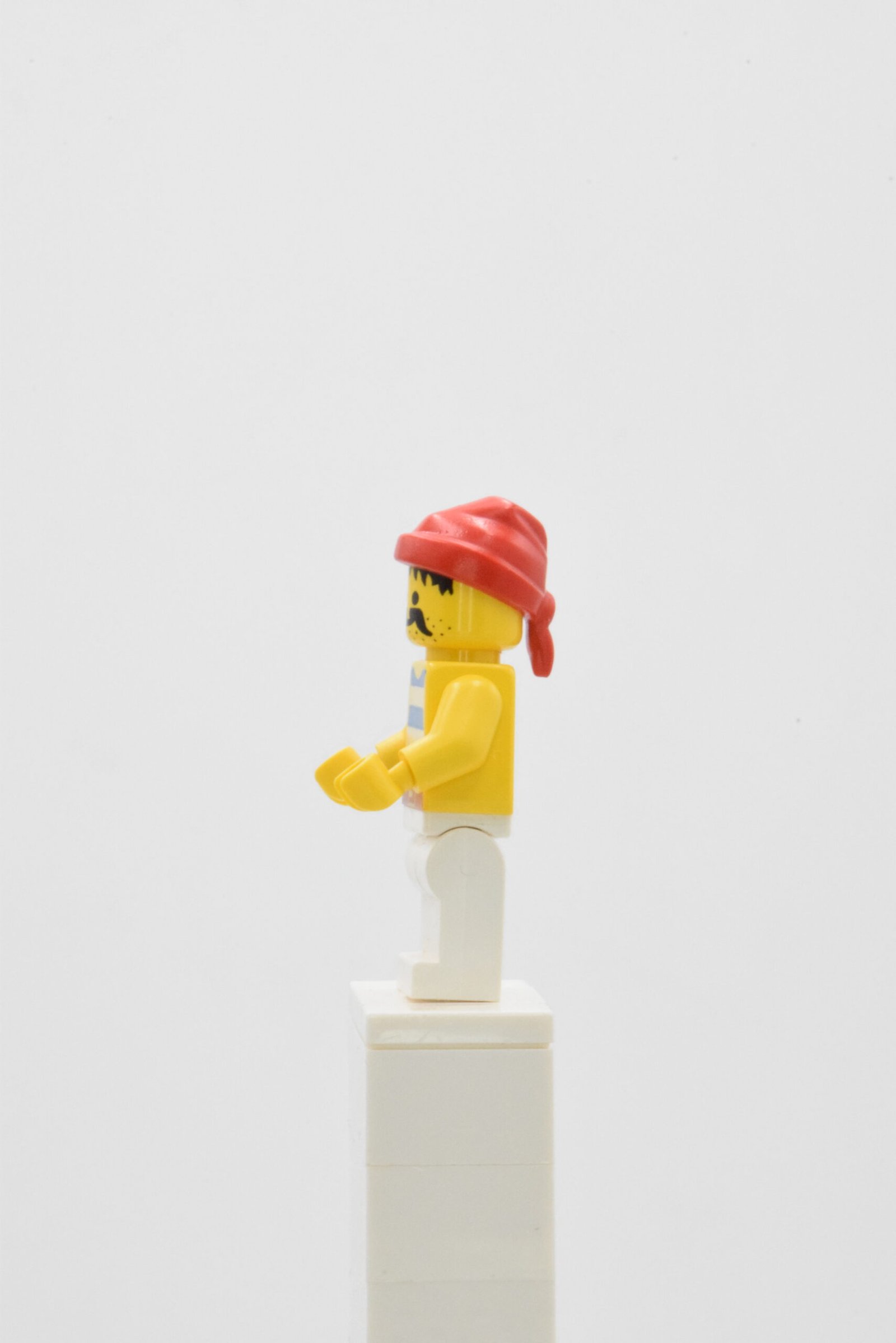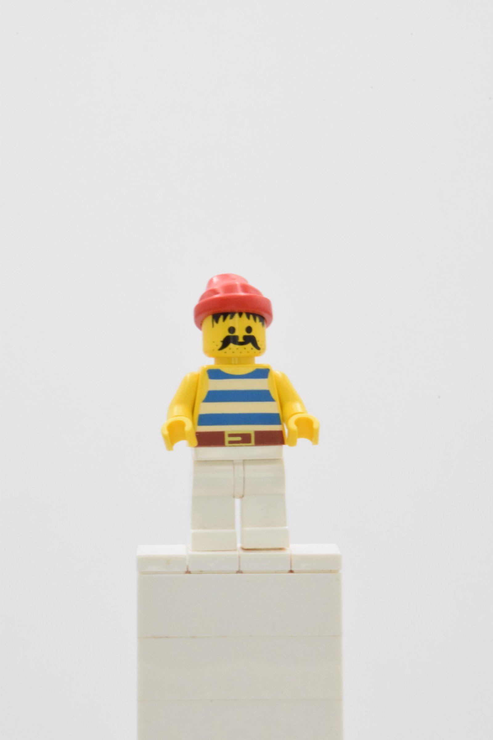Cette figurine se distingue par son torse imprimé de larges rayures bleues et blanches, un classique intemporel de l’imaginaire pirate. La ceinture rouge imprimée apporte une touche de couleur vive qui contraste élégamment avec le pantalon clair. La tête affiche un visage expressif avec moustache et barbe légère, renforçant le caractère rustique et authentique du personnage. Le bandana rouge complète l’ensemble et accentue son allure de marin aguerri.