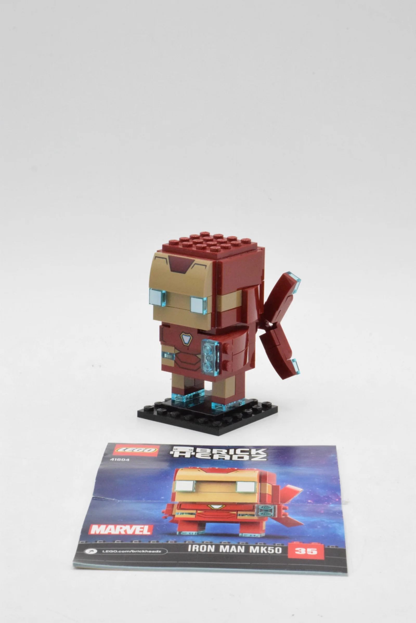 Le set numéro 41604Iron Man MK50, réunit dans la boîte une figurine BrickHeadz à construire d’Iron Man avec sa plaque de base collector101 pièces, dans le thème BrickHeadz/Marvel et le sous-thème Avengers Infinity War.