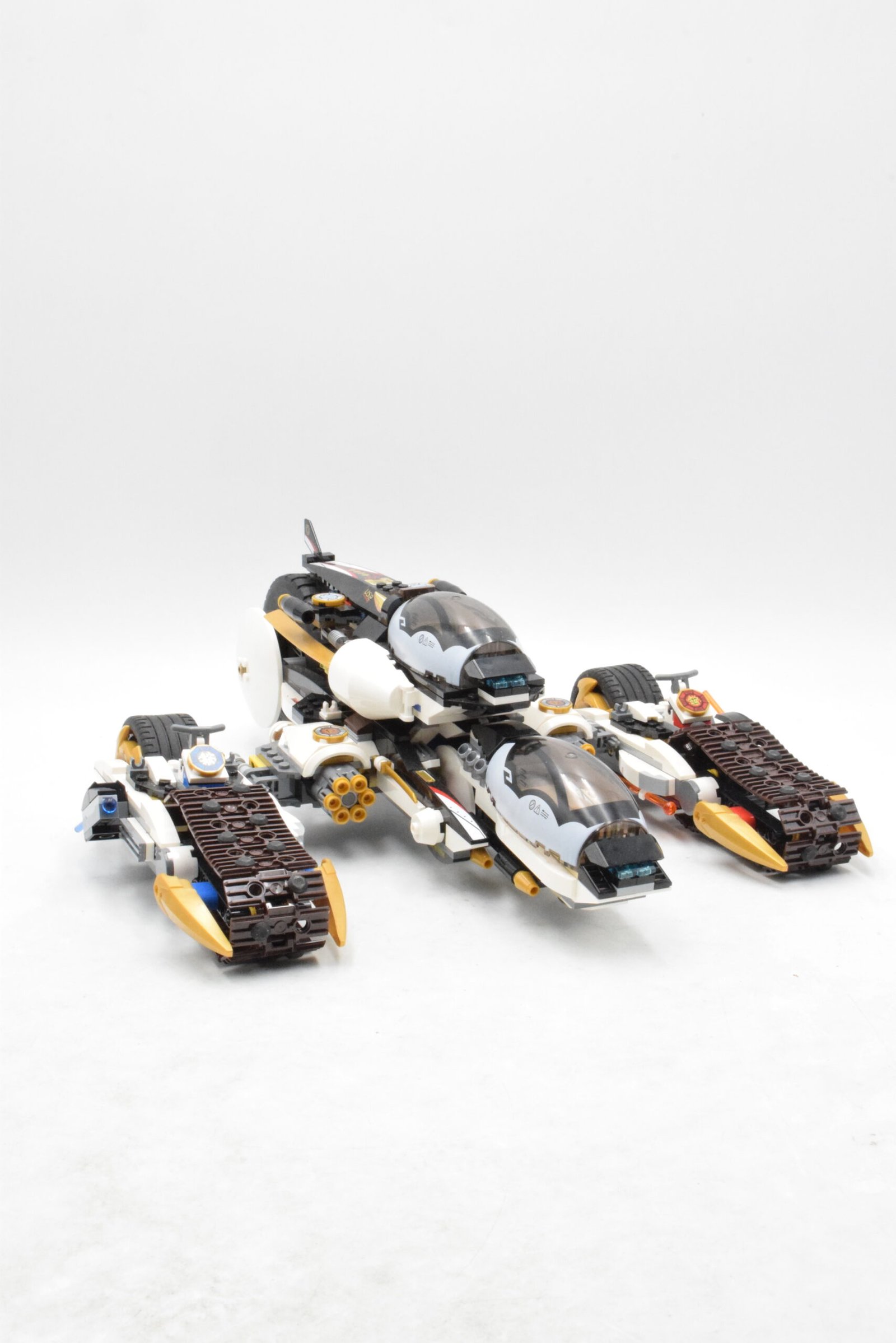 Le set numéro 70595Le tank ultra furtif, réunit dans la boîte un véhicule ninja 4-en-1 qui se sépare en hélijetgrosse moto et 2 motos à chenilles, un Chenosaure1 093 pièces et 7 minifigurinesCole, Zane, Jay, Kai, Maître Chen, Eyezorai et Maître Yang, dans l’univers NINJAGO et le sous-thème Day of the Departed.