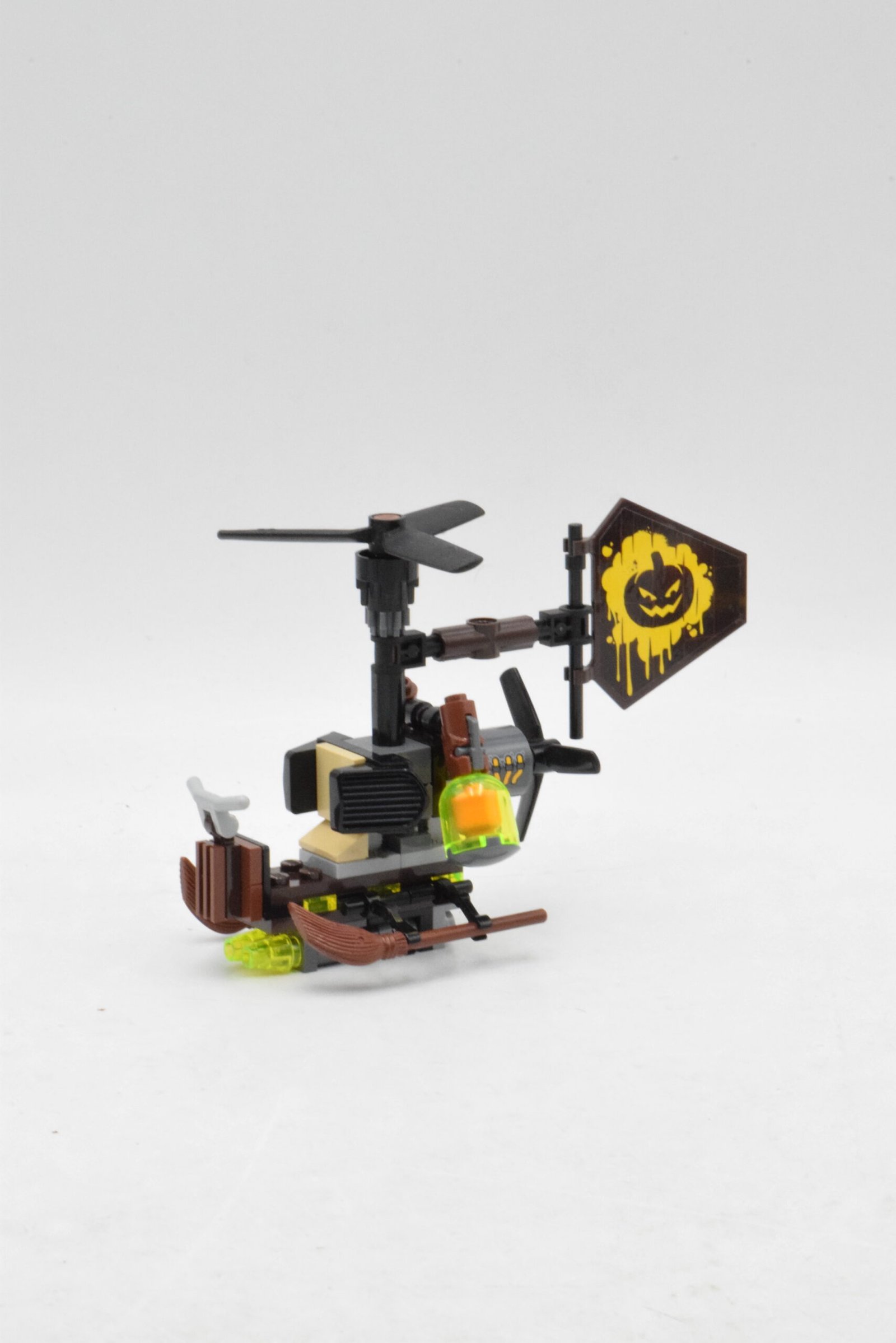 Le set numéro 70913 va droit à l’essentiel avec une construction en deux petits modules très complémentaires : un gyro-coptère pour l’attaque aérienne et une centrale miniature pour la zone d’impact. Dans Le face-à-face avec l’Épouvantail, le véhicule volant apporte immédiatement du mouvement grâce à ses deux rotors, à son gouvernail réglable et à ses deux lâchers de bombes au gaz de peur, pendant que la centrale ajoute une interaction simple mais efficace avec sa fonction d’explosion. Le jetpack de Batman, avec Batwings et propulseurs ajustables, renforce encore le côté dynamique du duel.