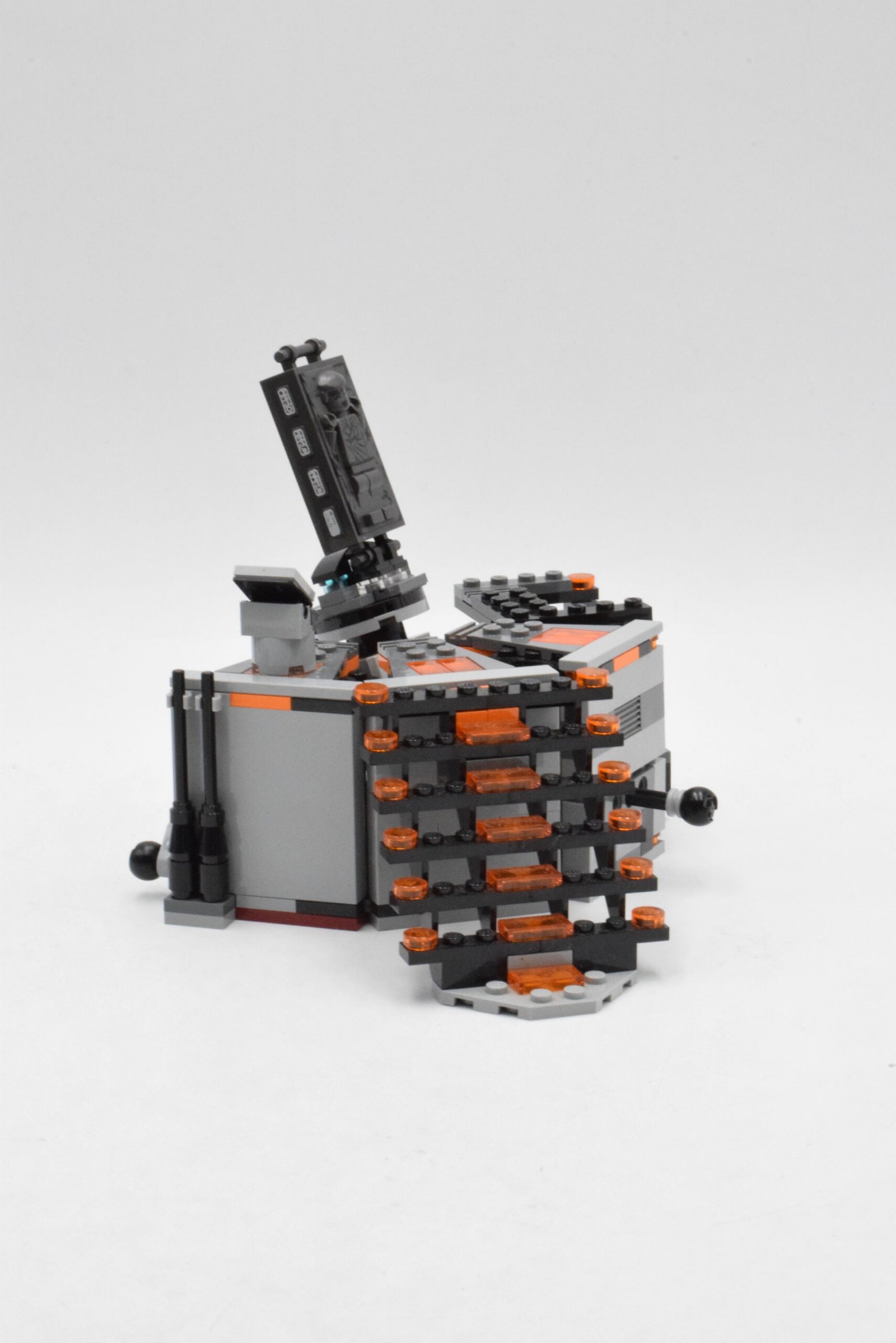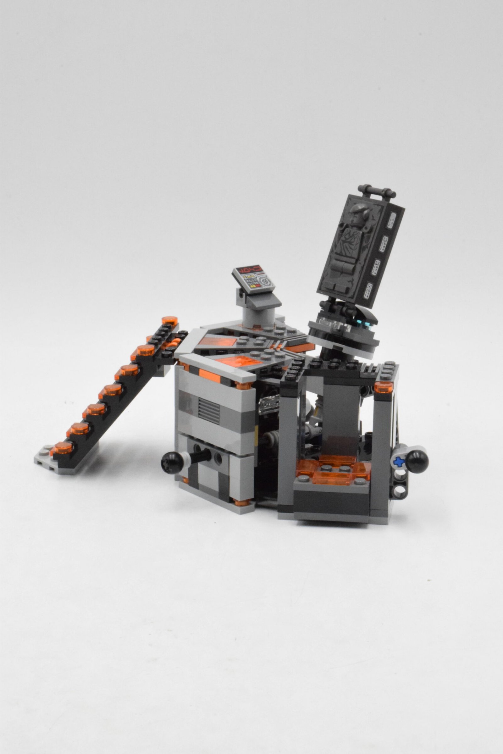 La jouabilité repose sur des mécanismes clairs : un bouton qui active la fonction de congélation et un ascenseur qui permet de placer un personnage en hauteur pour surveiller la scène. Les 3 minifigurines incluses offrent une mise en scène immédiatement exploitable, et les accessoires dédiés à Boba Fett (dont fusil et casque) renforcent l’aspect “scène complète” dès l’ouverture de la boîte.