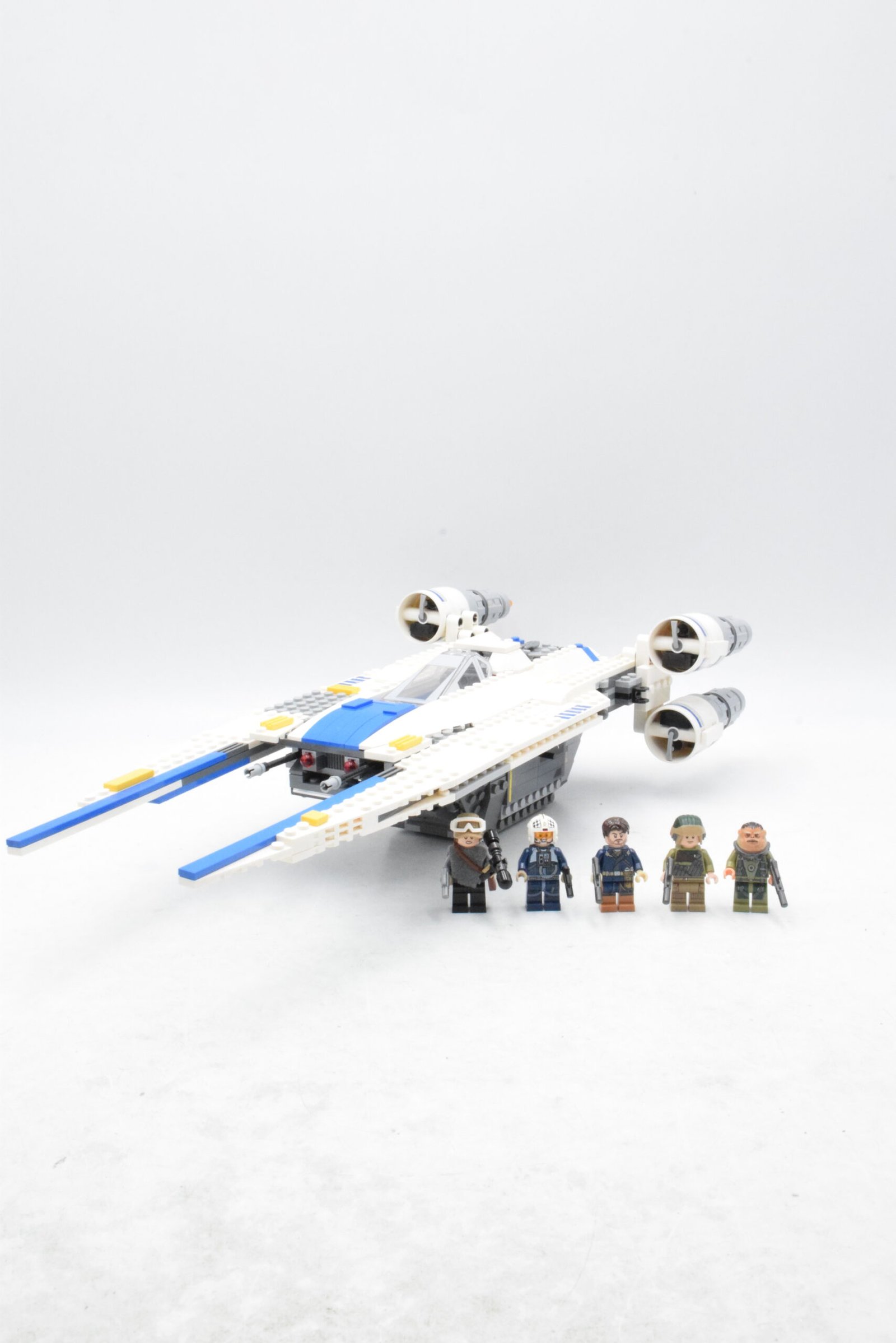 - Minifigurines : pilote U-Wing, Bistan, Jyn Erso, Cassian Andor, soldat rebelle.