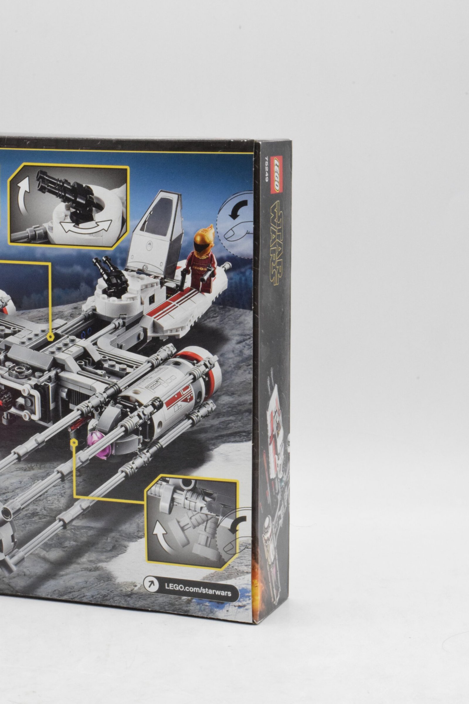 Le set numéro 75249Y-Wing Starfighter de la Résistance, contient dans la boîte un chasseur-bombardier de la Résistance avec cockpit ouvranttrain d’atterrissage rétractablefusils à ressort et mécanisme de largage de bombes, accompagné de 578 pièces et de 5 figurines au total nommées Poe Dameron, Zorii Bliss, First Order Snowtrooper, D-O et K3-R1, dans le thème LEGO Star Wars et le sous-thème Episode IX.