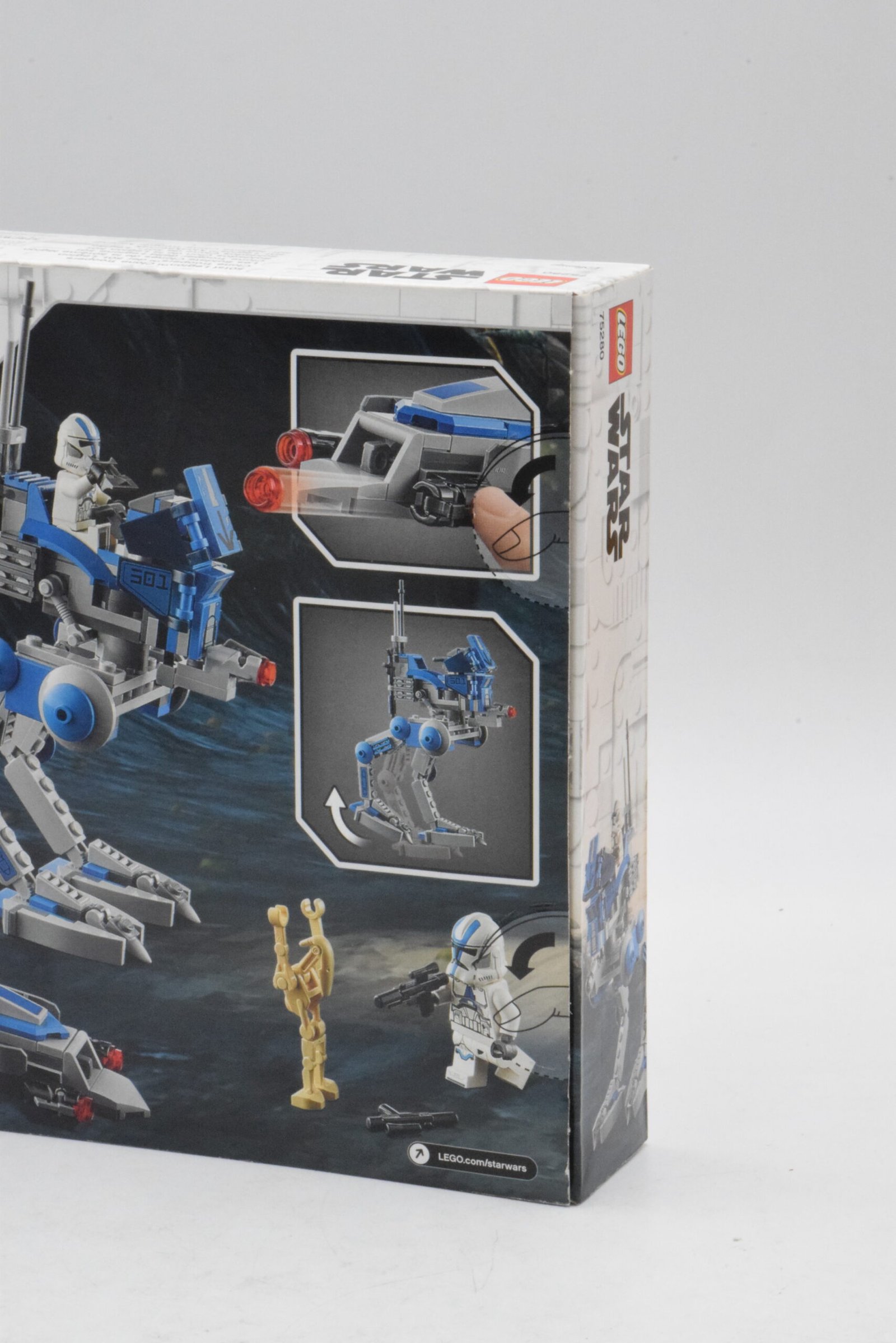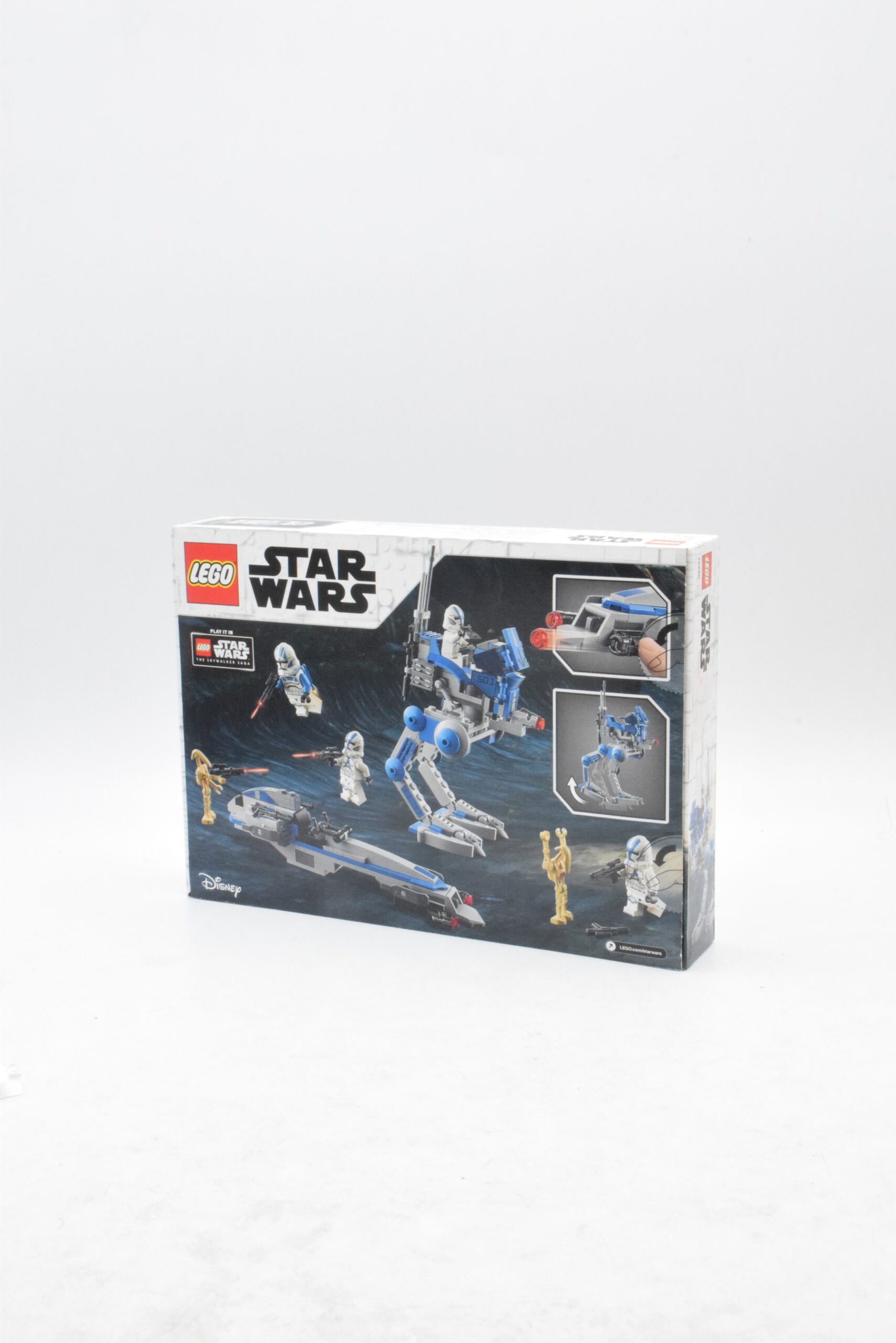 Le point fort majeur reste le casting : 3 clones de la 501e1 Jet Trooper et 2 droïdes, ce qui permet de lancer une scène complète dès l’ouverture de la boîte. Côté modèles, l’association AT-RT + speeder BARC apporte de la variété visuelle et des usages différents en jeu (marcheur vs véhicule rapide), tout en restant compatible avec des dioramas “Clone Wars”. Le set est indiqué comme retiré en janvier 2023, renforçant son intérêt pour les collectionneurs et les fans d’unités 501e.