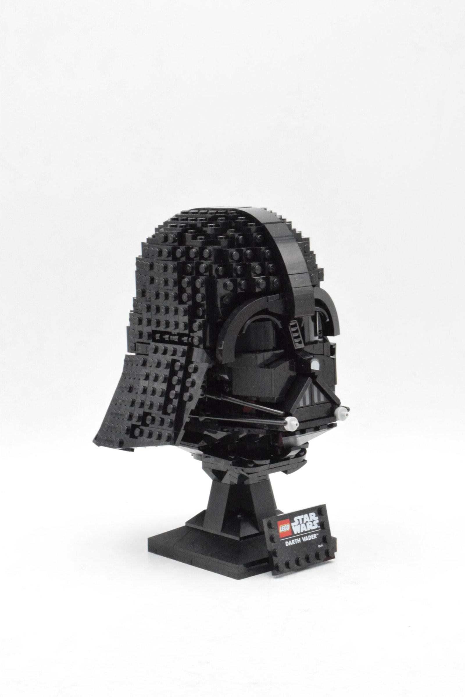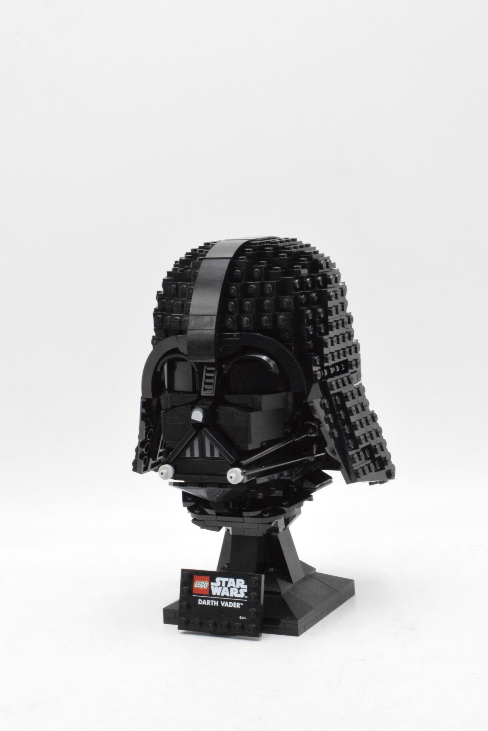Le casque de Dark Vador™ mise sur une construction d’exposition qui cherche avant tout la fidélité visuelle, avec un travail marqué sur la forme générale du masque, les volumes du dôme et les éléments liés au système de survie du personnage. Le set numéro 75304 intègre aussi un présentoir avec plaque nominative, ce qui renforce nettement son positionnement déco et collection plutôt qu’une logique de jeu classique.