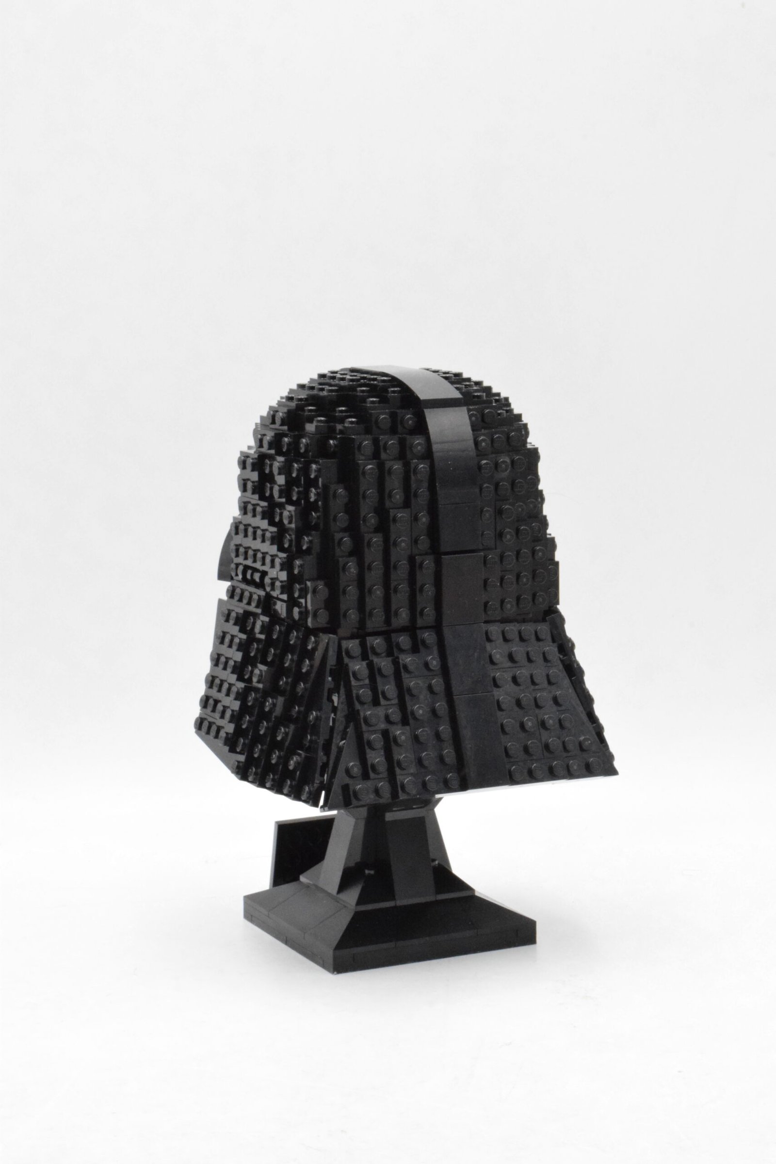 - La construction retranscrit bien les lignes emblématiques du casque, notamment le contraste entre les parties anguleuses du masque et les volumes plus arrondis de la partie supérieure.