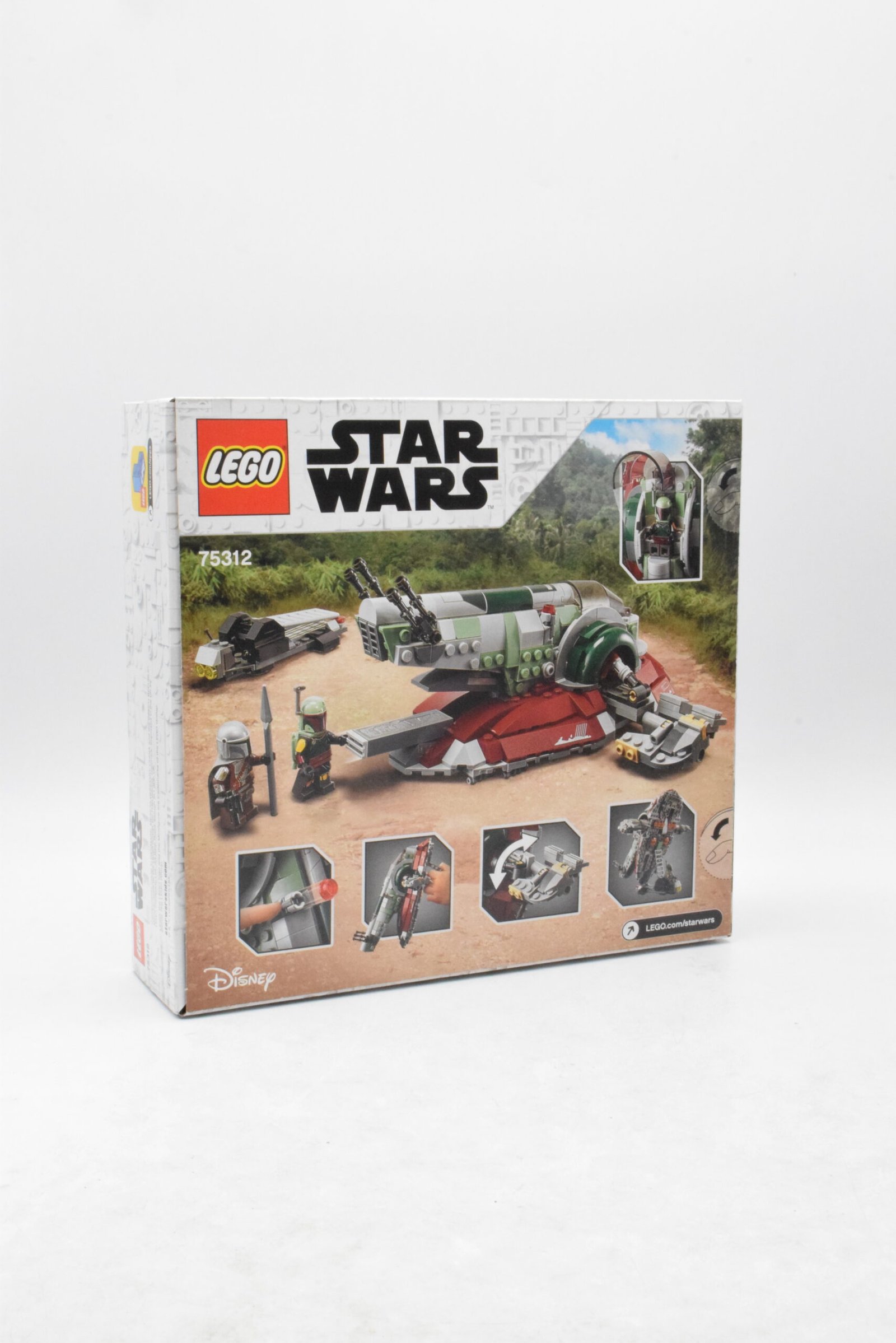 Le set numéro 75312 propose une version compacte mais très réussie du célèbre appareil de Boba Fett, avec un vrai souci d’équilibre entre maniabilité et identité visuelle. Le vaisseau de Boba Fett intègre une poignée pour les phases de vol, un cockpit ouvrant, des ailes pivotantes, deux fusils à tenons, deux doubles canons blaster pivotants non fonctionnels et un compartiment pour la brique de carbonite, ce qui donne un ensemble dense en fonctions sans alourdir la construction.