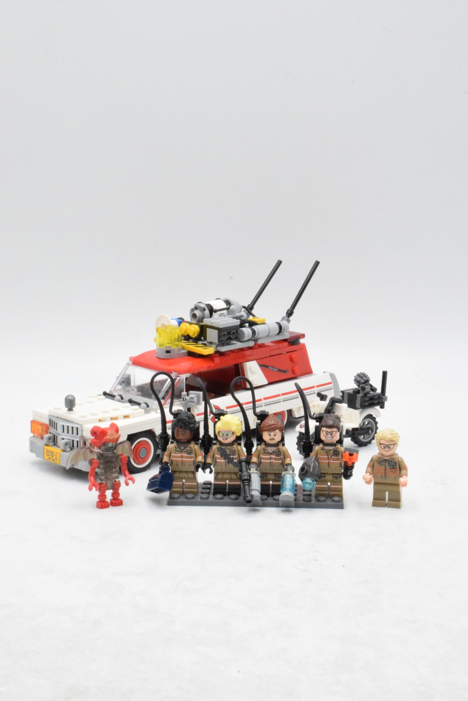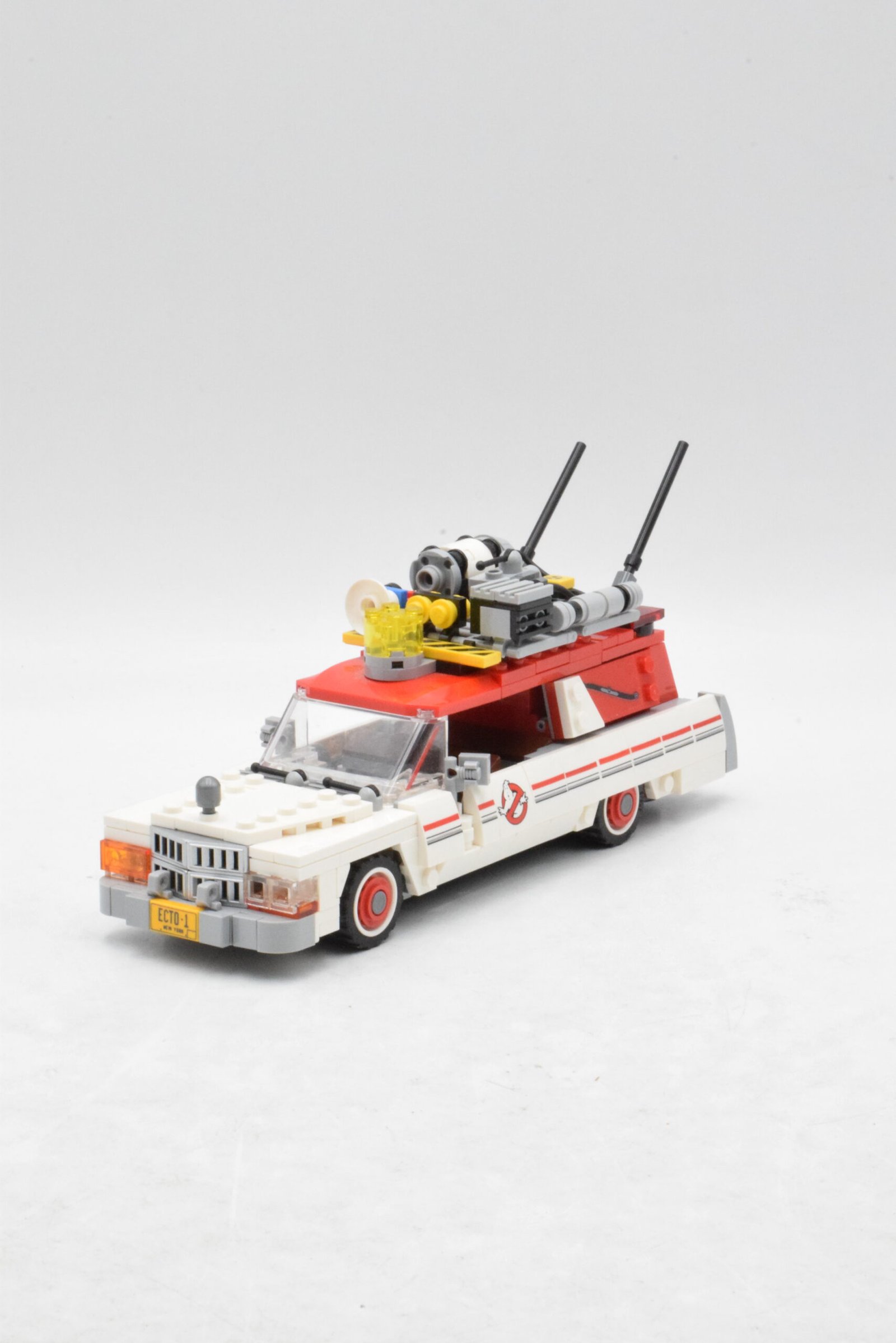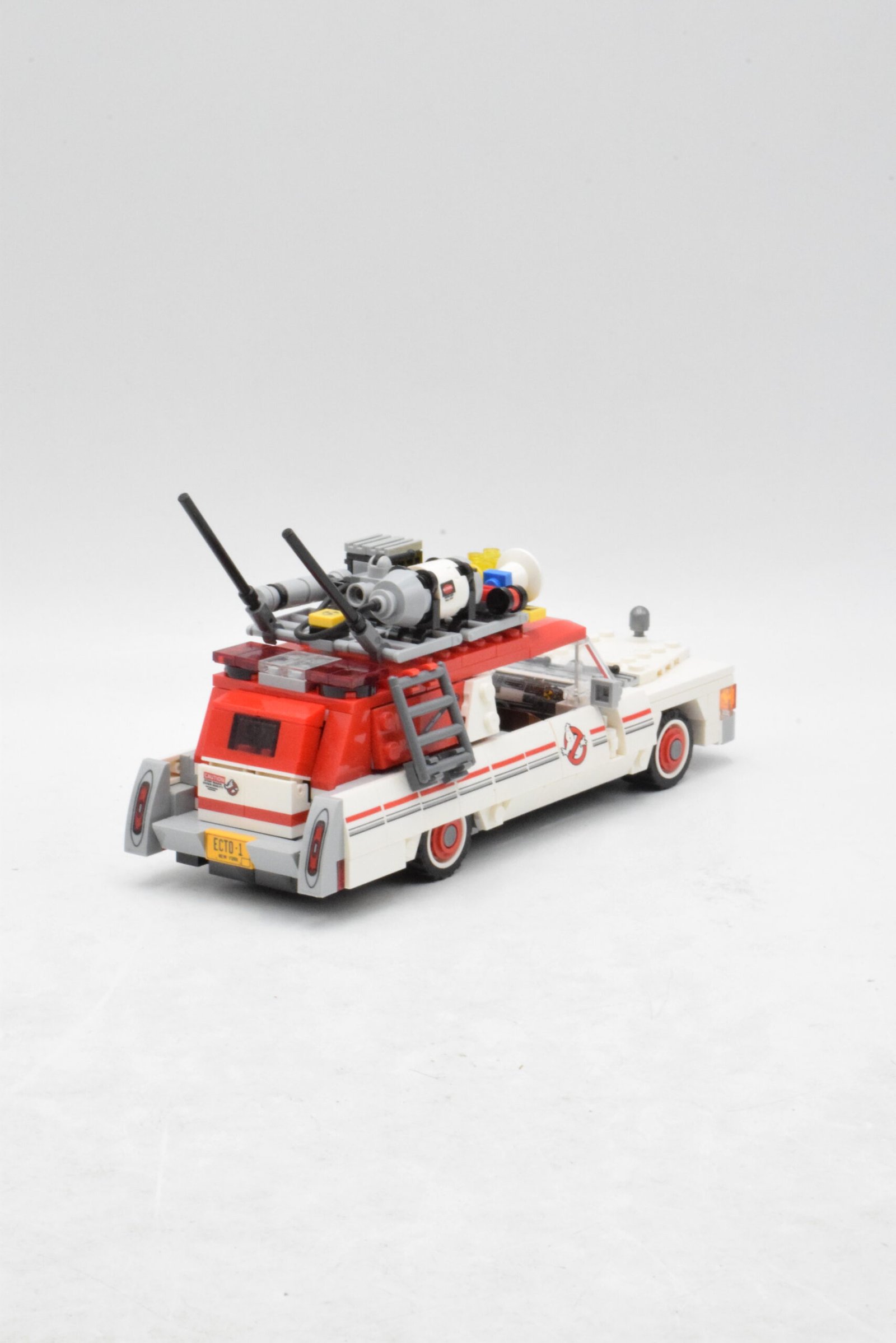 Le set numéro 75828 met en avant une Ecto-1 au look du film 2016, avec un logo Ghostbusters, une échelle latérale, une immatriculation ECTO-1 et un toit amovible chargé en matériel de détection. Les portes avant s’ouvrent, l’habitacle accueille quatre héroïnes, et l’arrière sert de zone de rangement pour une partie des accessoires.