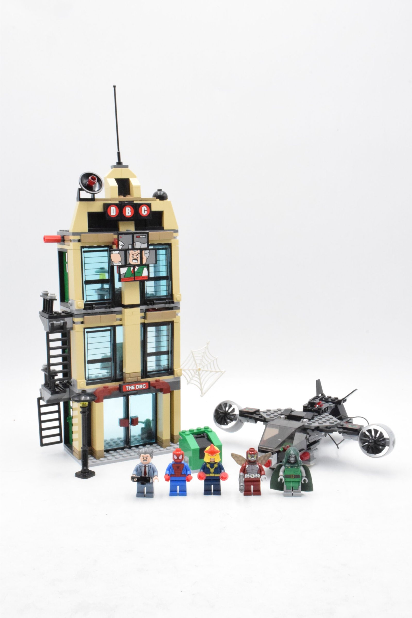 La référence 76005 recrée une scène Spider-Man dynamique autour du Daily Bugle, avec un immeuble à effets “destruction” et un jet d’attaque.