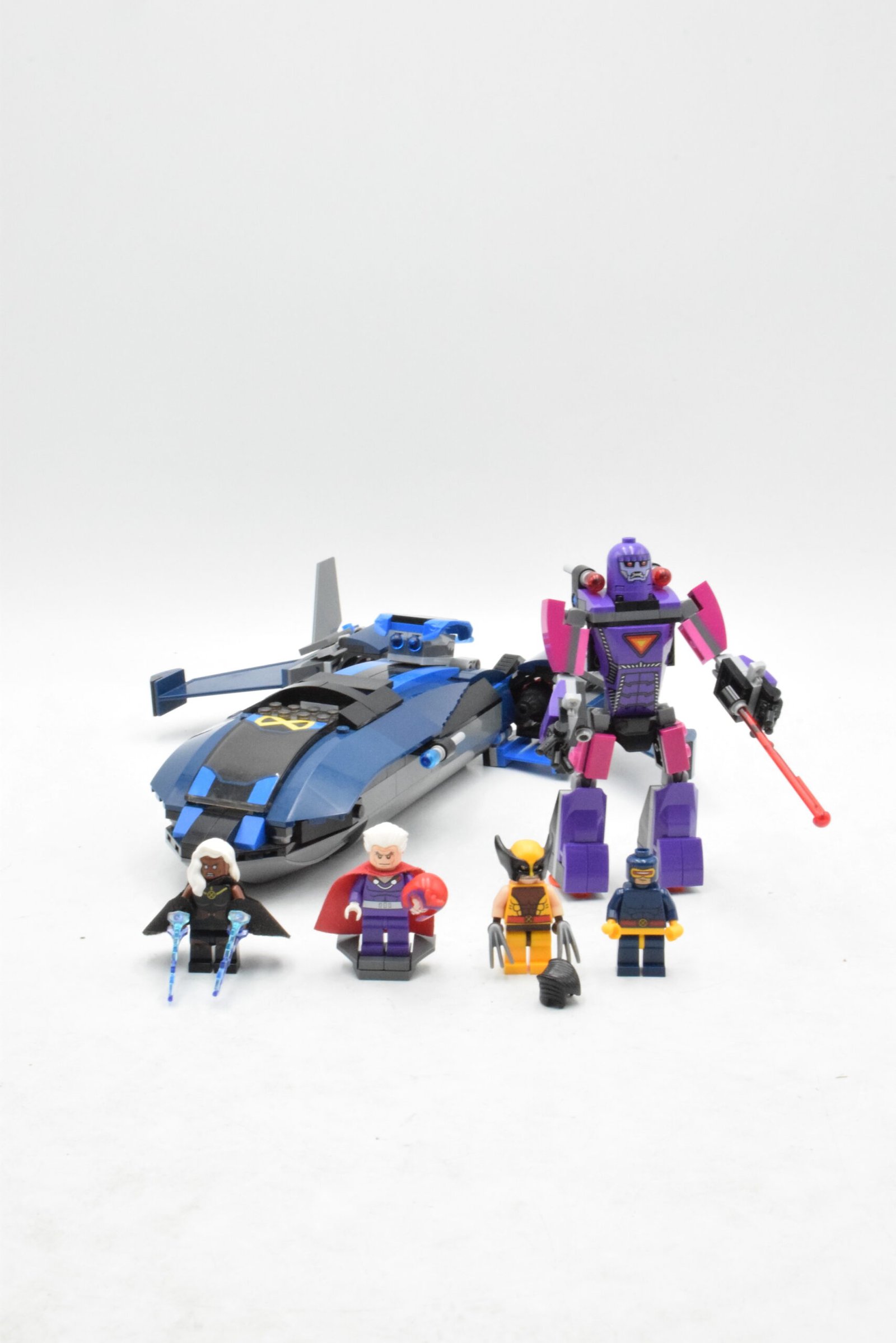 Le Blackbird est conçu pour la mise en scène, avec des fonctions orientées action (tirs et accès simplifié pour installer les personnages). La Sentinelle apporte un vrai “boss” de jeu, avec une présence marquée et une hauteur annoncée à plus de 12 cm, ce qui renforce l’impact en exposition. Les 4 minifigurines (Wolverine, Cyclope, Tornade et Magneto) donnent un affrontement complet dès l’ouverture de la boîte, particulièrement apprécié pour enrichir une collection X-Men.
