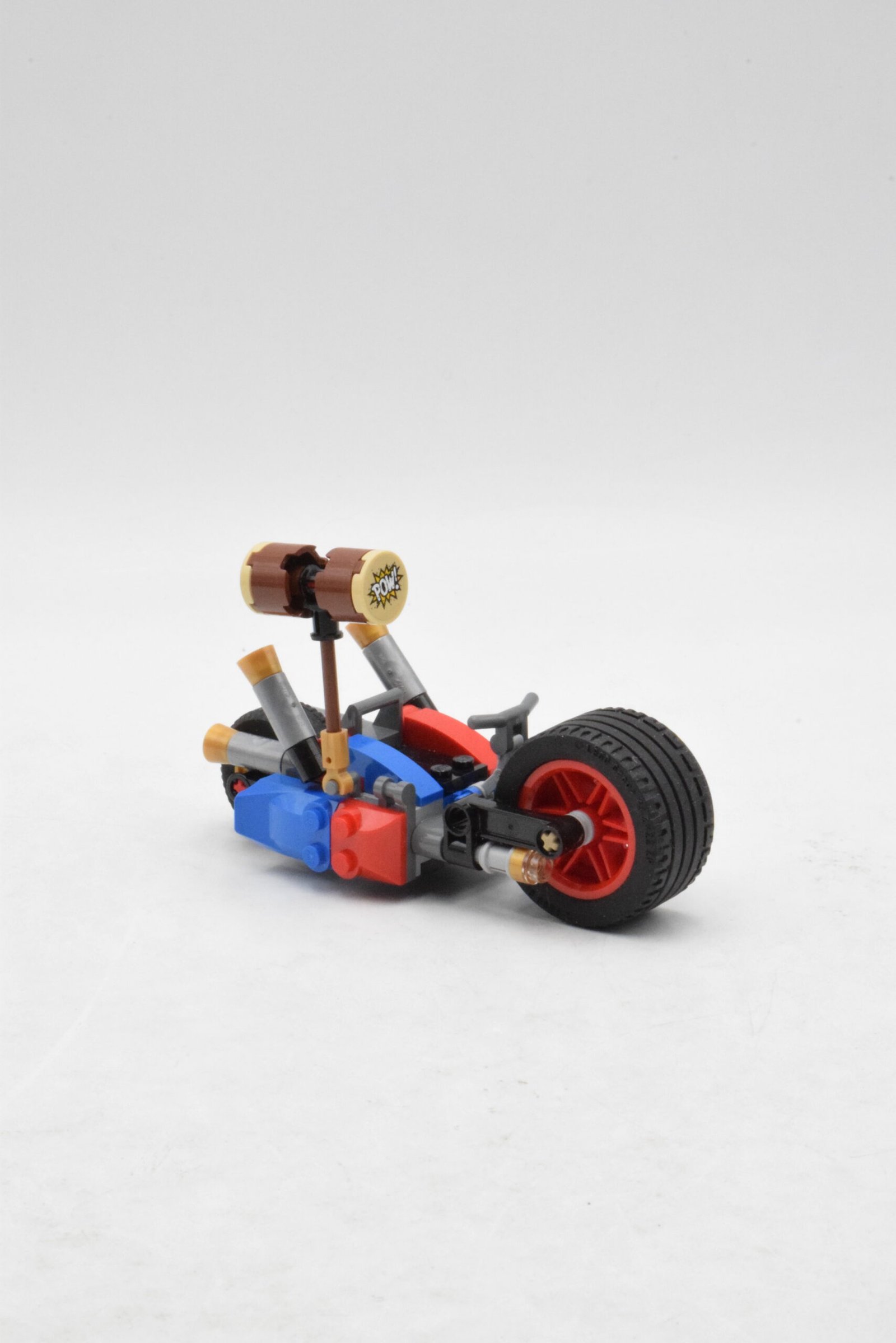 - La moto de Harley Quinn apporte une mécanique simple mais efficace avec le marteau déployable qui enrichit la scène d’action.