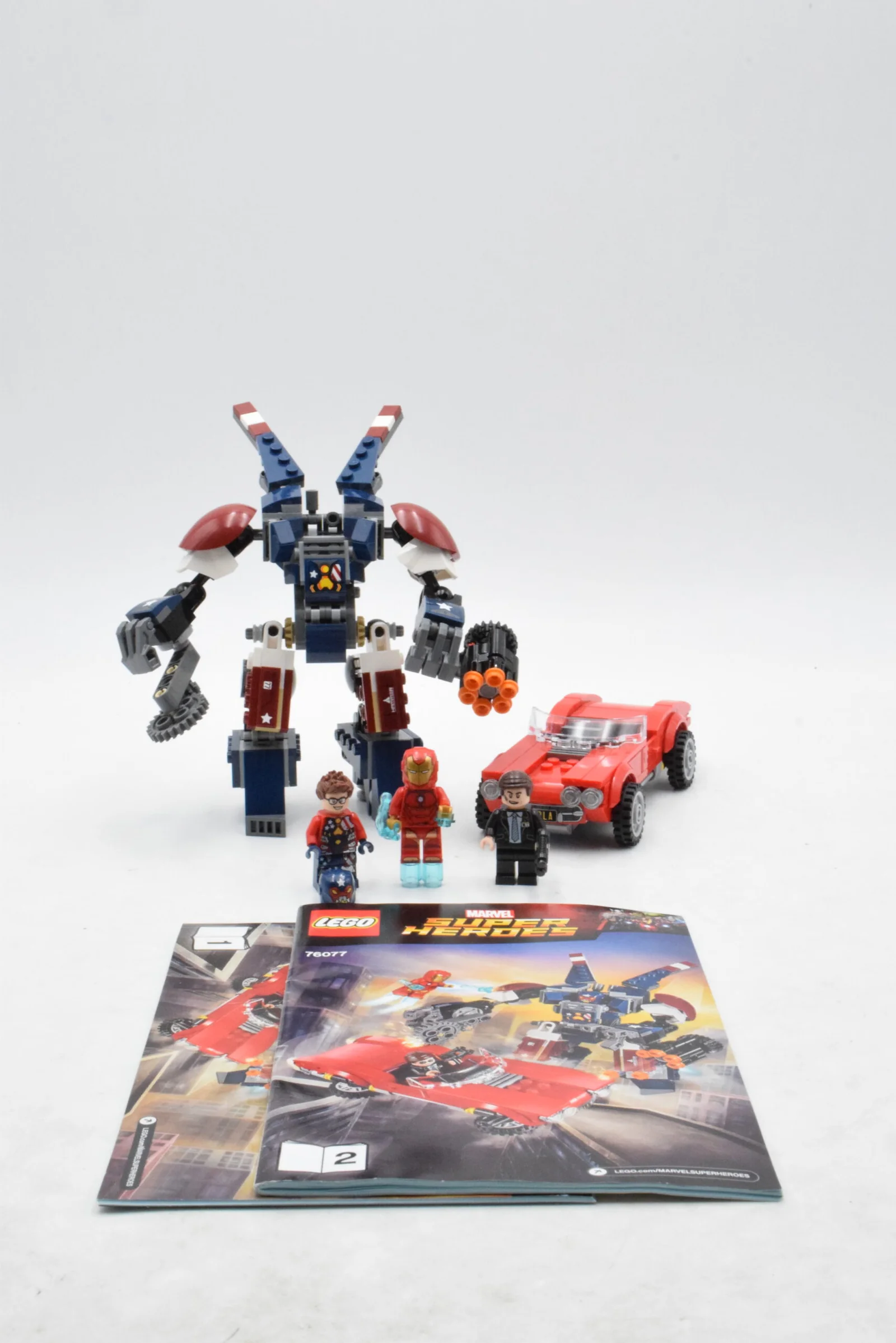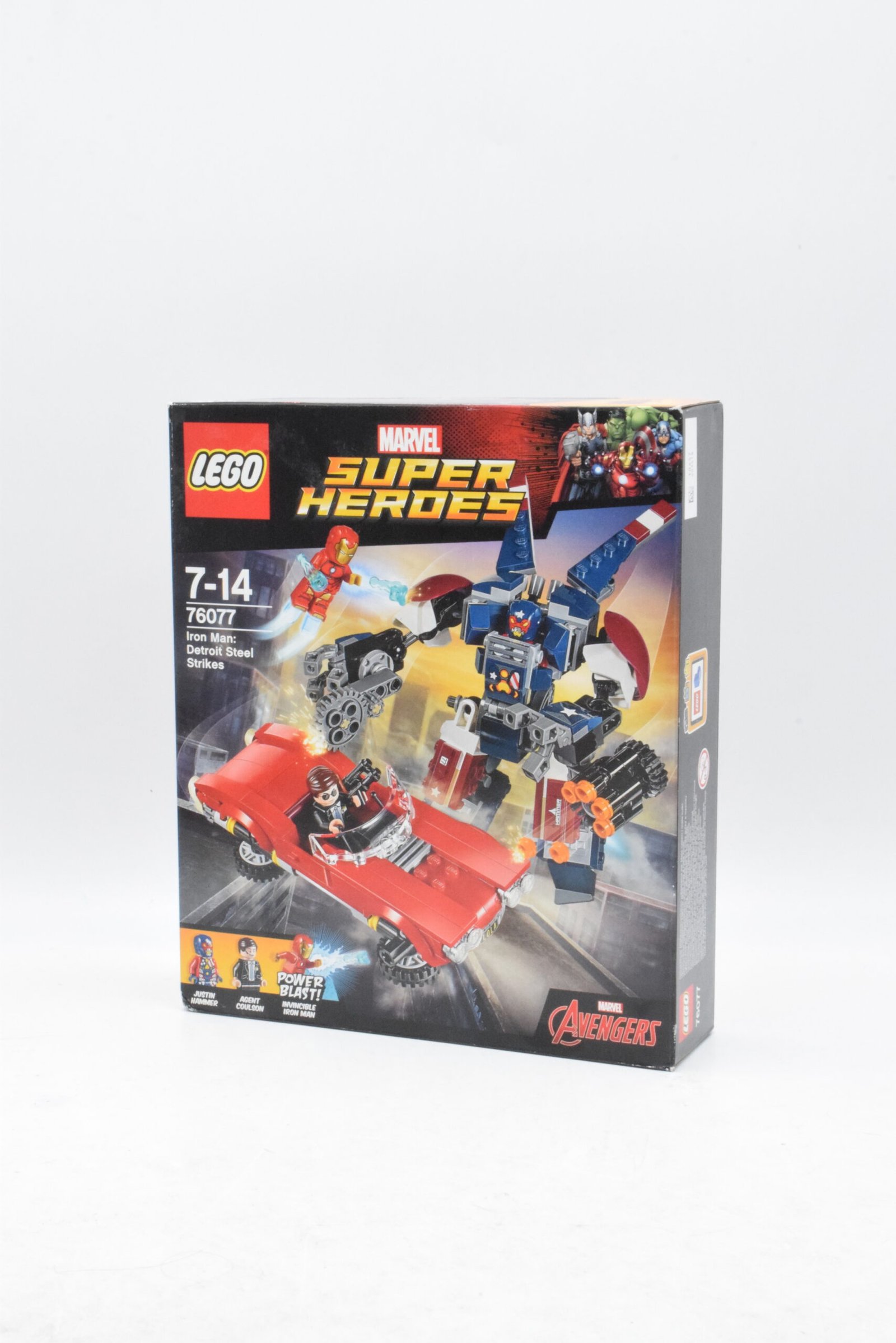 Le set numéro 76077 met en scène un duel très efficace entre un énorme robot blindé et un héros volant, avec en bonus une voiture rétro capable de basculer en mode vol. L’attaque de Detroit Steel repose sur une idée simple mais très bien exploitée : d’un côté, Justin Hammer pilote un mécha articulé et agressif ; de l’autre, Iron Man et l’Agent Coulson disposent d’un contrepoint plus compact, mais visuellement marquant grâce à Lola.