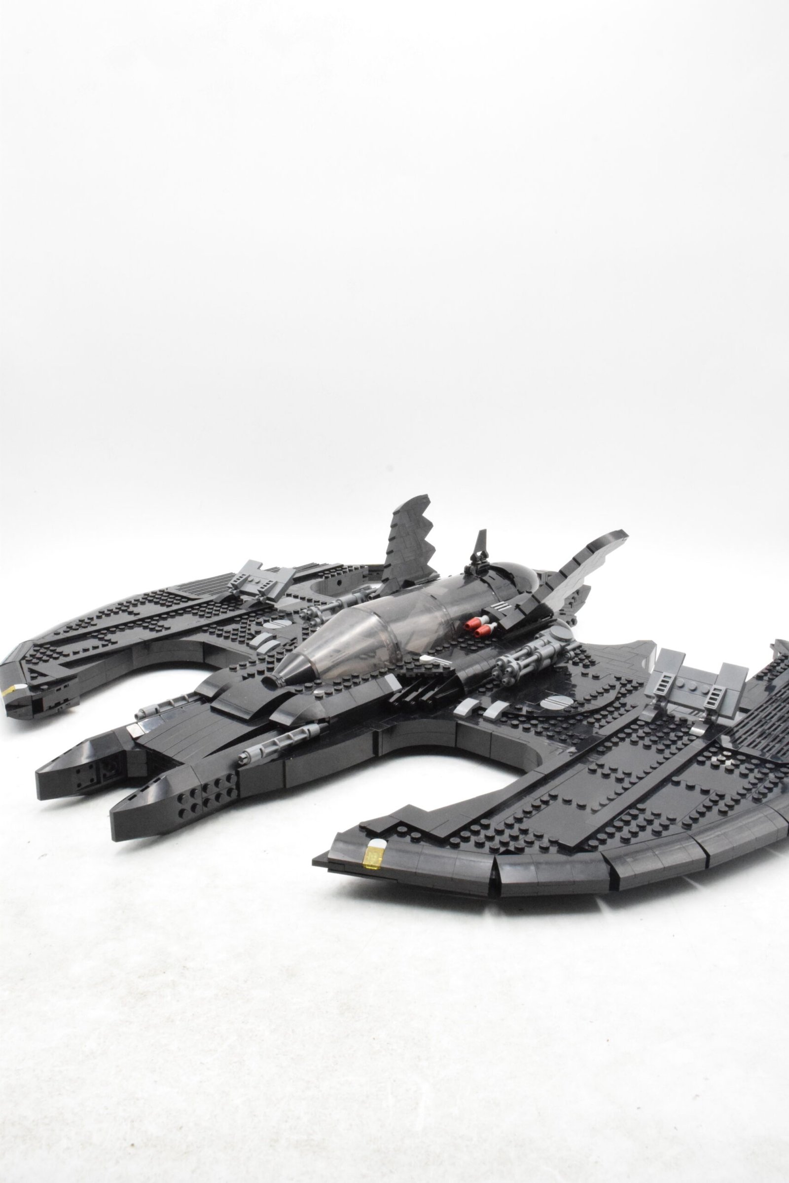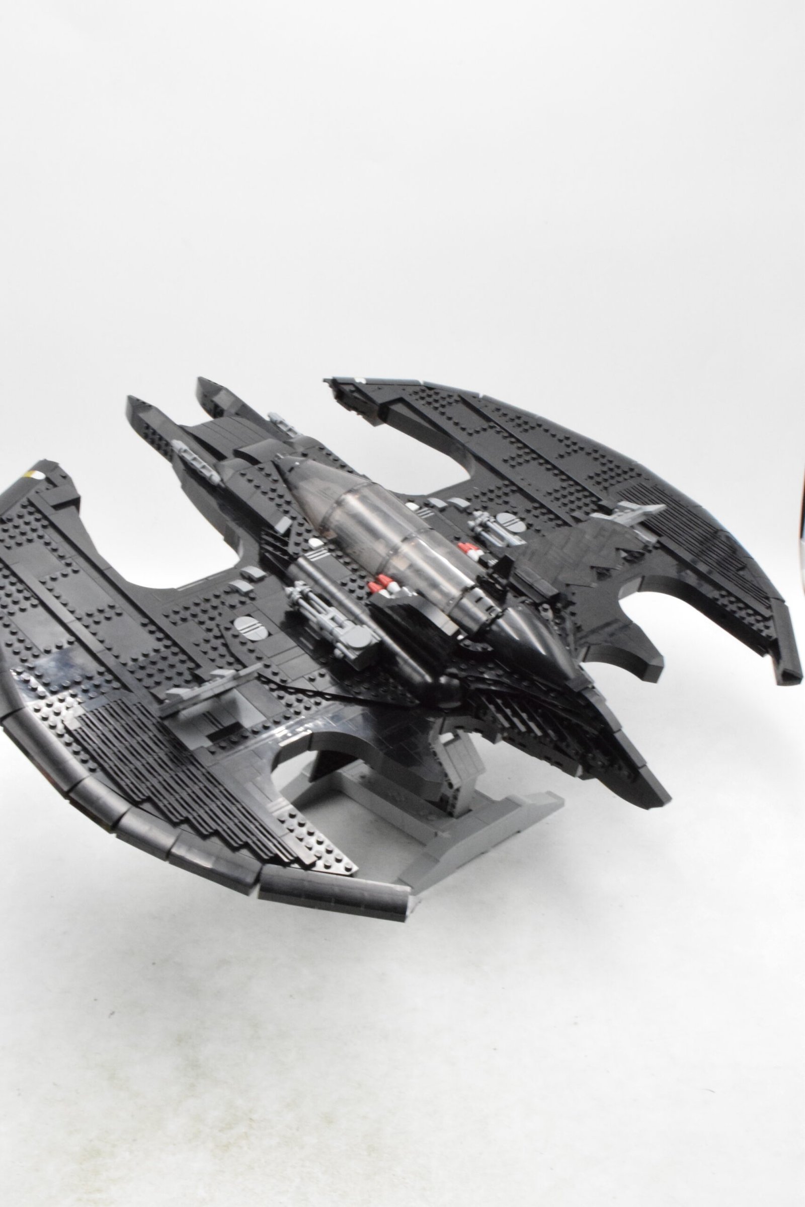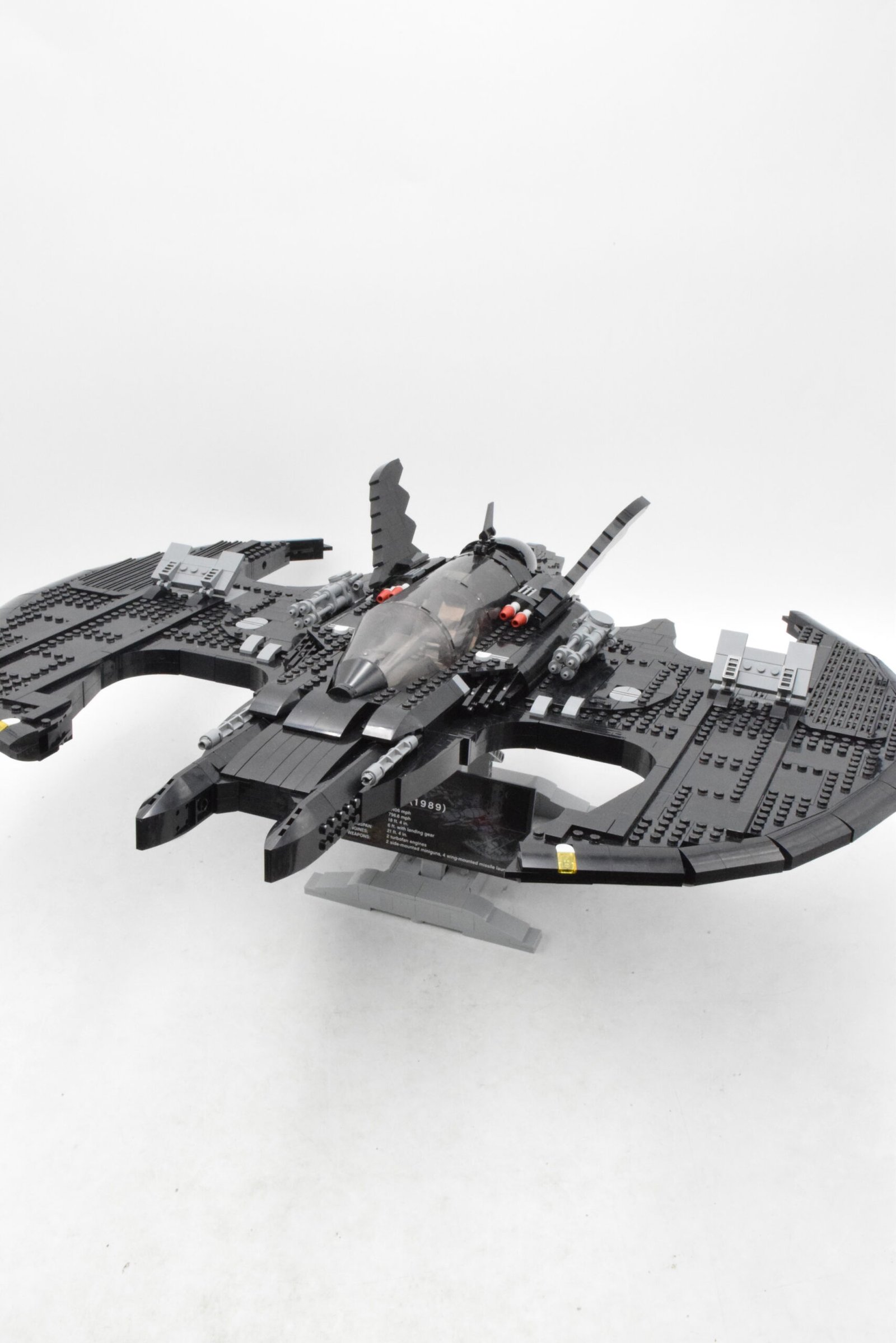 Batwing 1989 mise avant tout sur la fidélité visuelle et la présence en exposition. Le set numéro 76161 reprend les lignes gothiques de l’appareil vu dans le film Batman de 1989, avec un toit amovible, un intérieur travaillé, des volets mobiles et une brique spécifique qui permet de suspendre le modèle au mur, en plus du support de présentation classique avec plaque descriptive.
