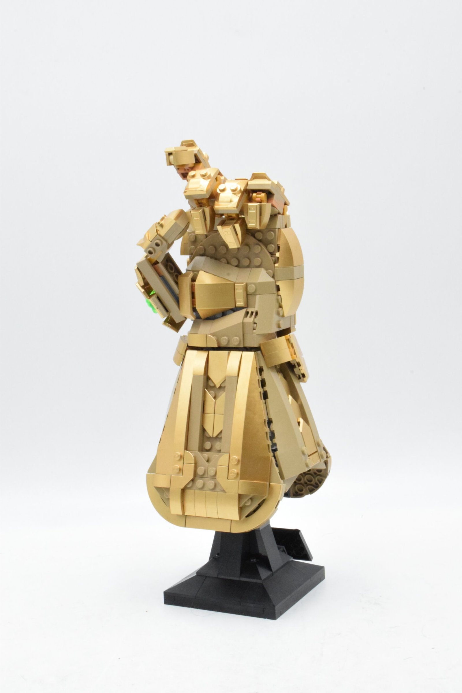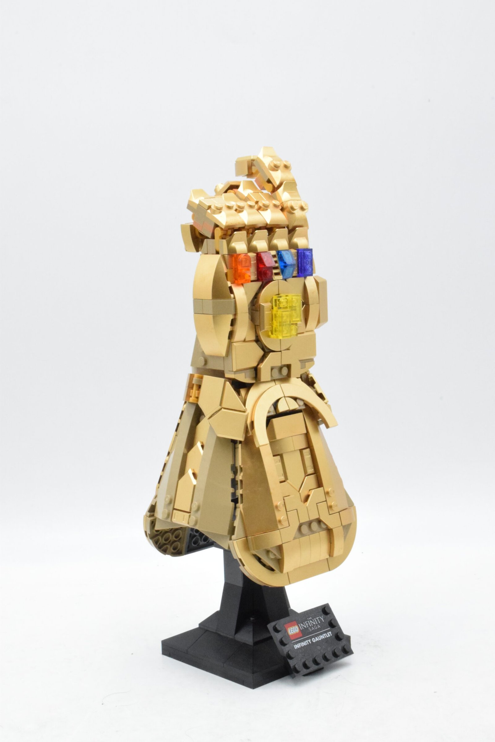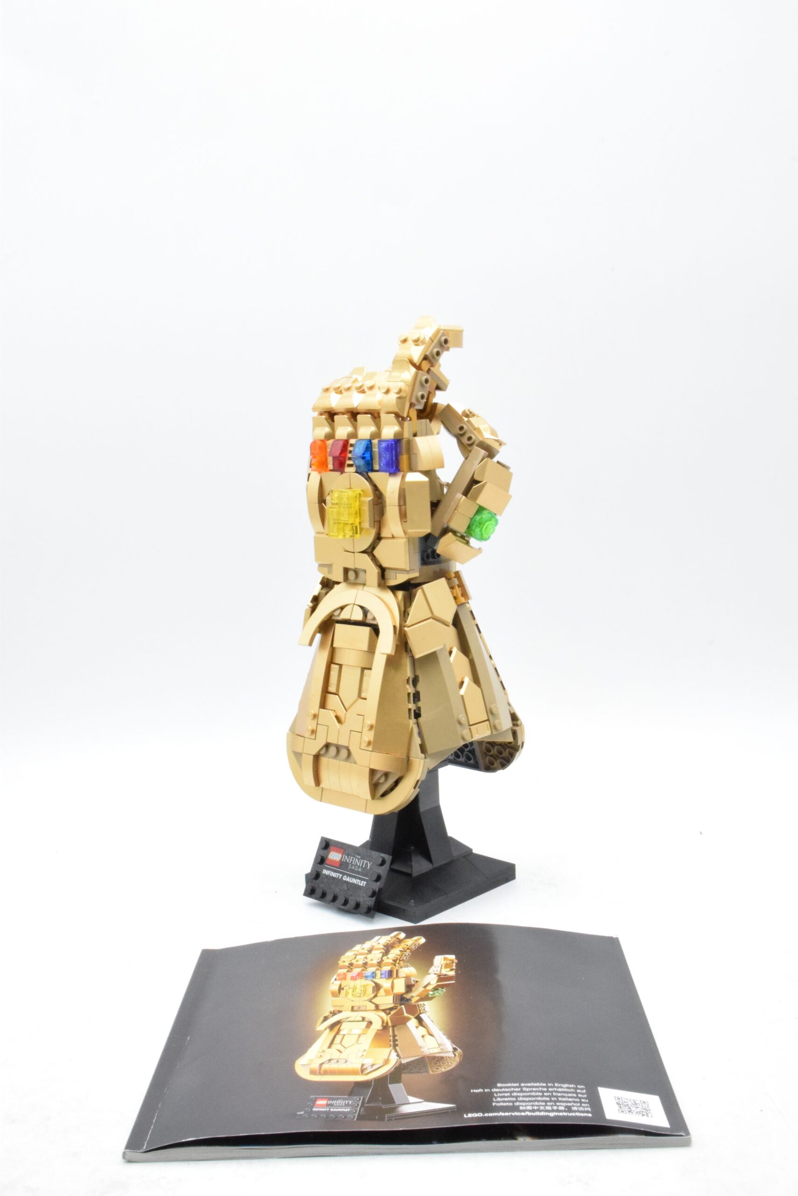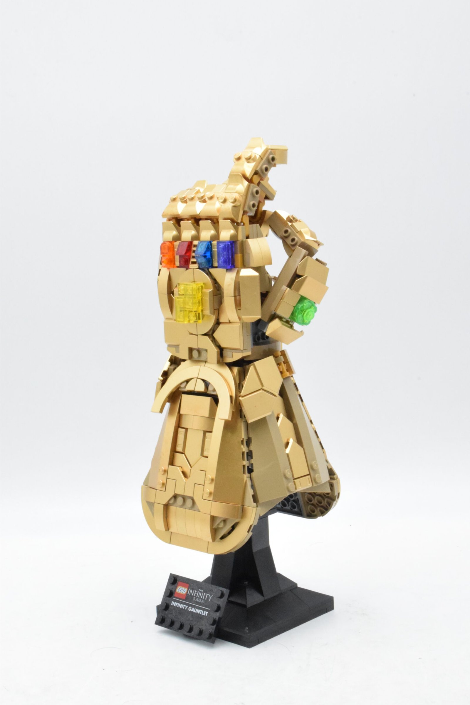 Le montage de Le Gant de l’infini est plaisant parce qu’il alterne structure interne, habillage doré, mise en place des pierres et travail sur les articulations, sans donner l’impression de répéter toujours la même séquence. Pour le set numéro 76191, il faut compter environ 2 h 30 à 4 h, estimation, avec un niveau intermédiaire : le nombre de pièces reste raisonnable pour un set adulte, mais la construction offre assez de variations de formes et de finitions pour garder un vrai intérêt jusqu’au résultat final.