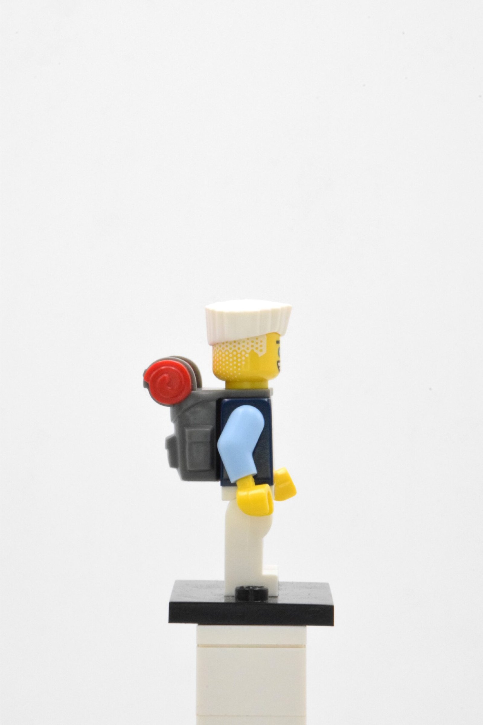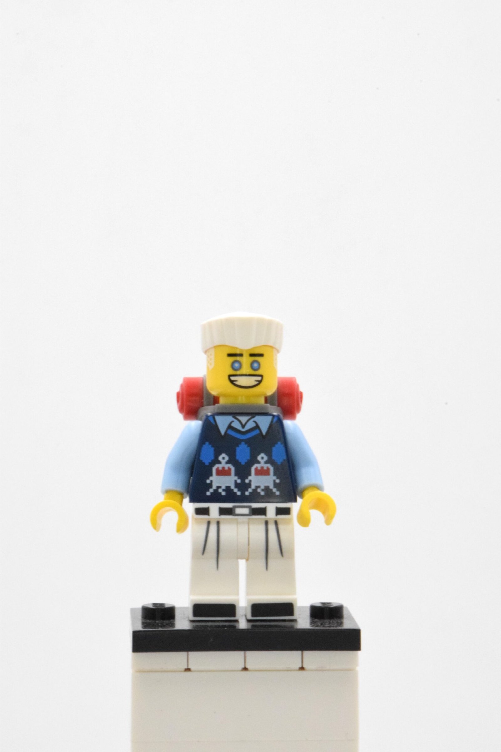 Sur Zane, la qualité visuelle repose sur un torse finement imprimé avec pull bleu et détails graphiques, des jambes blanches imprimées avec ceinture et extrémités de bottes, ainsi qu’une tête simple face claire et expressive. La coiffure blanche anguleuse et le sac à dos moulé avec roulage rouge renforcent l’identité de la figurine, et coltlnm10 conserve un rendu propre et distinctif aussi bien de face que de profil.