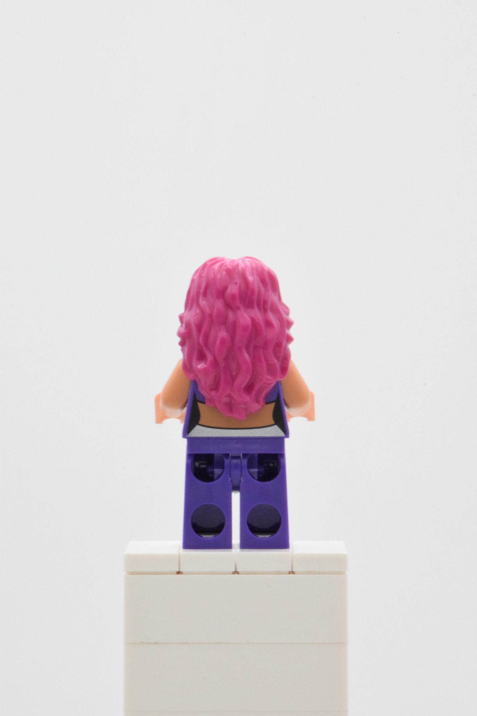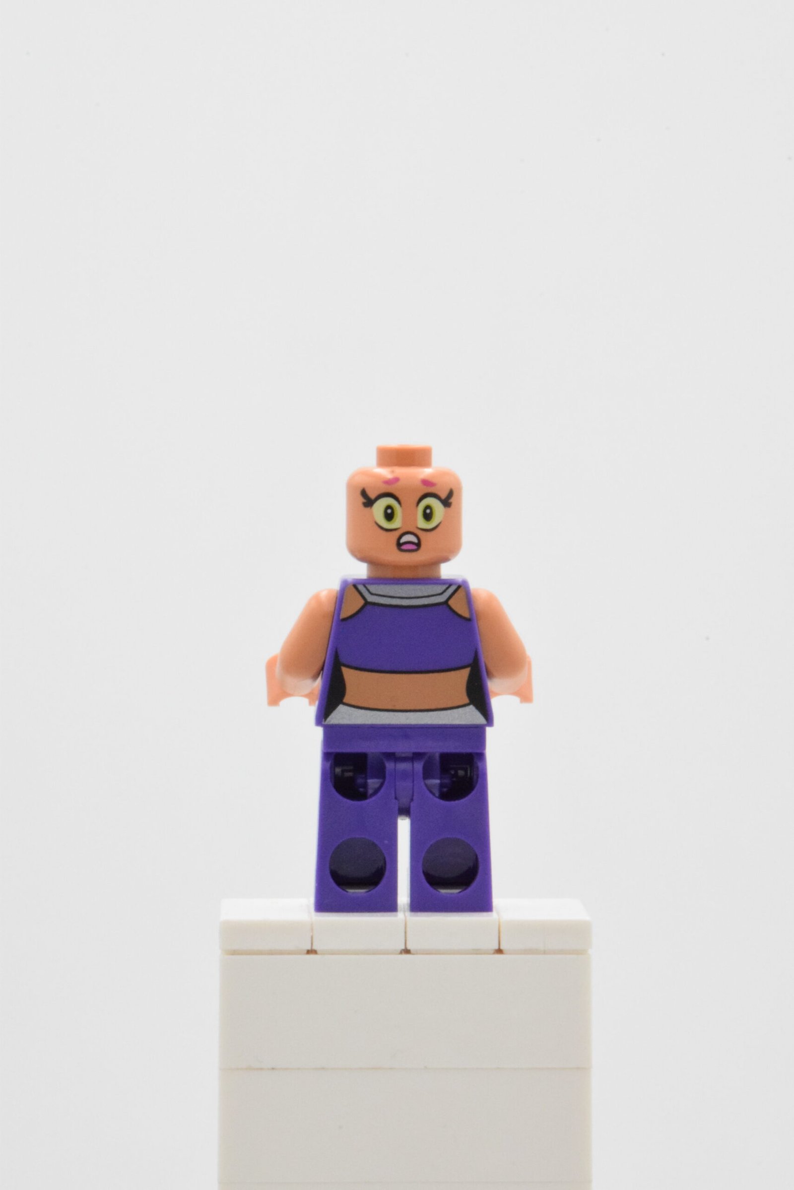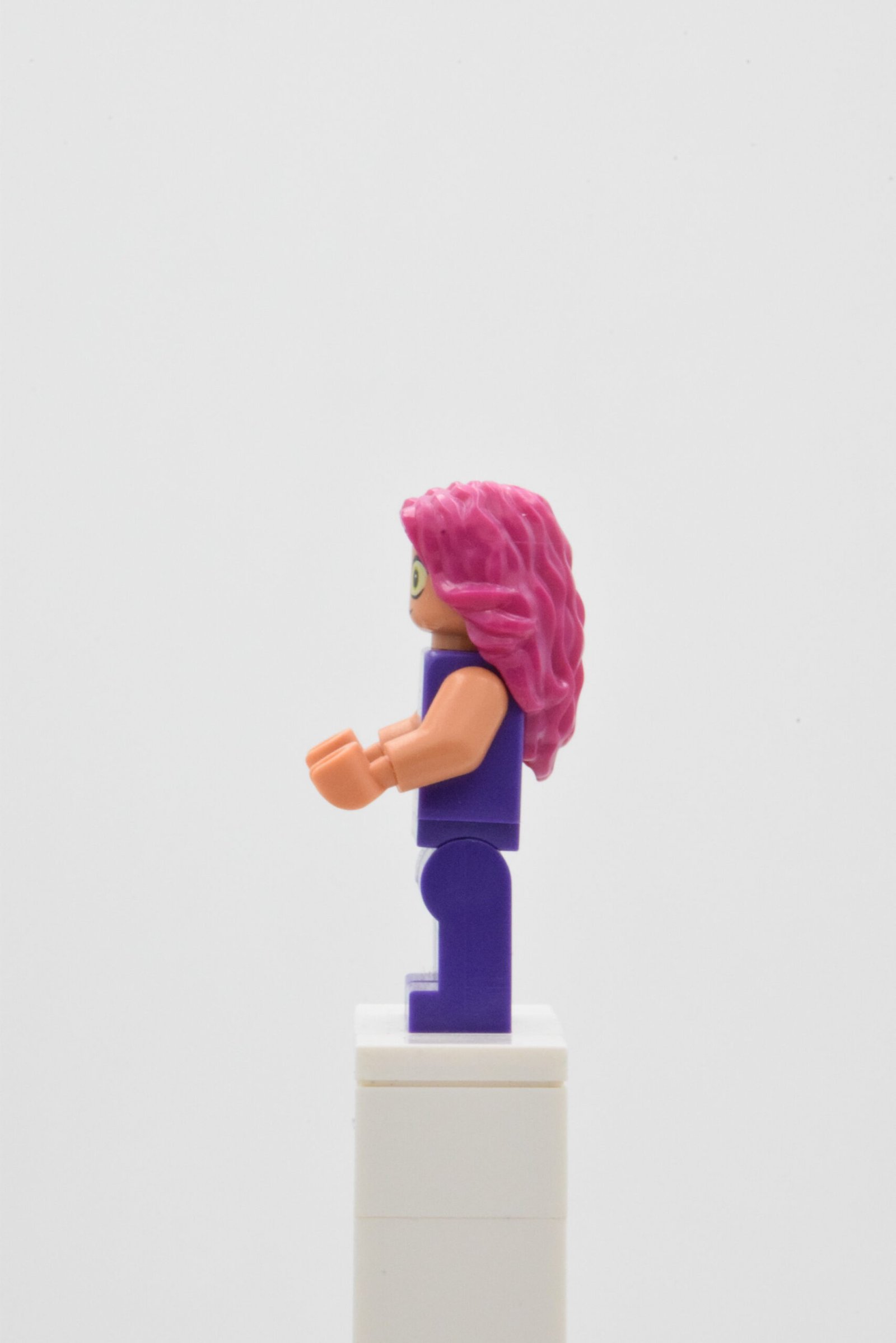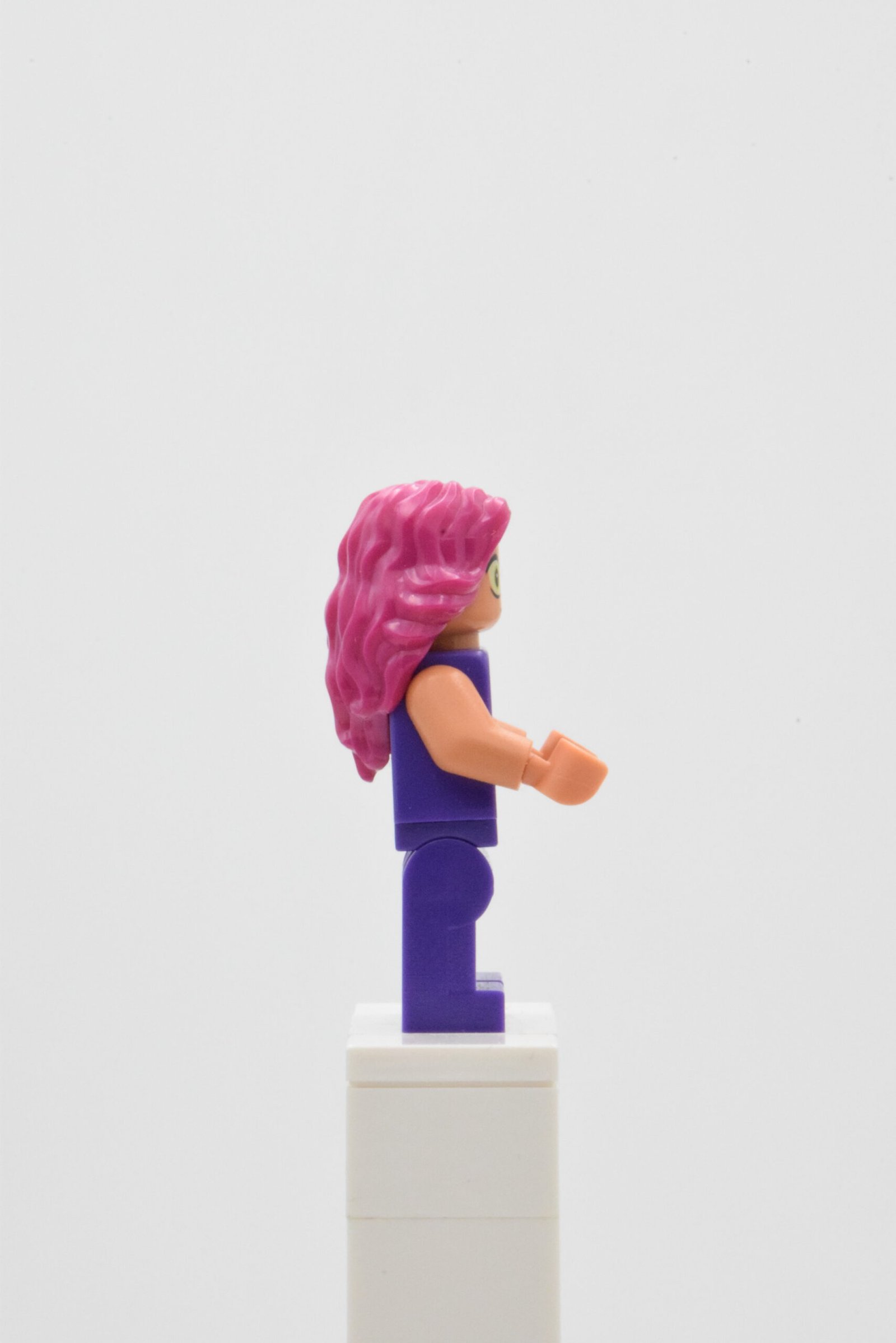 Starfire, référence dim054, est une minifigurine LEGO issue de Dimensions, rattachée au sous-thème Teen Titans Go!, avec grands yeux imprimés, chevelure magenta et tenue dark purple qui restituent immédiatement son style cartoon. Vous obtenez une figurine de collection fidèle, idéale pour enrichir une scène super-héroïque décalée ou compléter une sélection de personnages marquants de cet univers.