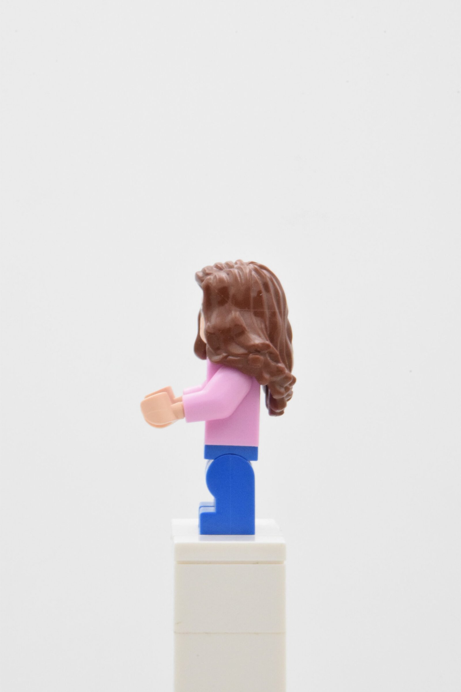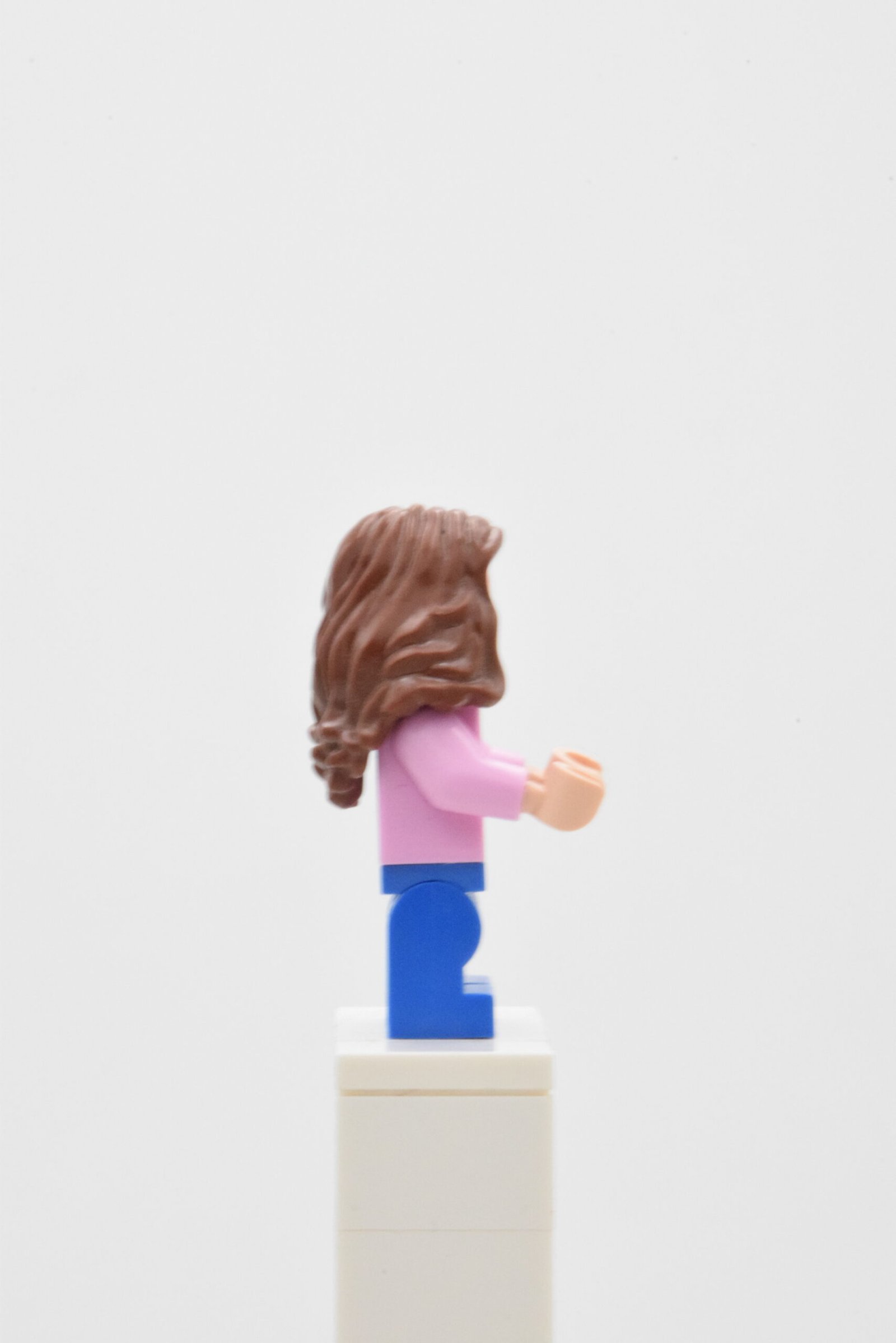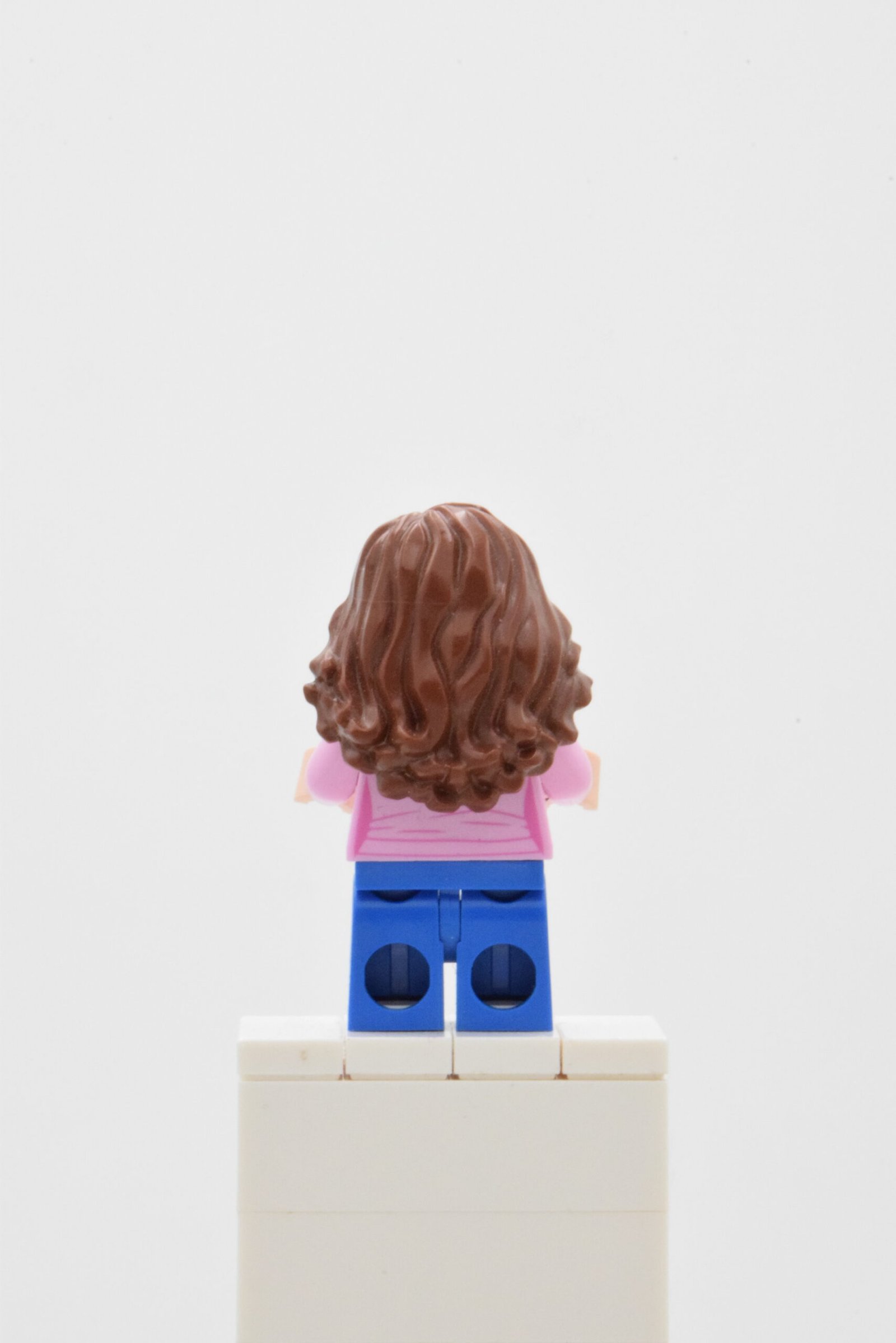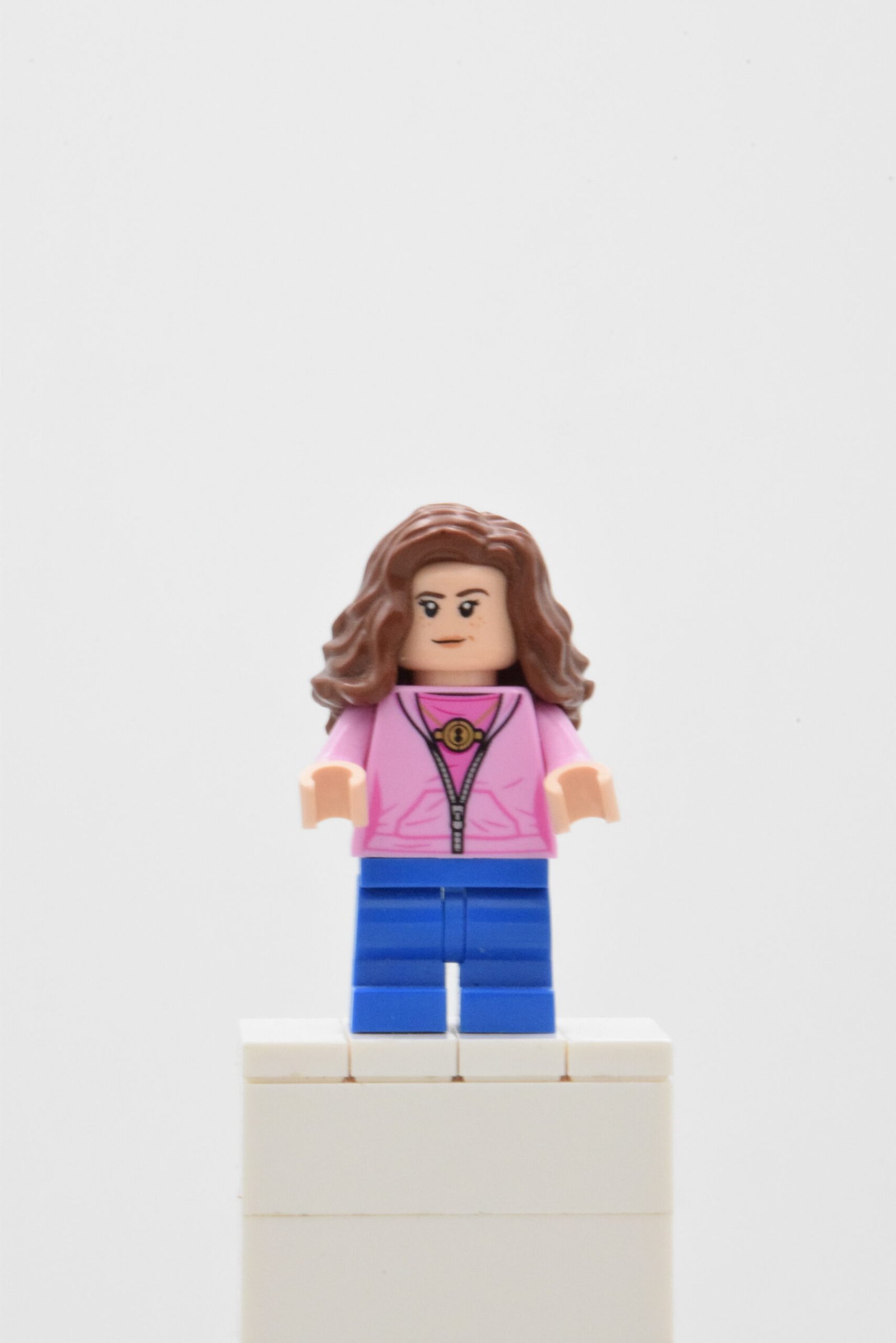 La figurine Hermione Granger, référence hp181, se distingue par un torse finement imprimé avec veste rose, fermeture éclair et collier Time-Turner, des jambes medium bleu uni qui gardent une lecture visuelle propre, ainsi qu’une tête double face avec une expression calme et une expression plus tendue. Sa chevelure mi-longue ondulée brun rouge complète une silhouette immédiatement reconnaissable, avec un rendu visuel net, fidèle et très facile à intégrer dans une scène inspirée du film.