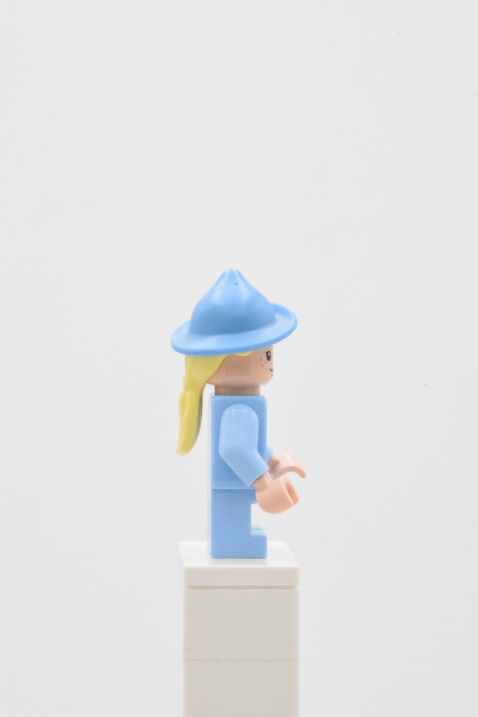 La figurine Gabrielle Delacour, référence hp203, se distingue par un torse bleu clair finement imprimé avec col et capelet, des jambes courtes assorties et une tête double face qui permet de varier l’expression avec naturel. Sa coiffure blonde combinée à un chapeau bleu renforce immédiatement l’identité visuelle de l’ensemble et donne à cette version un rendu propre, élégant et très cohérent en exposition comme en diorama.