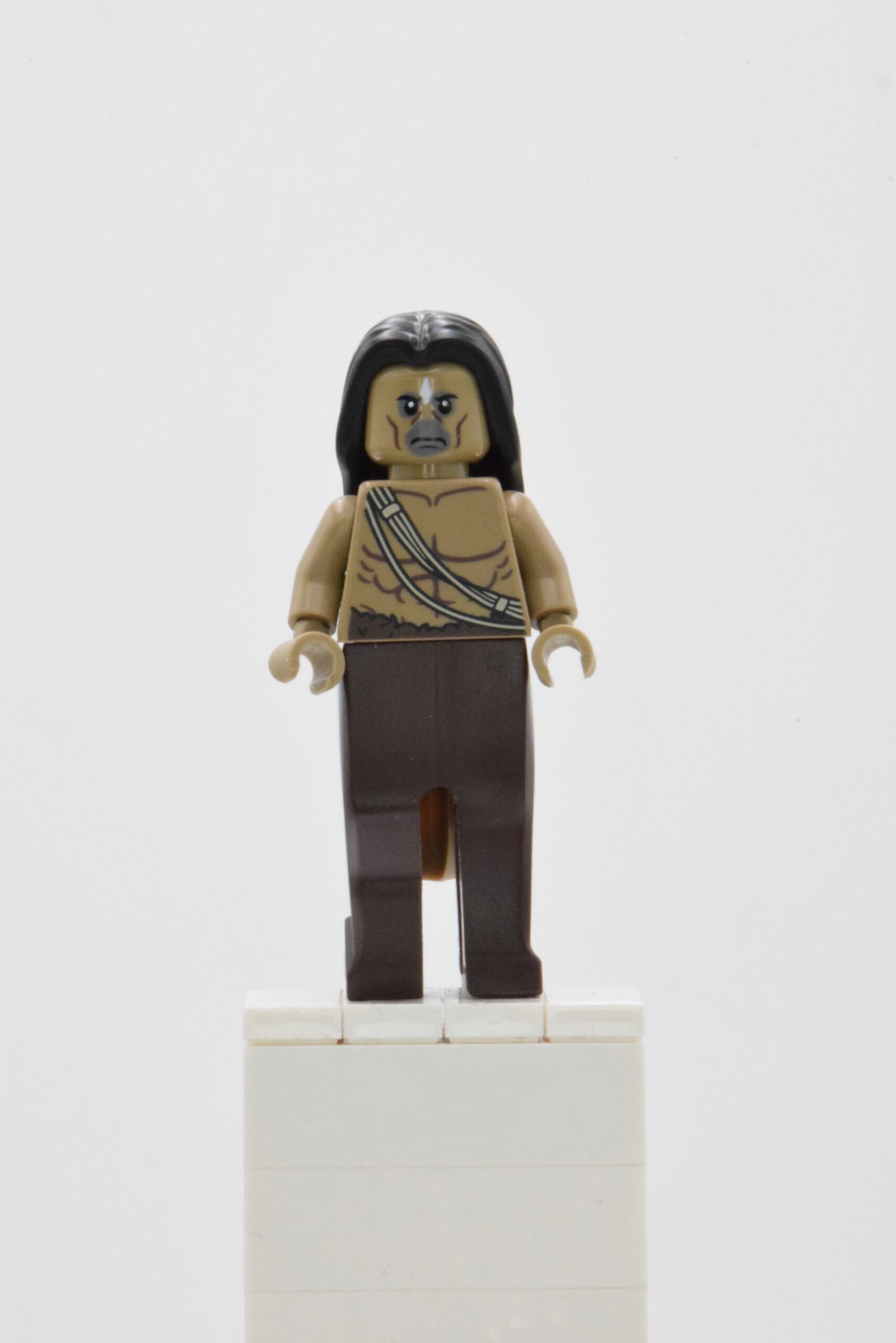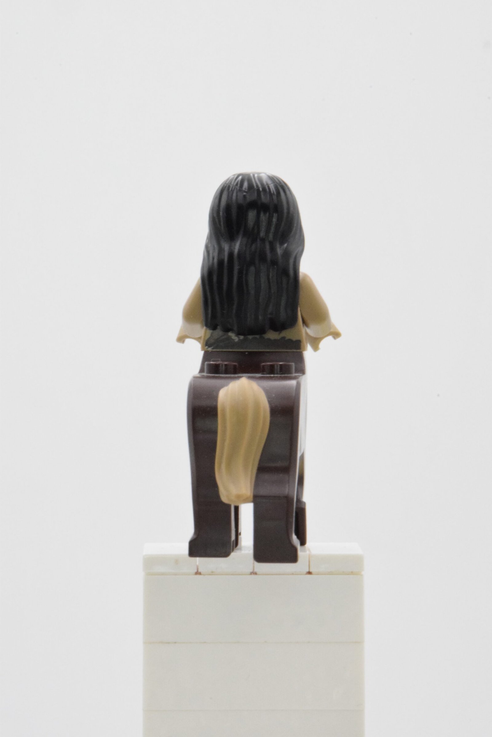 La coiffure longue renforce l’identité “centaure” et complète une silhouette immédiatement lisible au milieu des arbres, rochers et éléments de forêt typiques des scènes de la Forêt Interdite.