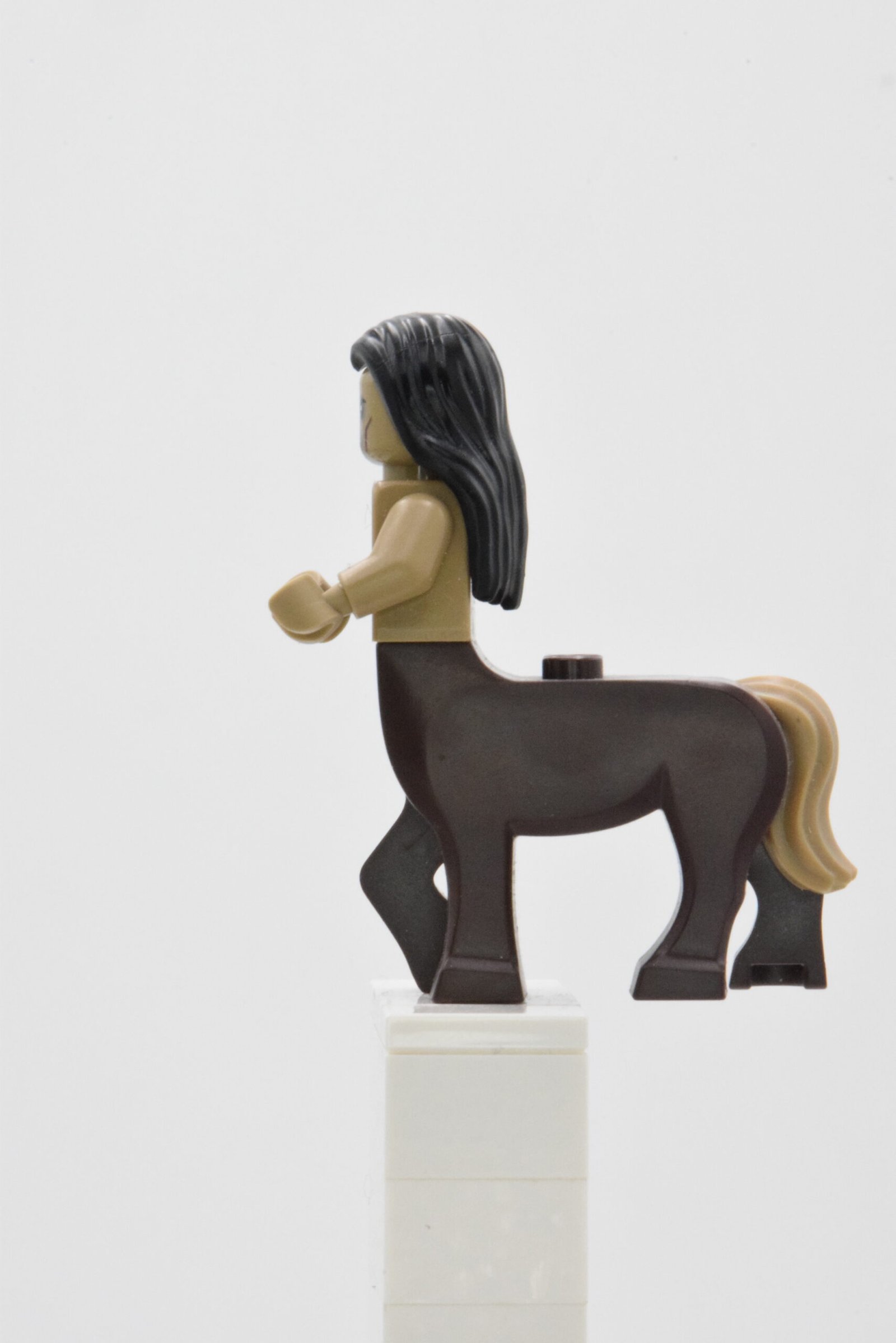 Le personnage hp236 Centaur se démarque d’abord par sa construction “créature” : une partie basse moulée de centaure avec motif de queue, combinée à un torse imprimé (musculature, ceinture/poils et détails) qui donne un rendu très organique en exposition.