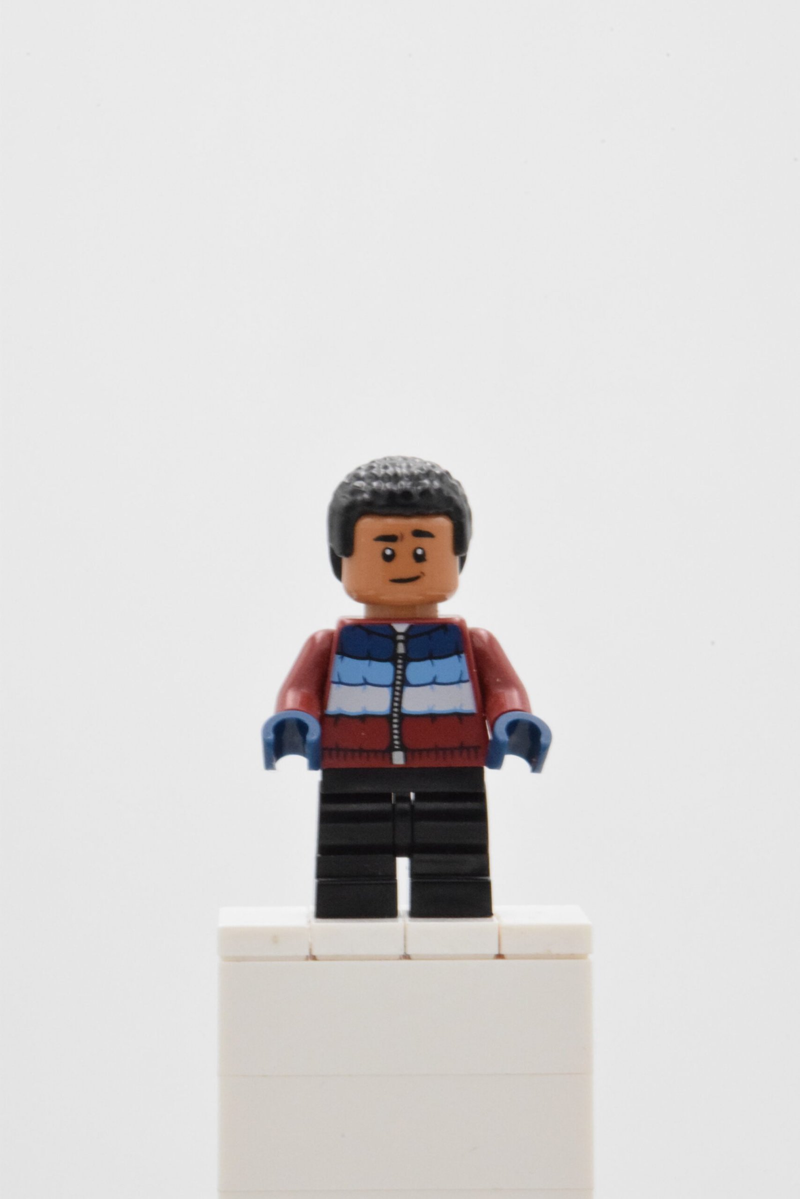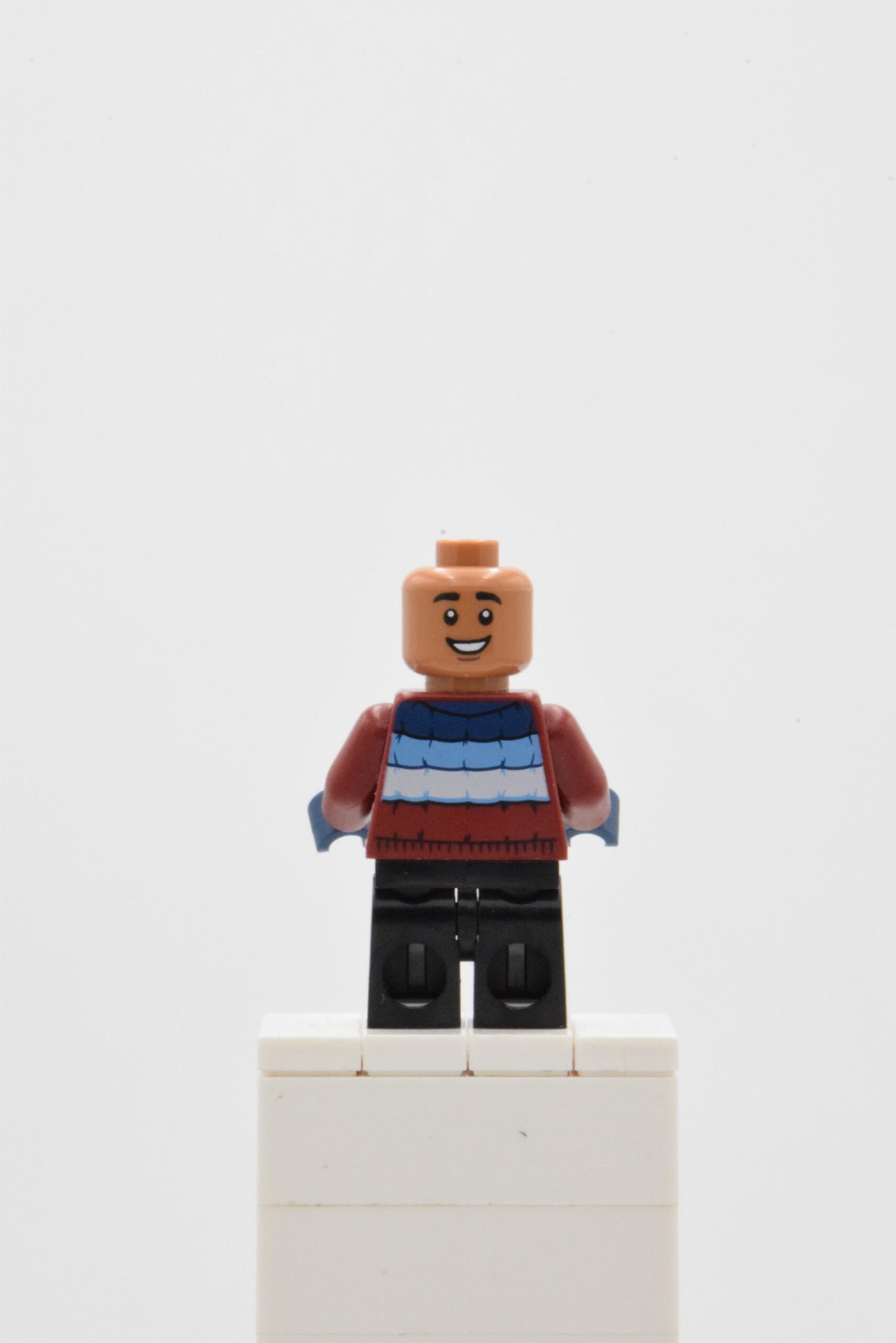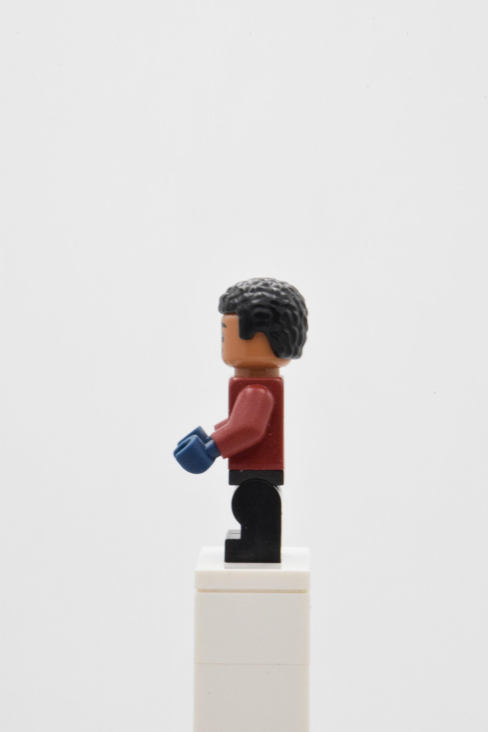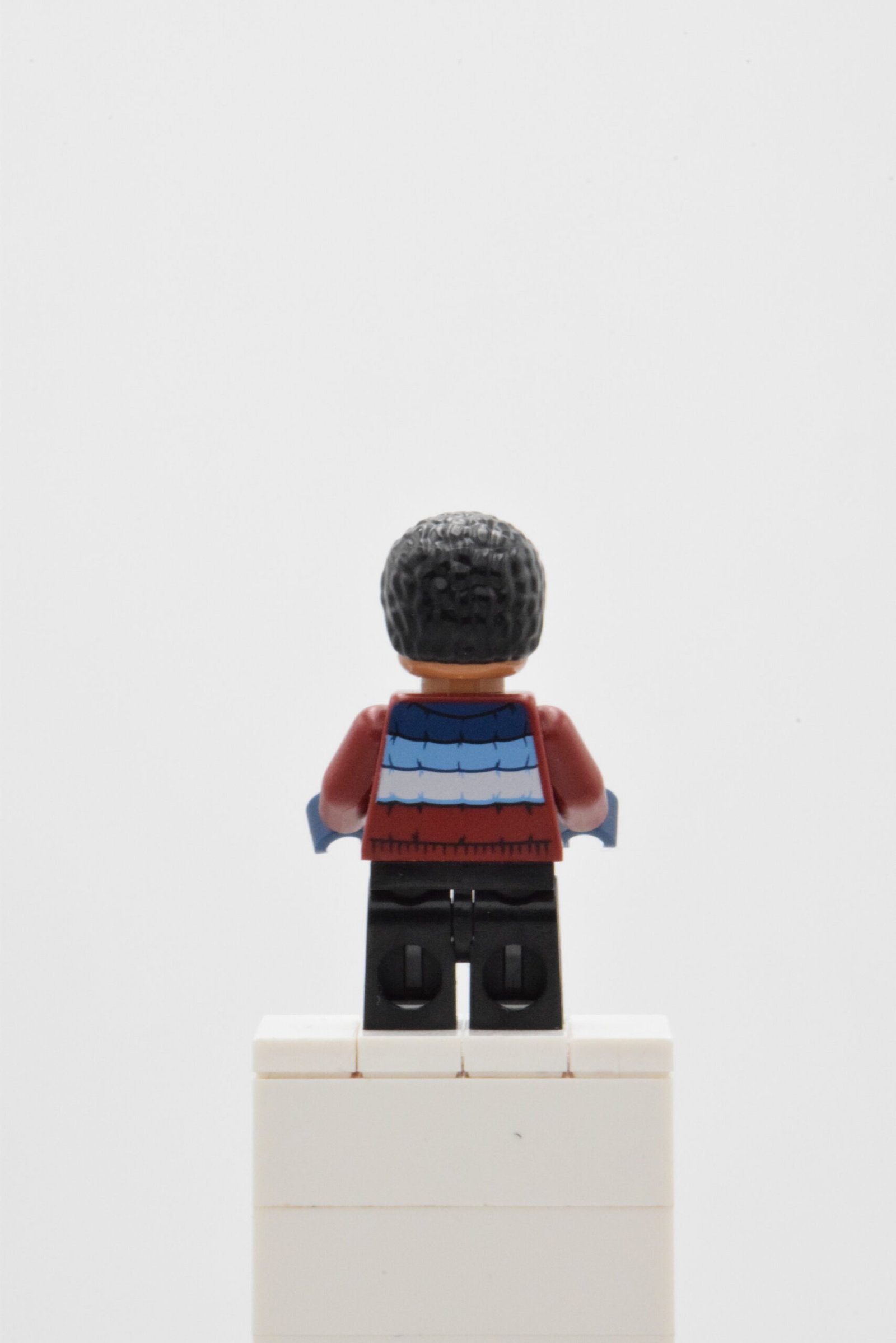 Dean Thomas, référence hp289, se distingue par un design lisible avec chevelure texturée noire, torse matelassé aux panneaux dark blue, medium blue et blancs, bras dark red et mains dark blue qui renforcent sa présence visuelle. La tête double face, combinant un sourire en coin et une expression plus ouverte, apporte un vrai plus en exposition comme en mise en scène et donne à l’ensemble un rendu crédible, moderne et facile à reconnaître.