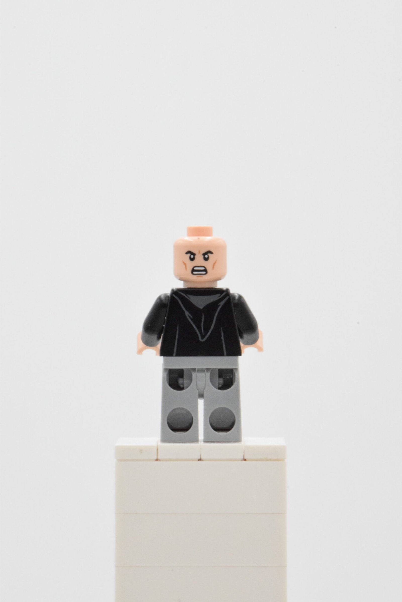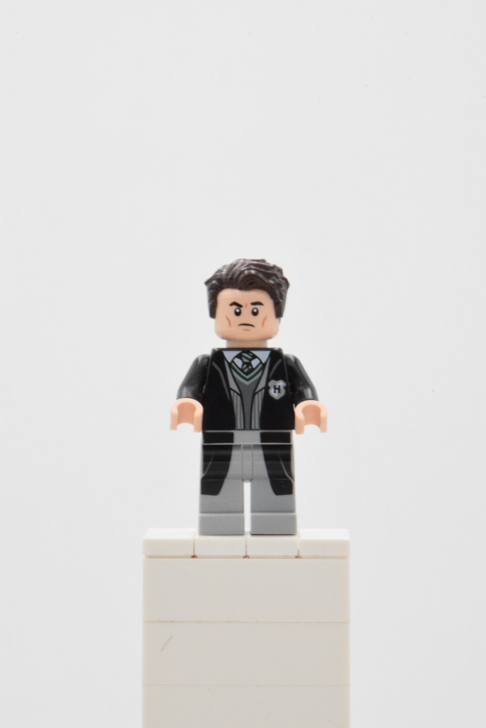 Tom Riddle, hp311 propose une interprétation visuellement fidèle du personnage, avec un torse imprimé de longue veste noire et de gilet, des jambes light bluish gray qui équilibrent bien la silhouette, ainsi qu’un visage double face utile pour varier l’expression selon la scène. La chevelure noire bien structurée renforce immédiatement son identité visuelle, et l’ensemble offre un rendu propre, lisible et convaincant aussi bien en exposition que dans un diorama inspiré de l’univers de Poudlard.